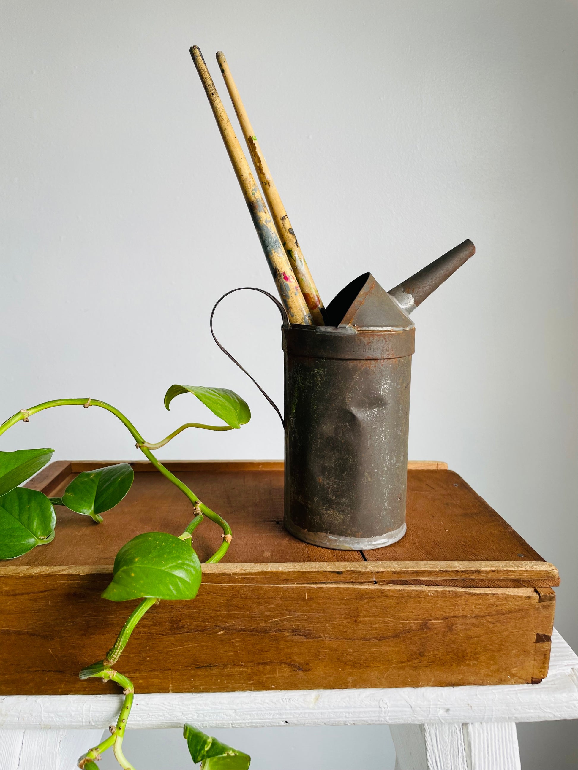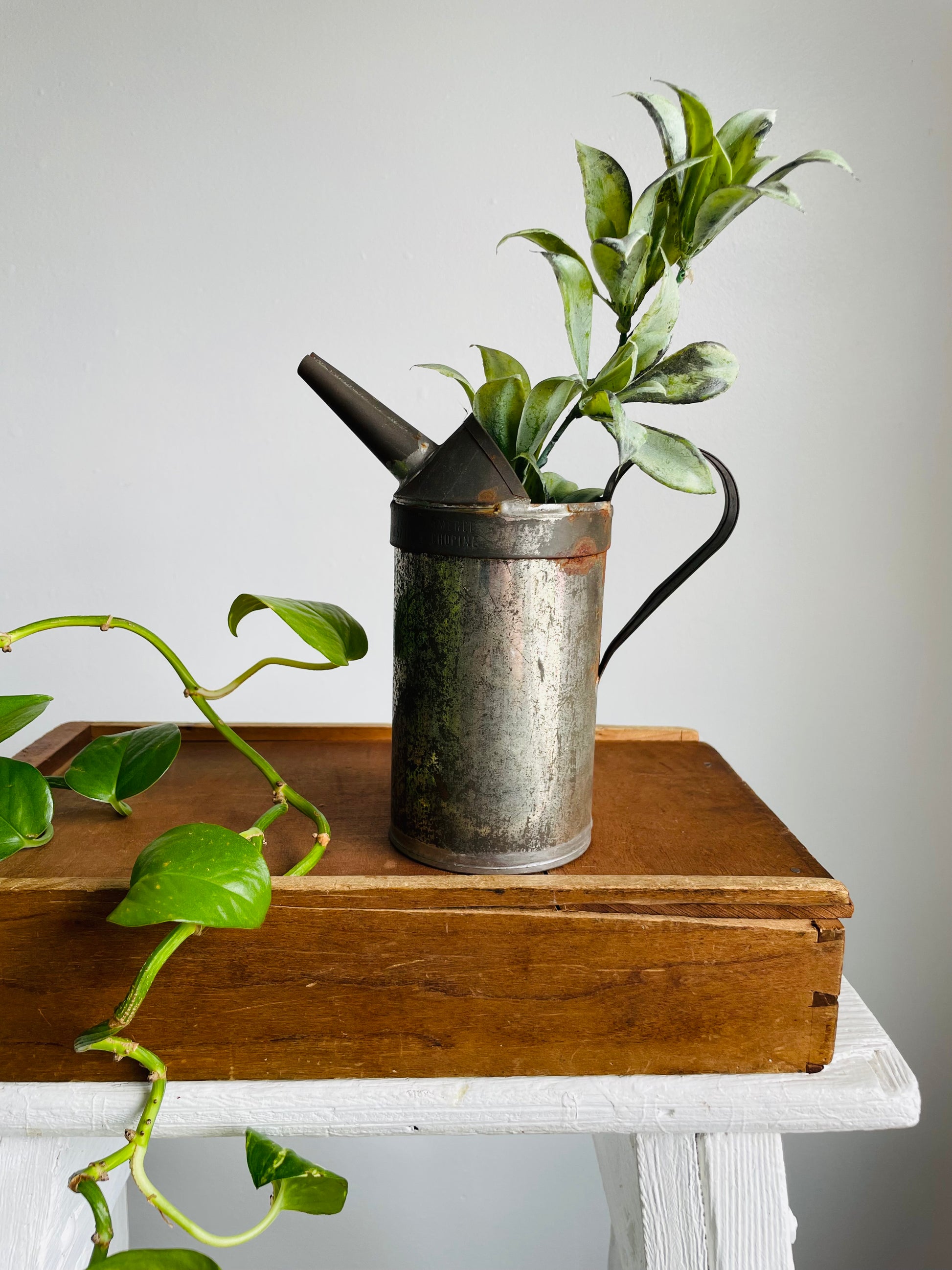 Rustic Farmhouse Oil Can Pitcher with Pour Spout & Handle - Great for Flowers!