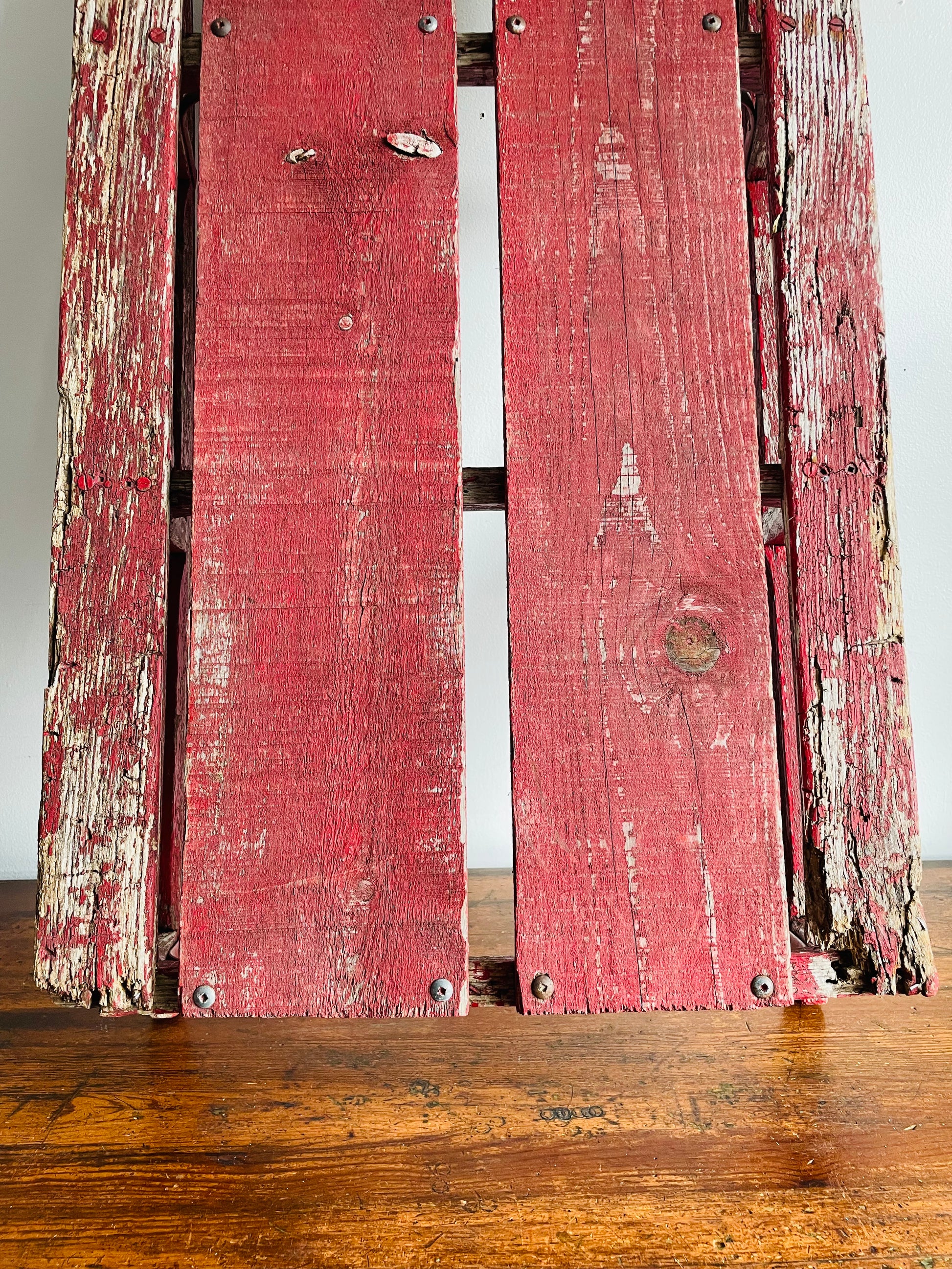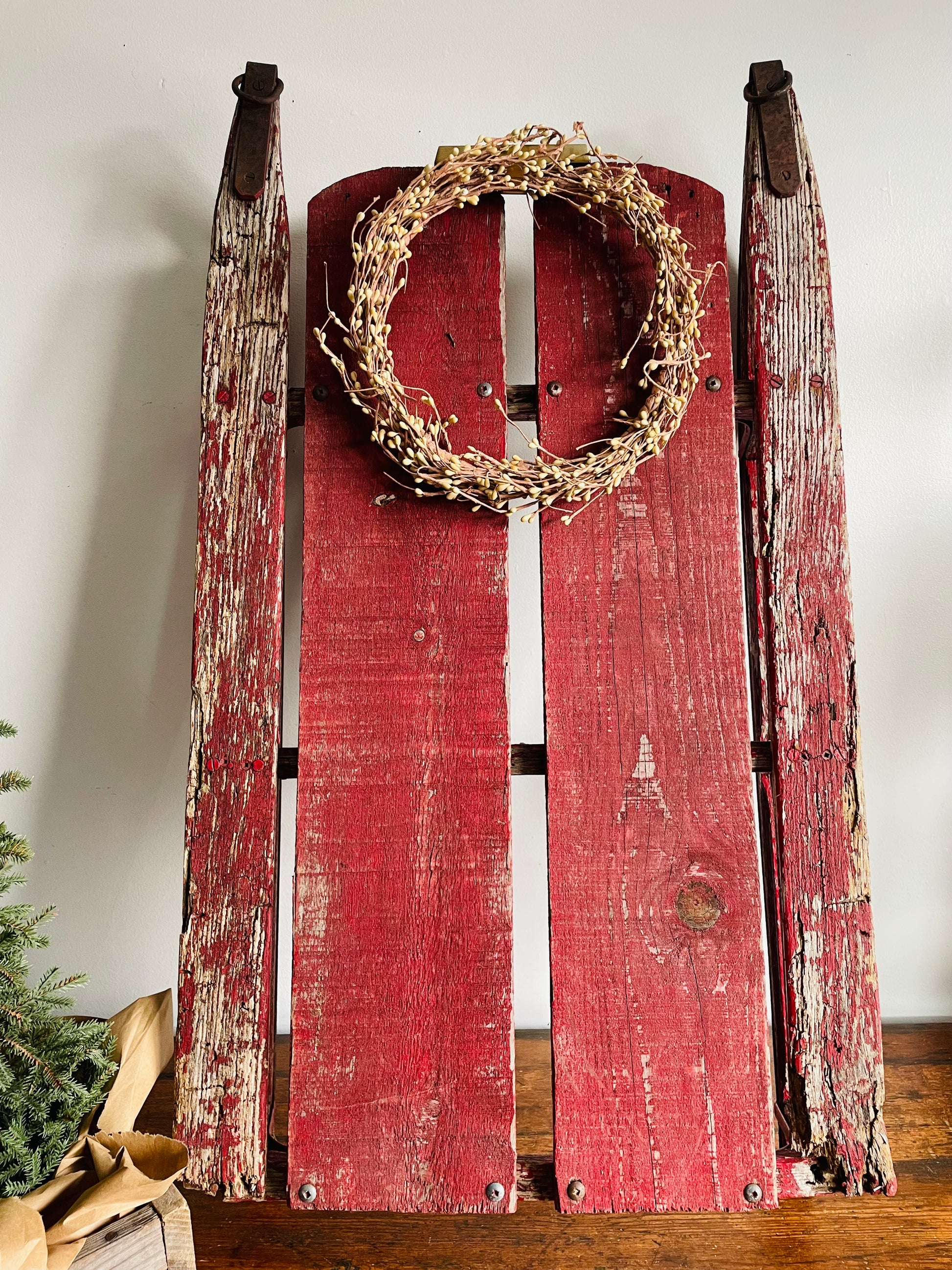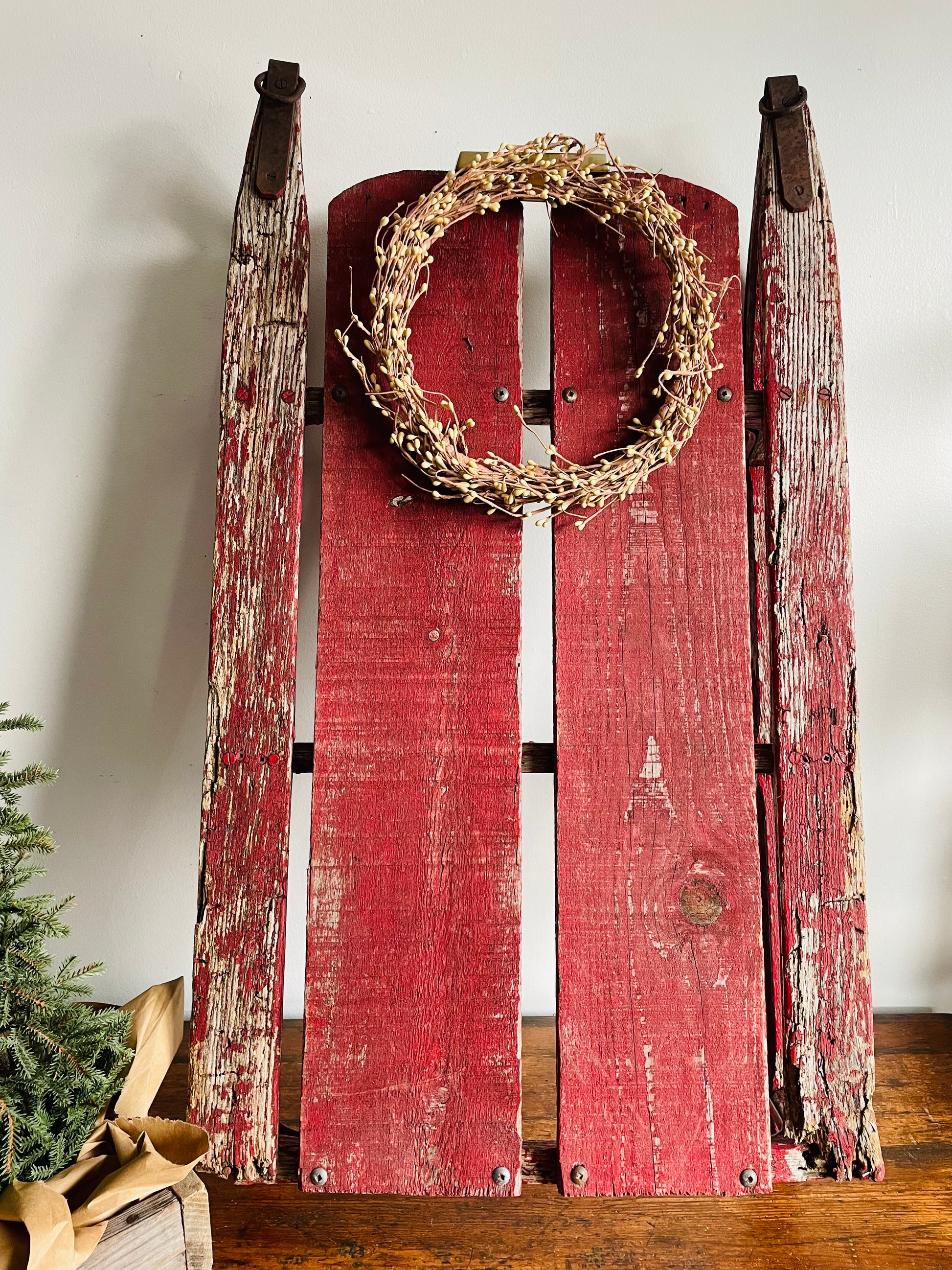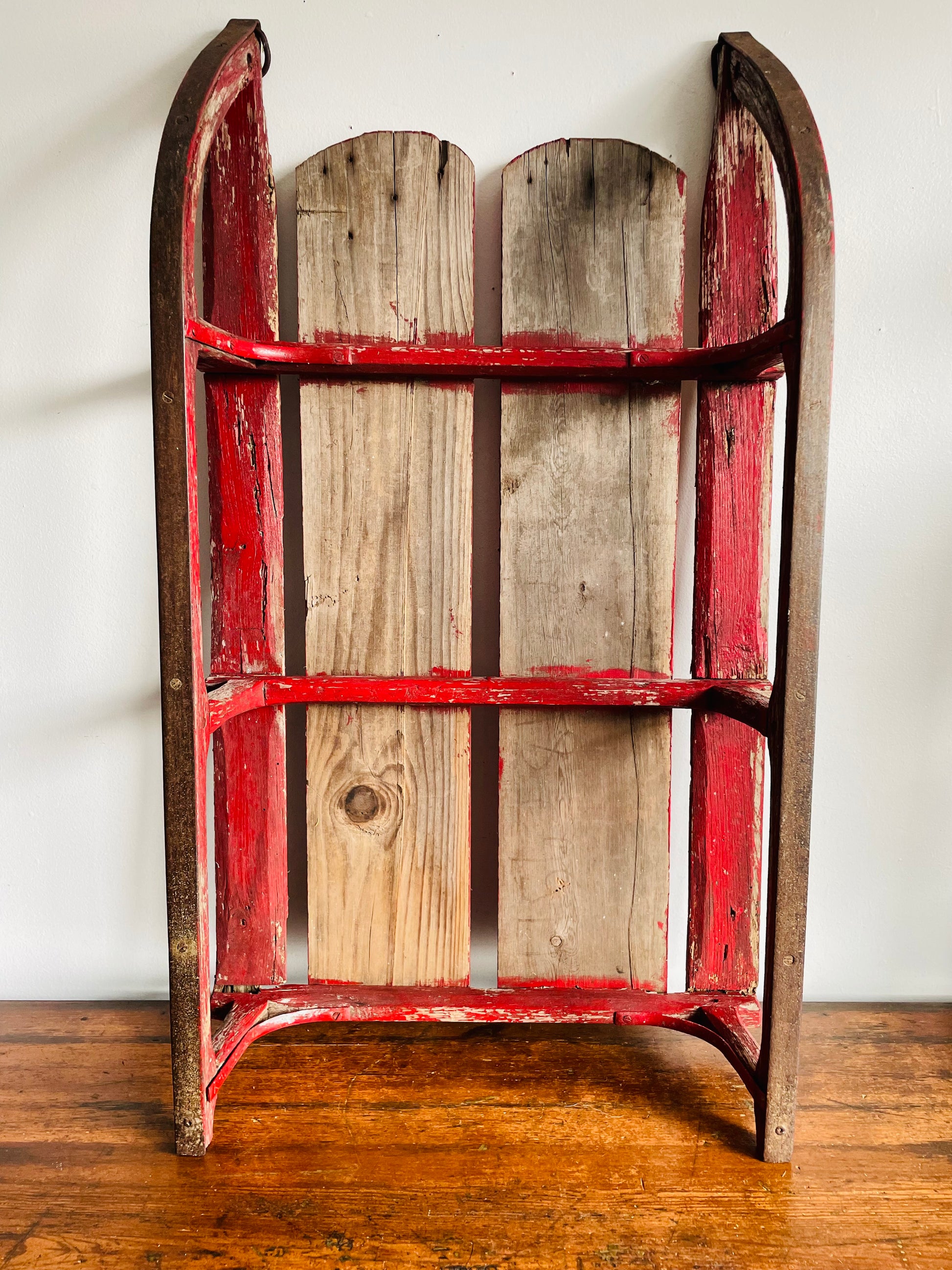 Vintage Rustic & Weathered Chippy Red Sled with Metal Runners & Hardware - Makes Great Porch Decor!