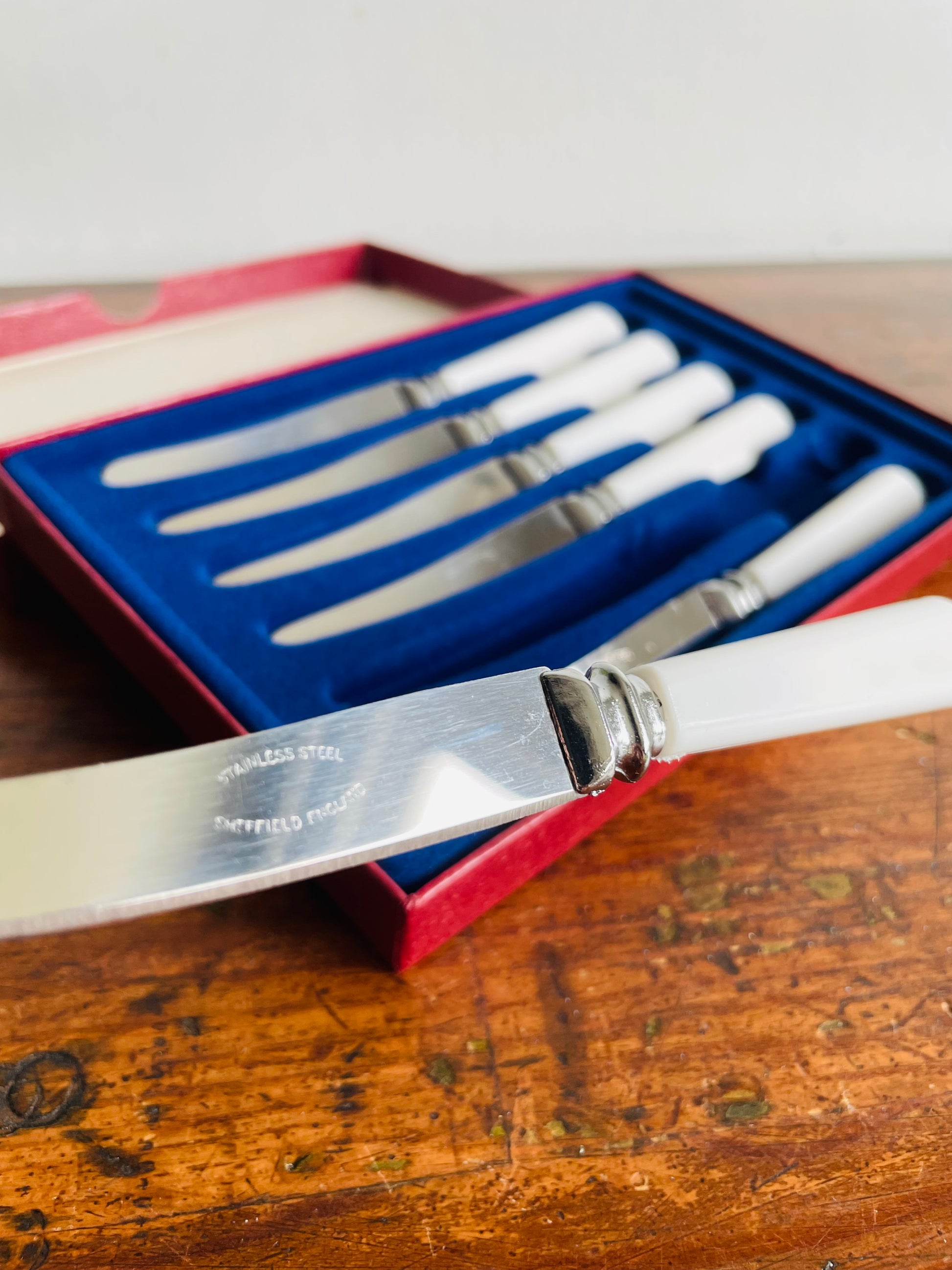 Stainless Steel Sheffield England Spreader Knives in Original Box - Set of 6