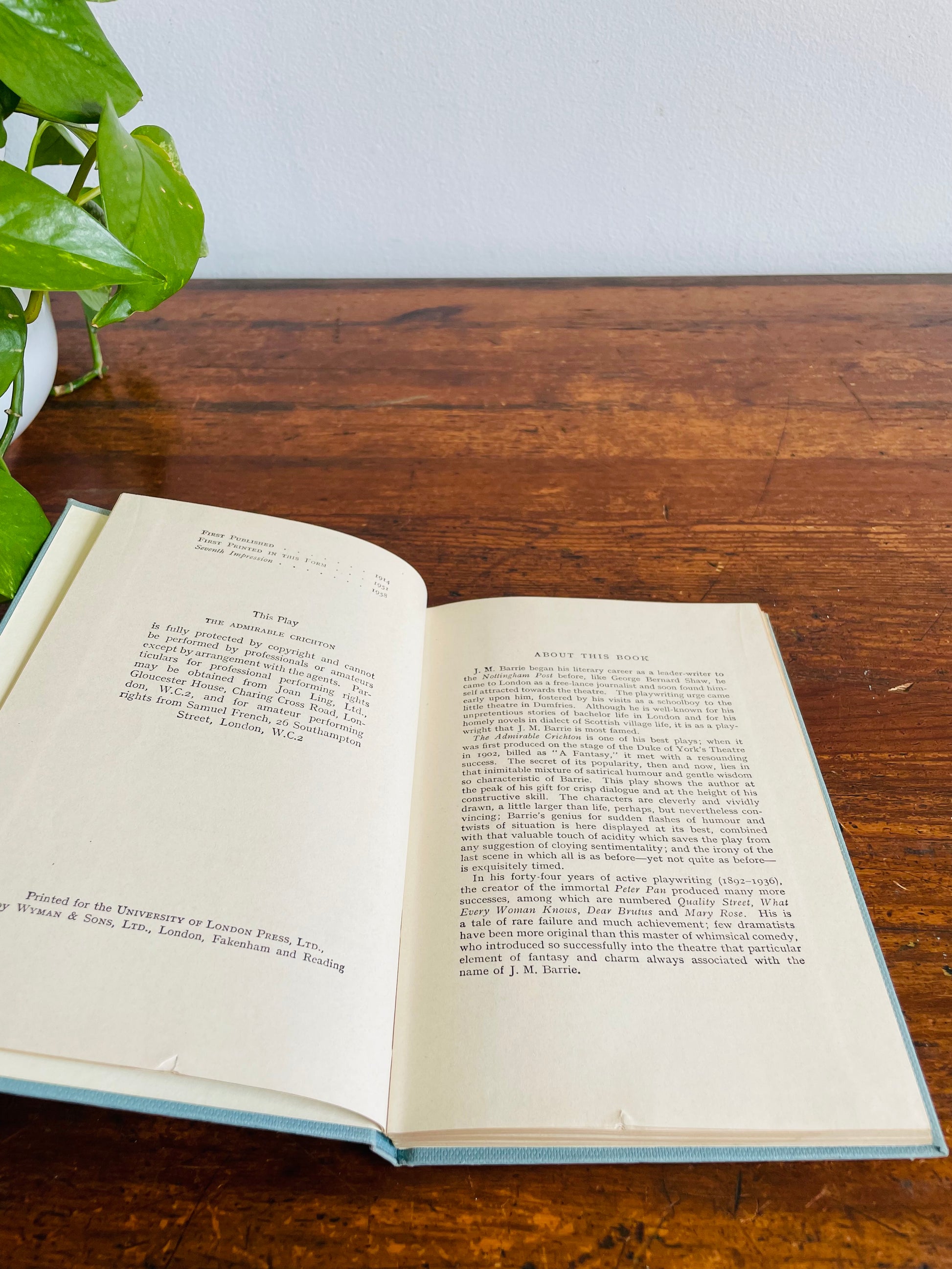 The Admirable Crighton by J. M. Barrie Clothbound Hardcover Book (1958) - Shipwreck Comedy Play