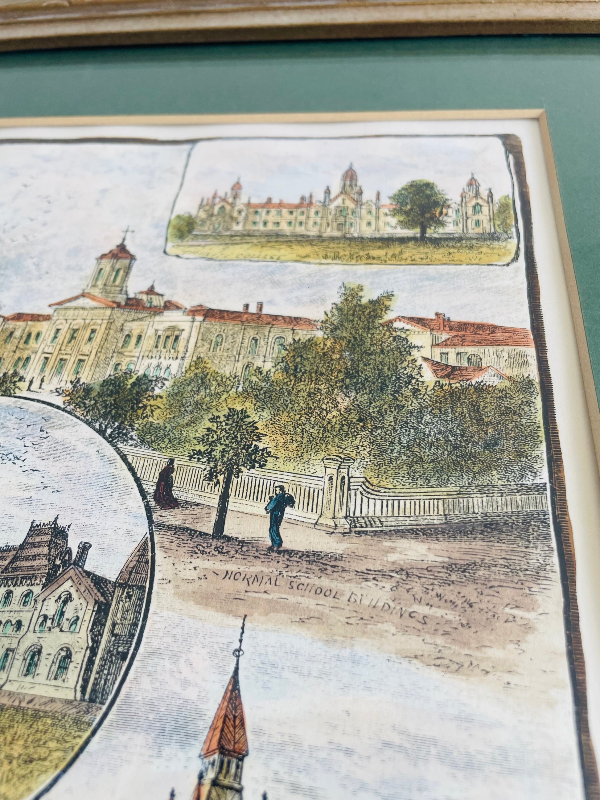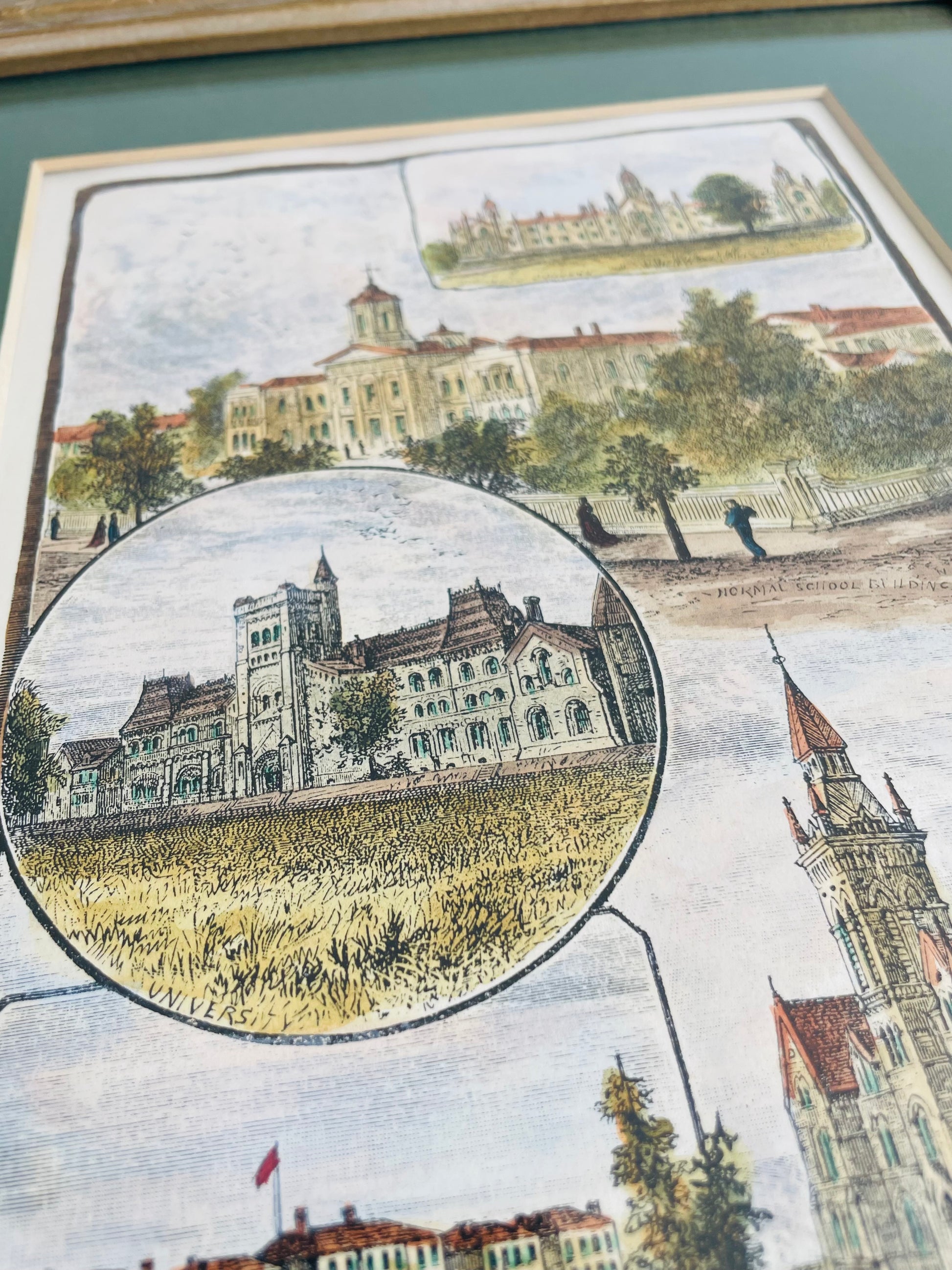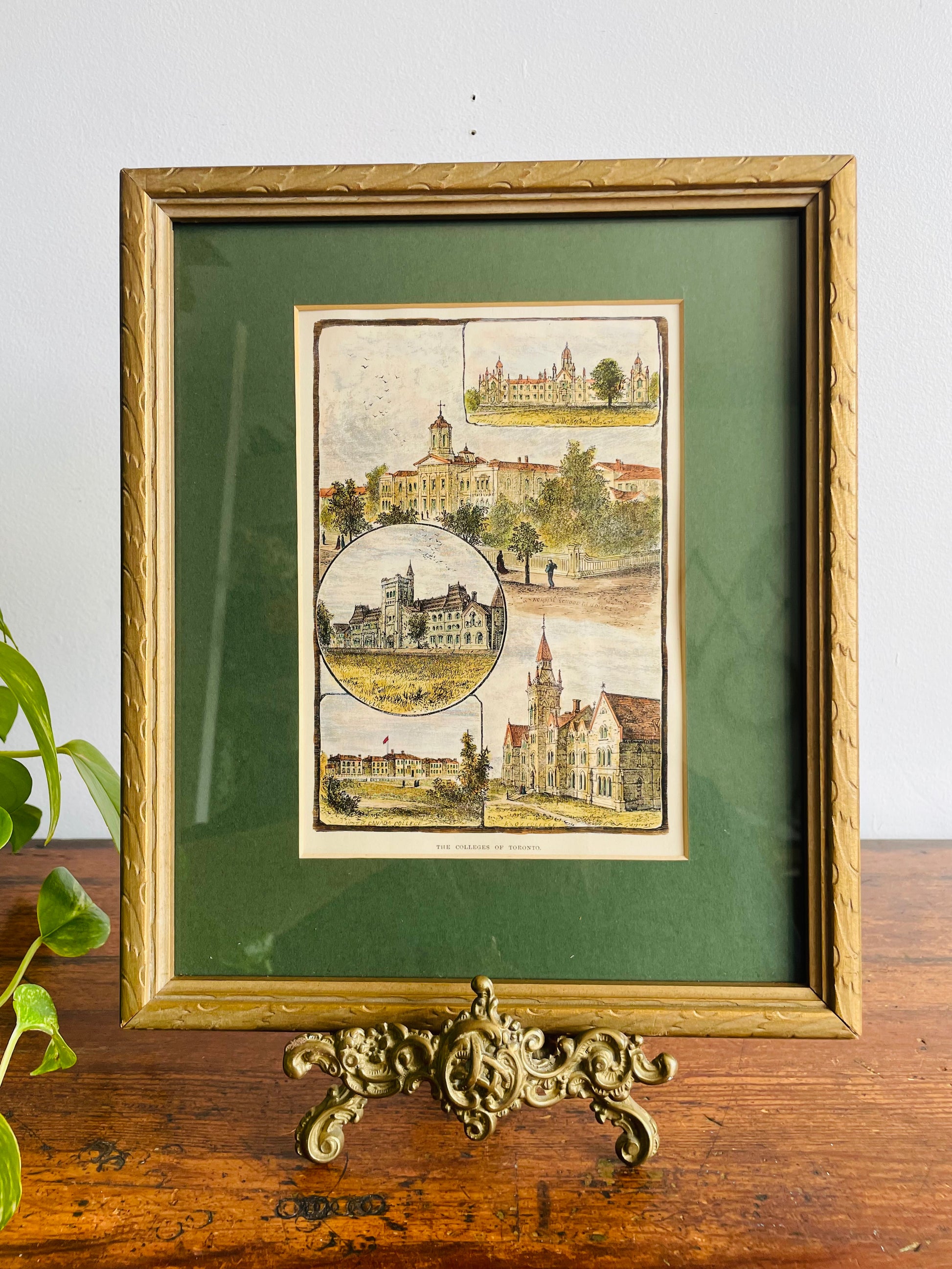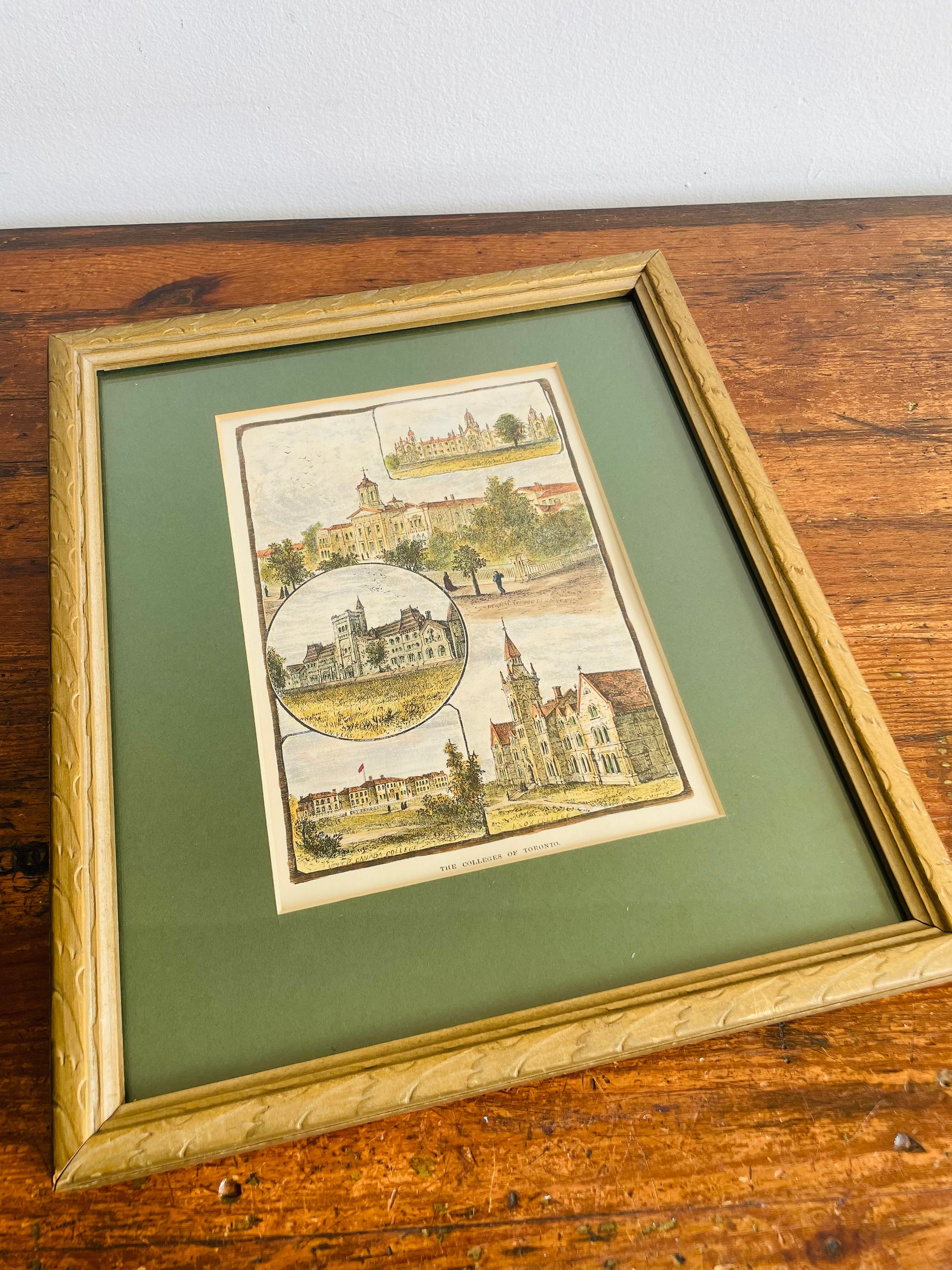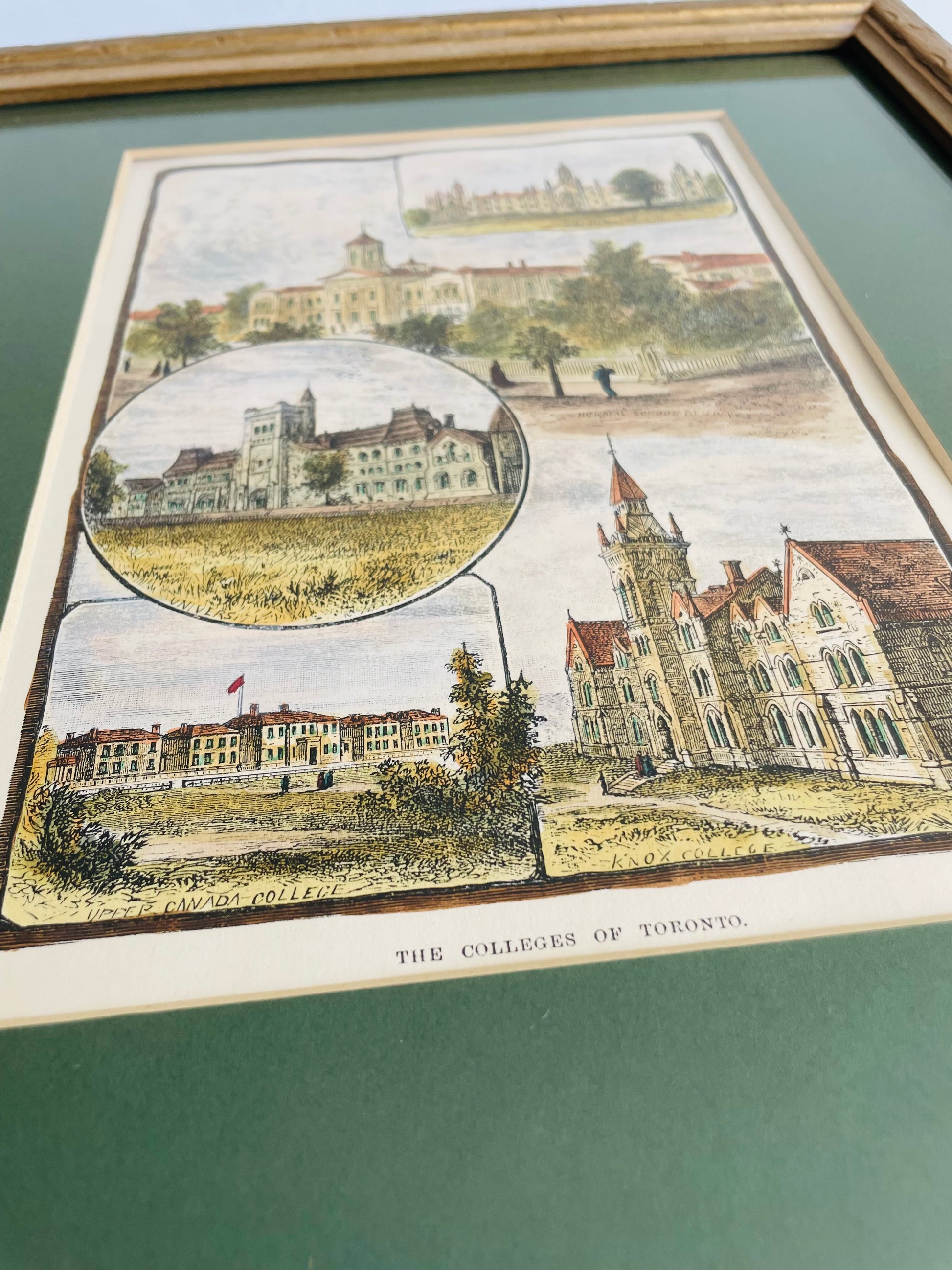 The Colleges of Toronto Etched Print Picture - Upper Canada College, Knox College, Trinity College, University, Normal School