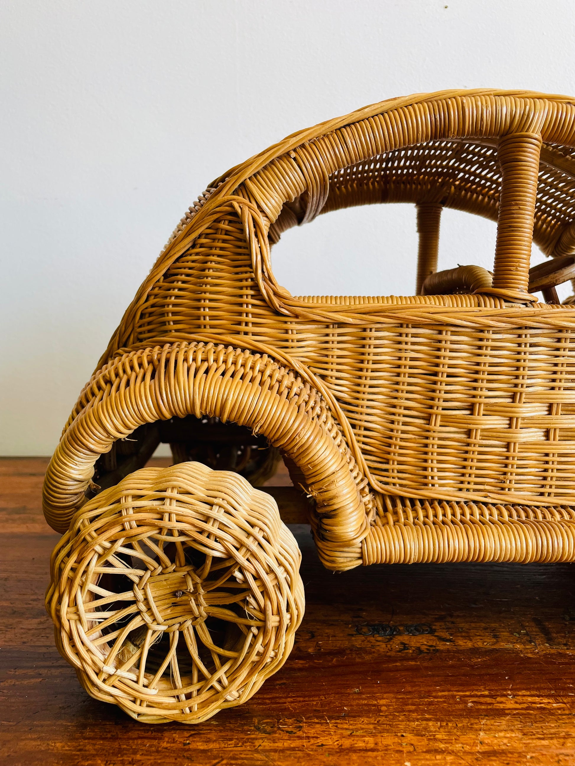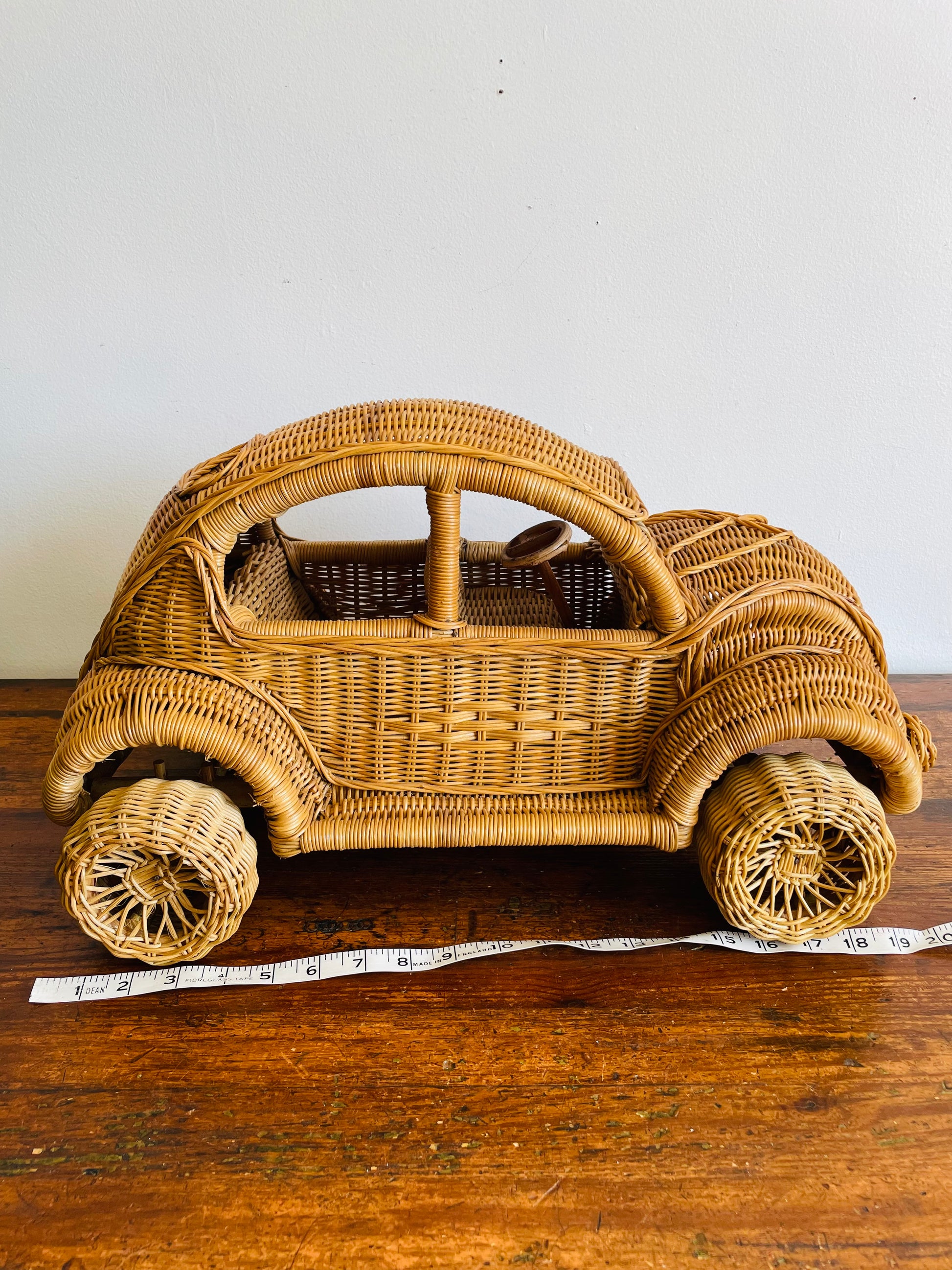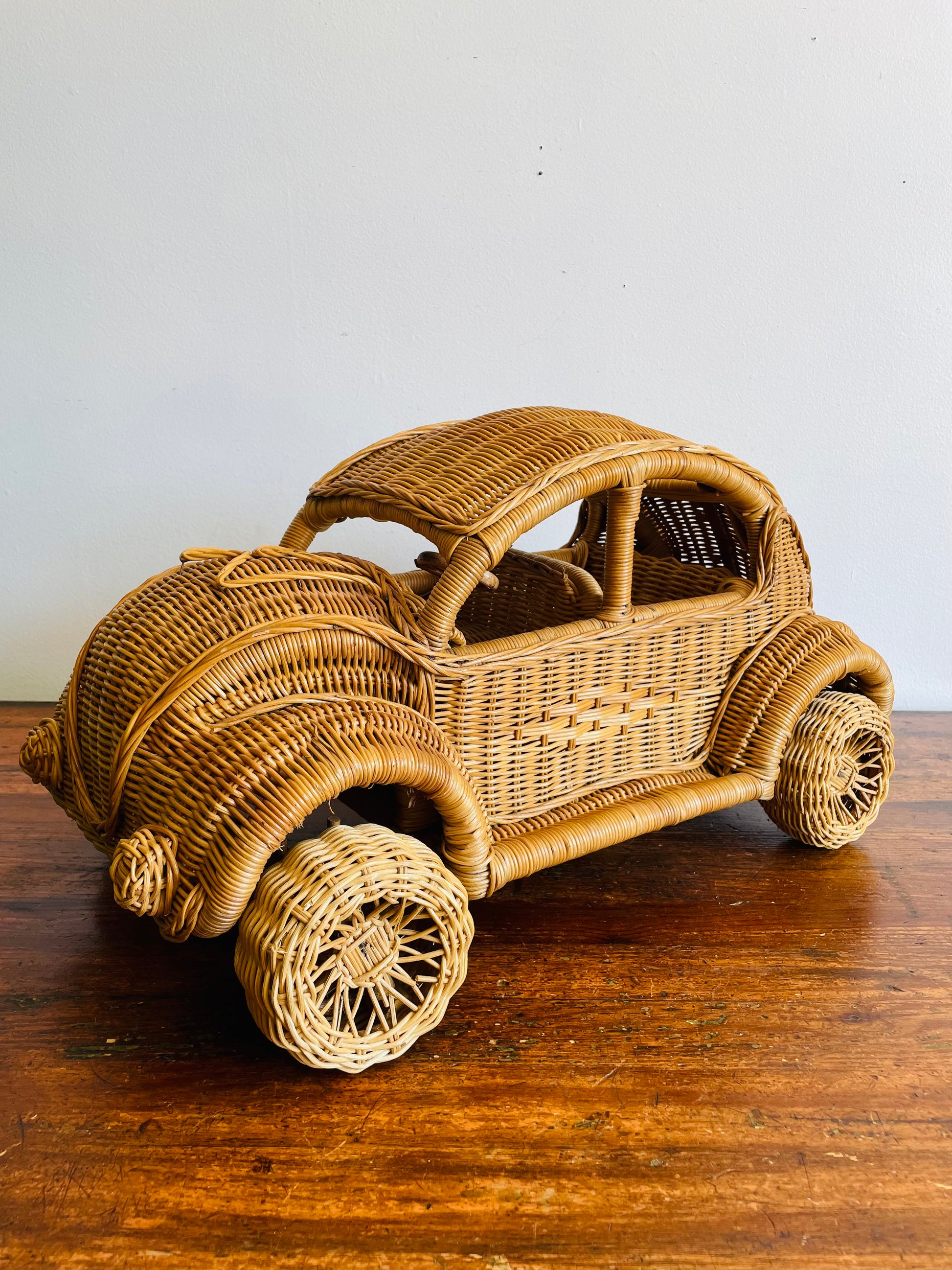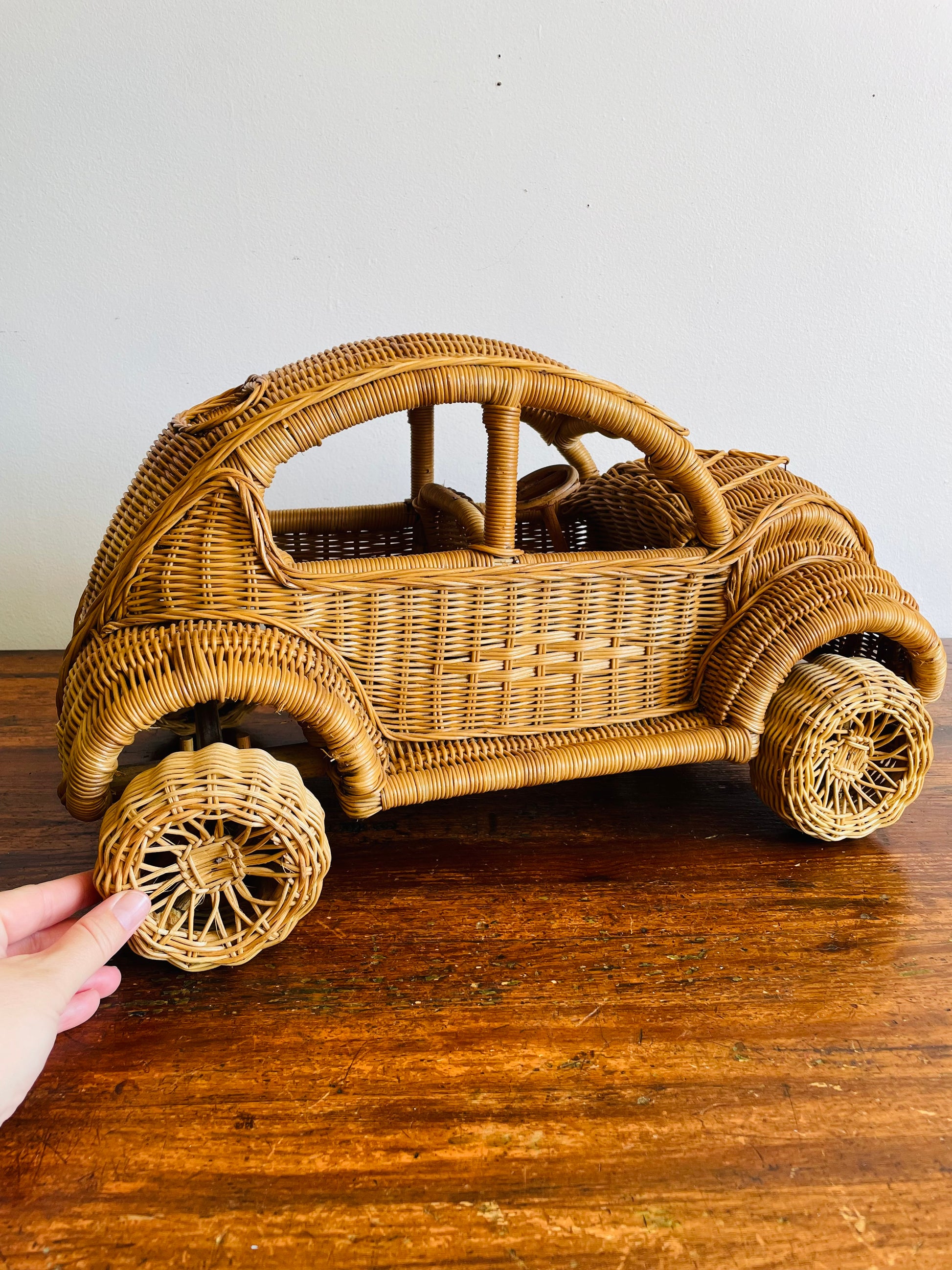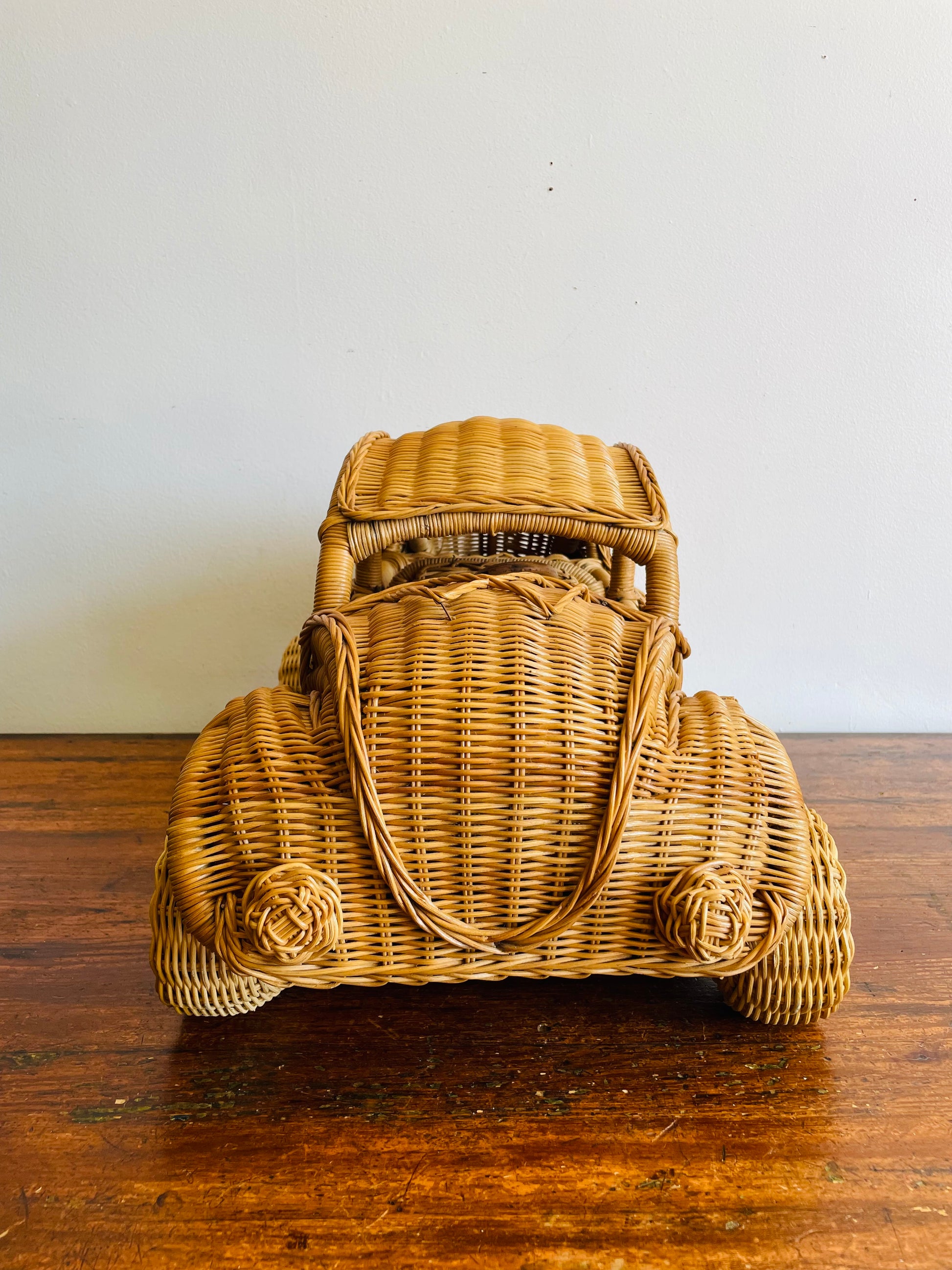 Unique & Fun Bamboo & Wicker Volkswagen VW Beetle Car - Wheels Roll!