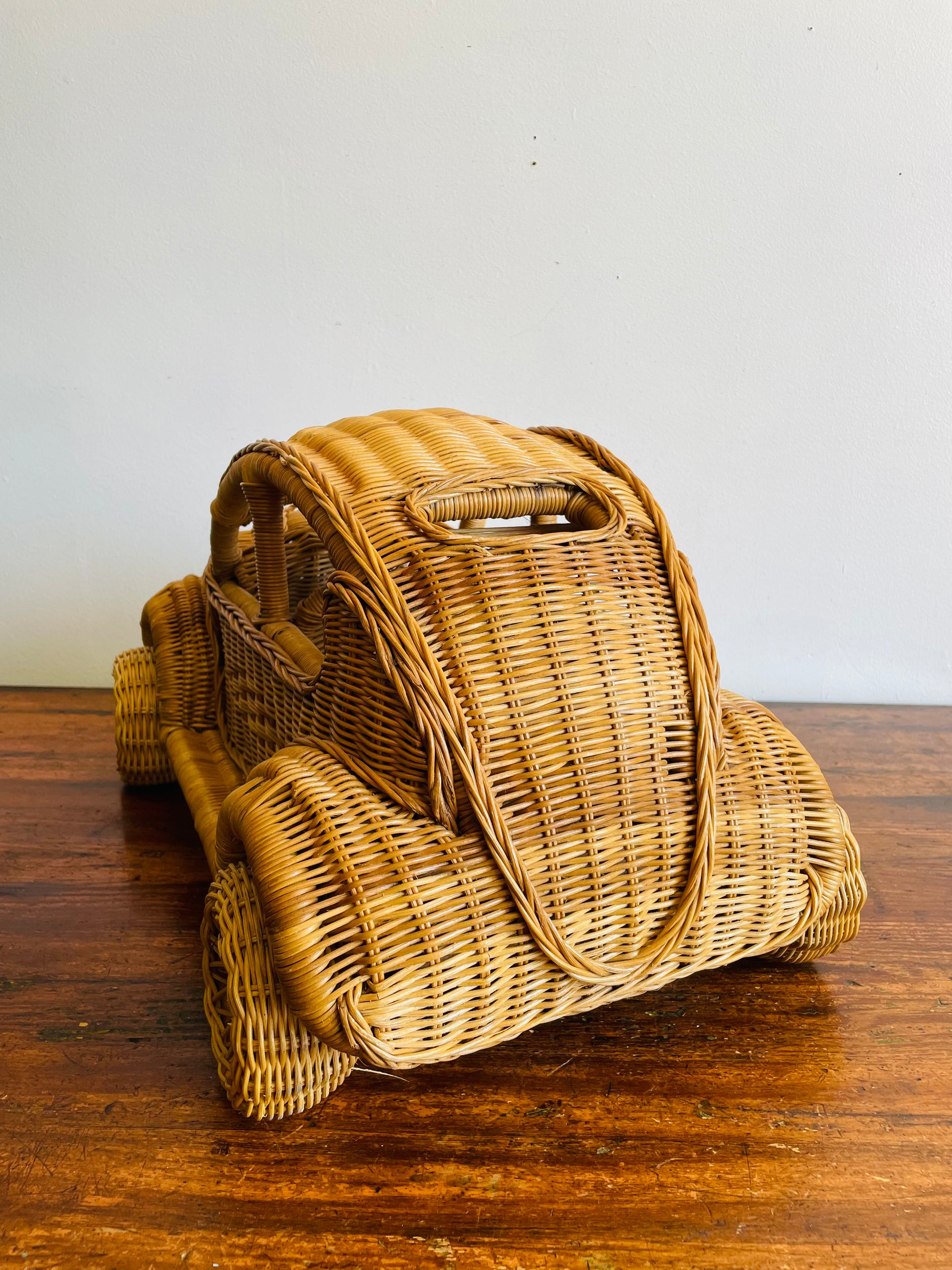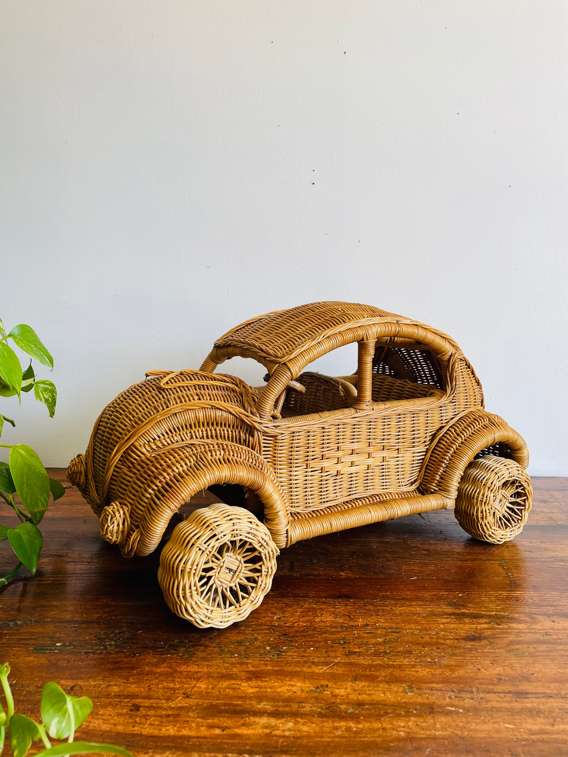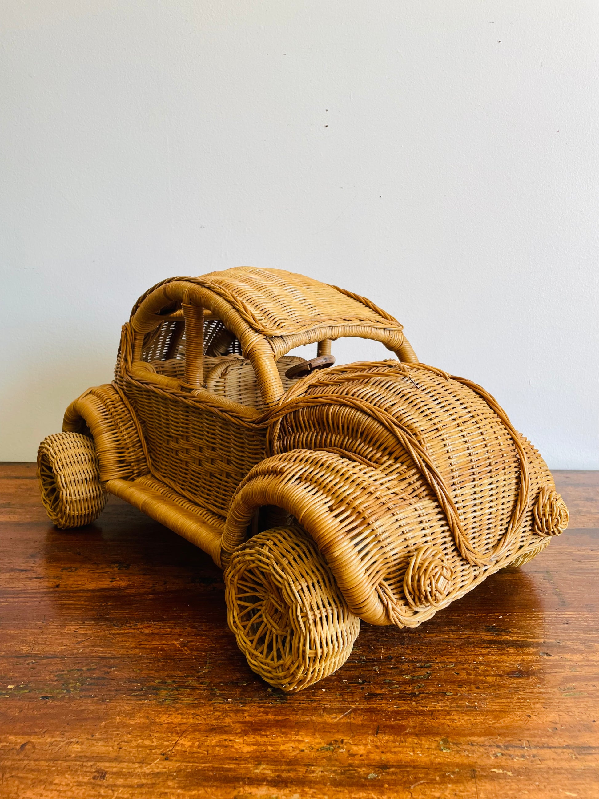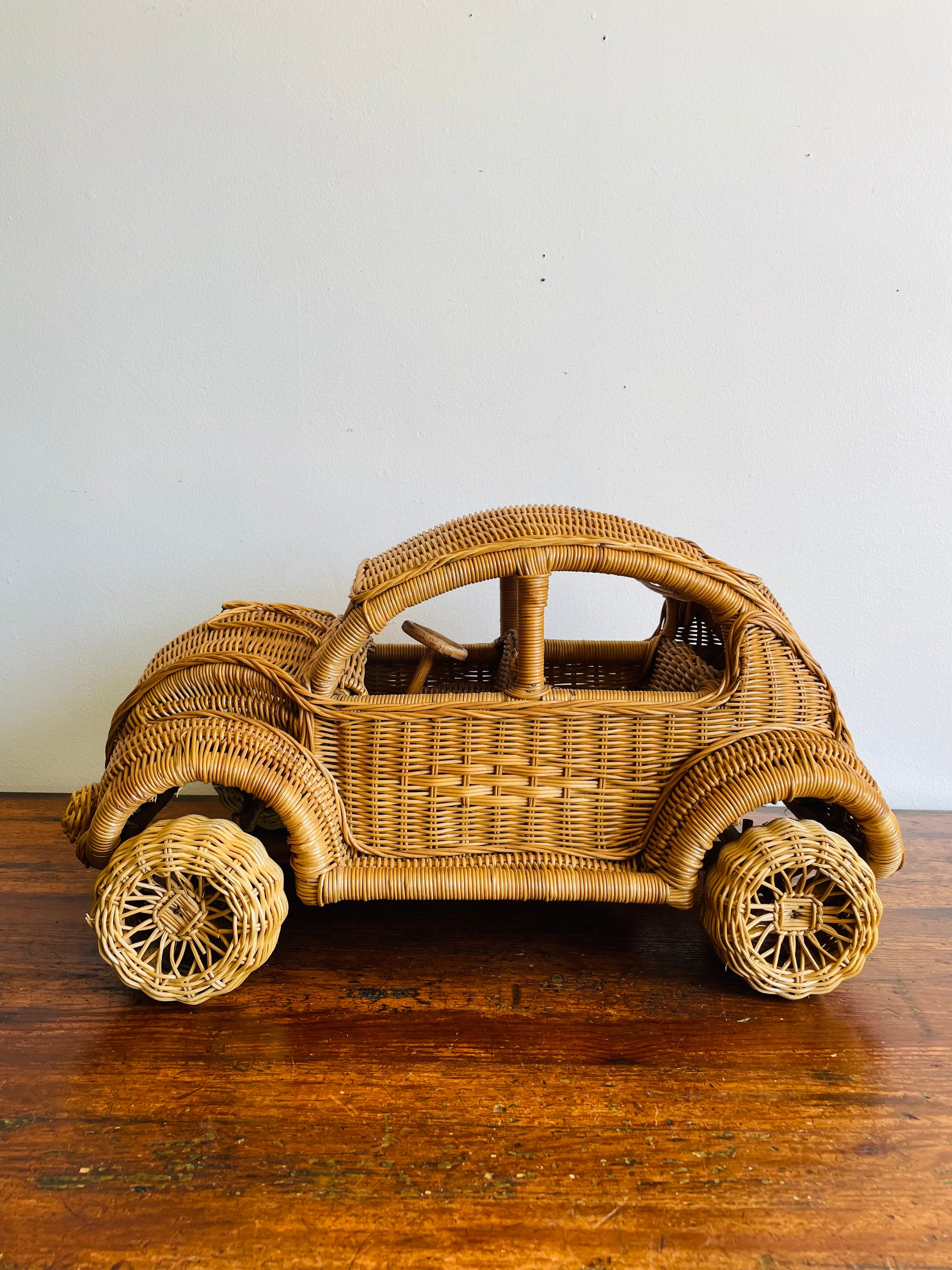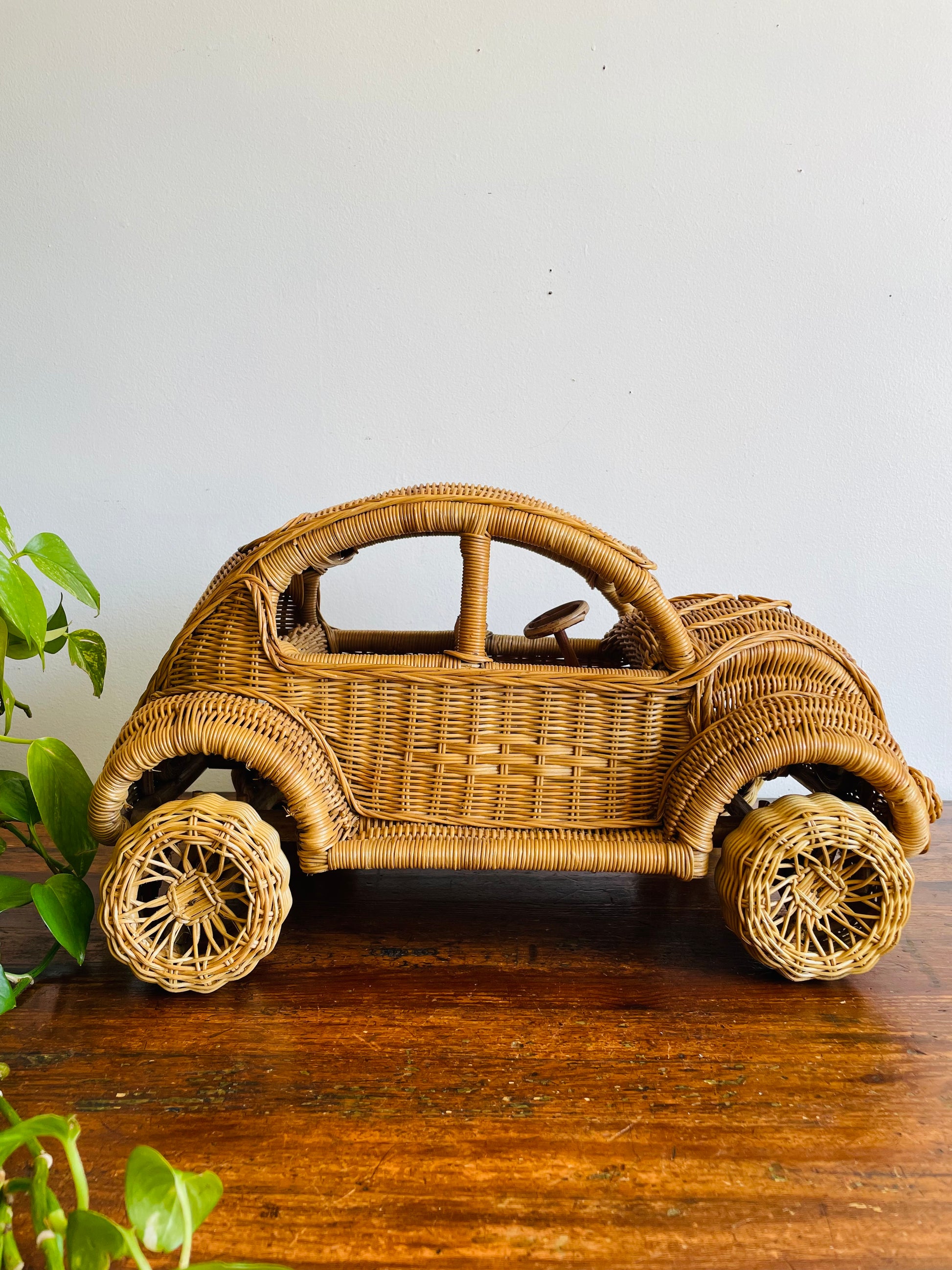 Unique & Fun Bamboo & Wicker Volkswagen VW Beetle Car - Wheels Roll!
