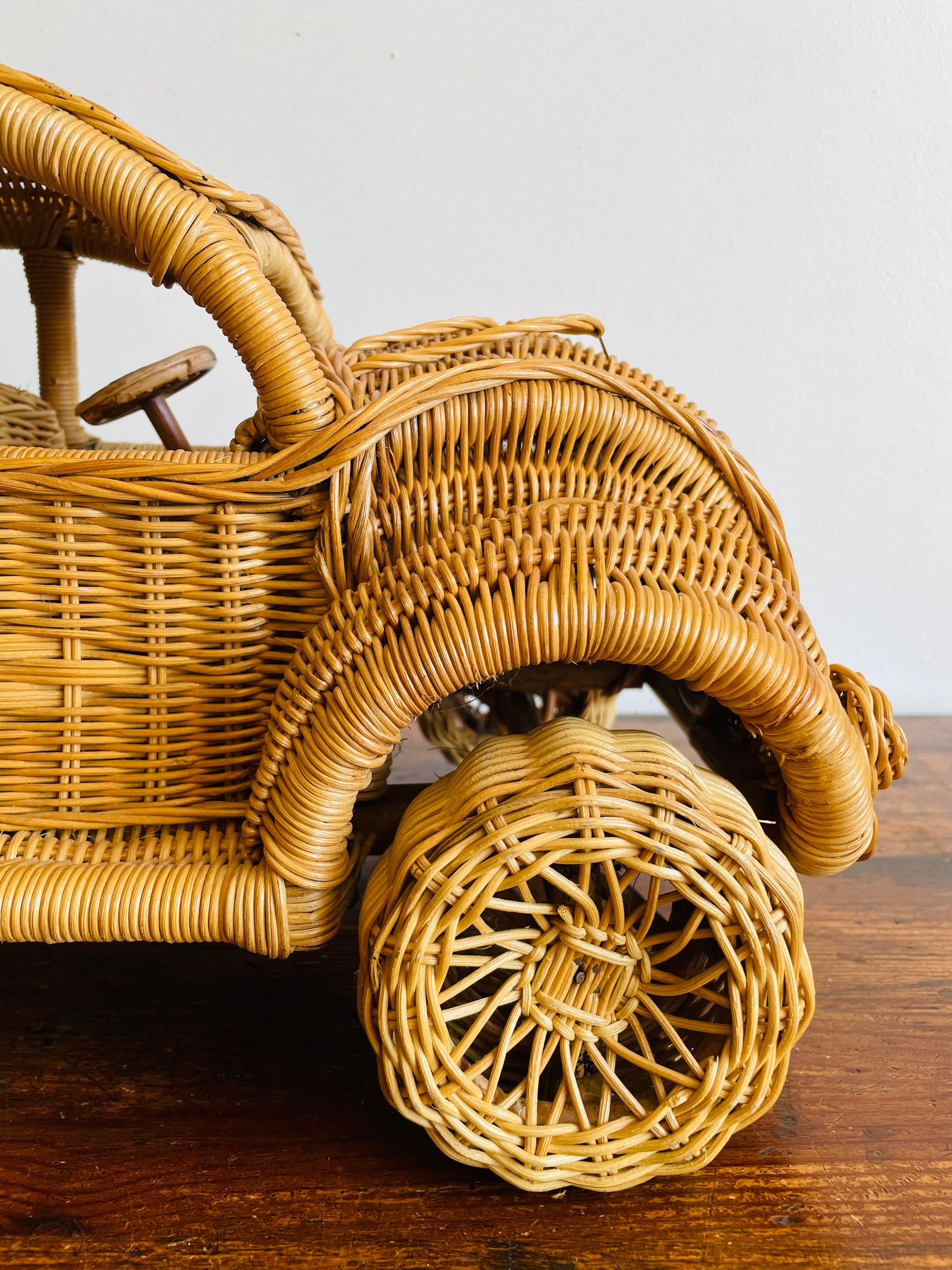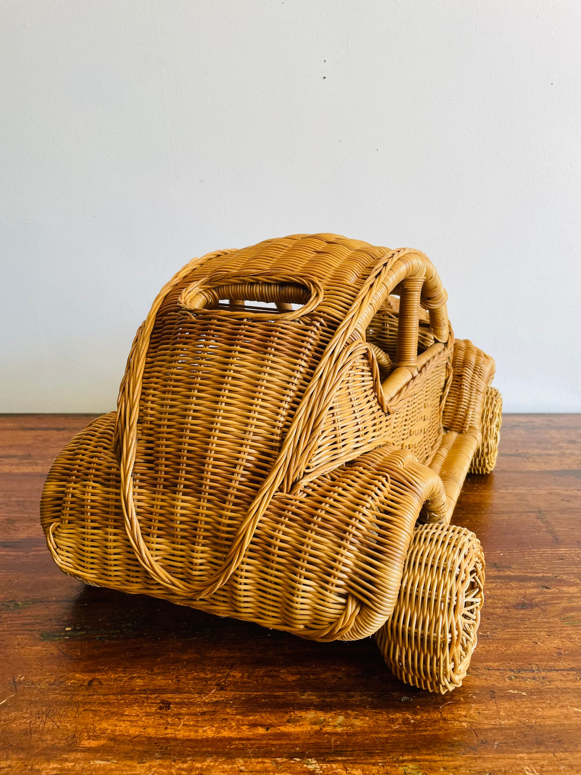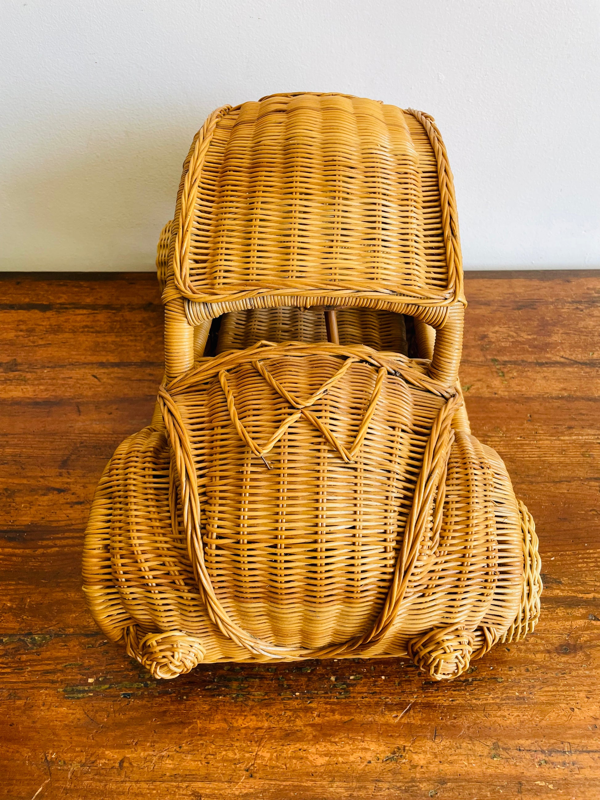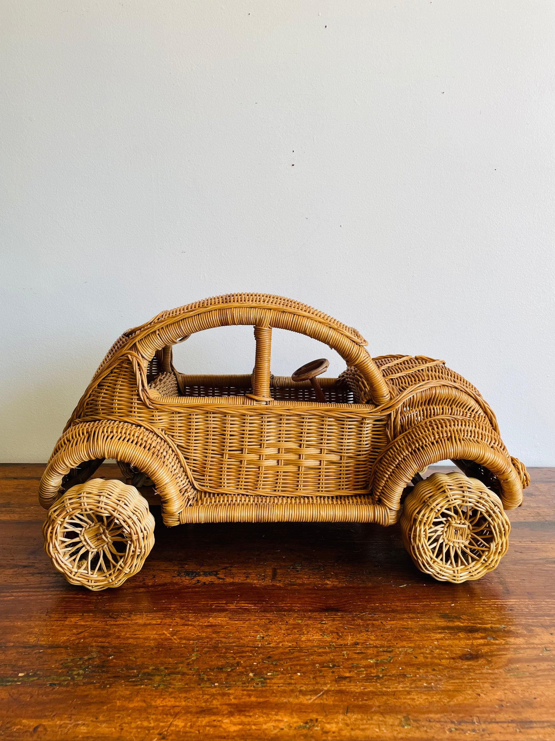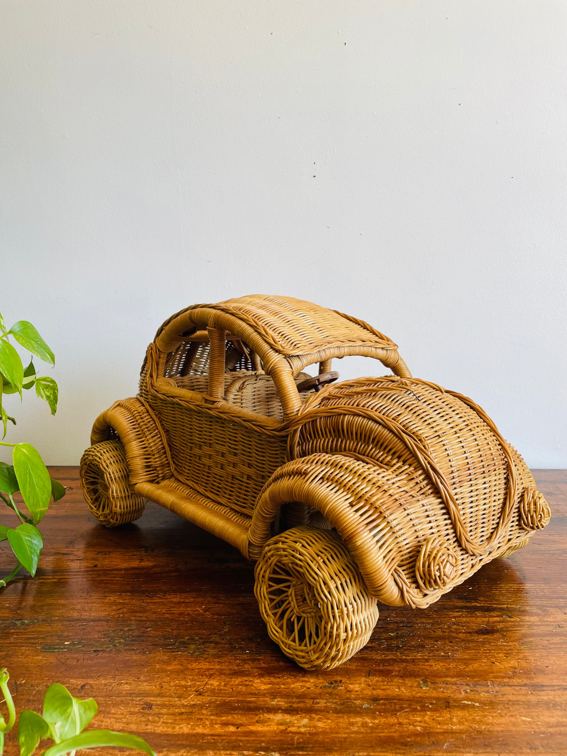 Unique & Fun Bamboo & Wicker Volkswagen VW Beetle Car - Wheels Roll!