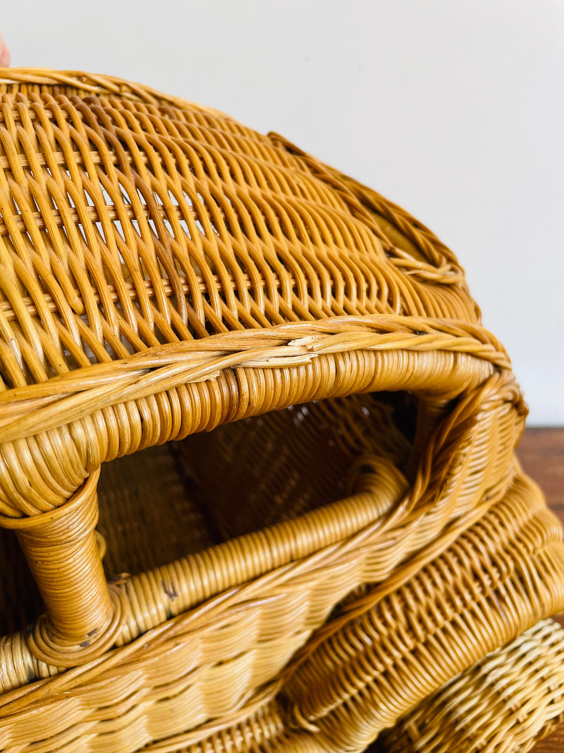 Such a fun piece and super cute! This beetle is in remarkably good shape with only a few minor spots of wear. One nail is a little loose on the hood and there is a tiny breakage in the wicker on the trim of the roof on one side. See photos. I could only find a couple of these cars online and they are in/have sold in the $400-$500 range.
