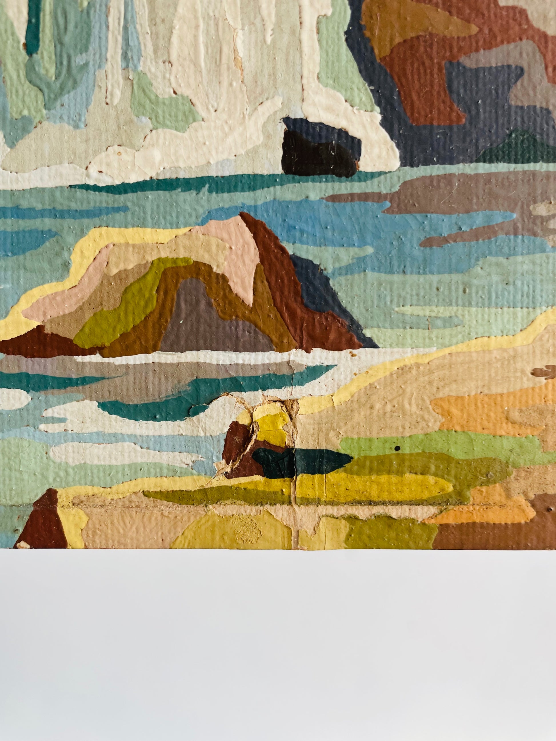 A vintage paint by number (PBN) which has been painted on board. Great for framing or to display on a shelf, ledge, or easel as-is.