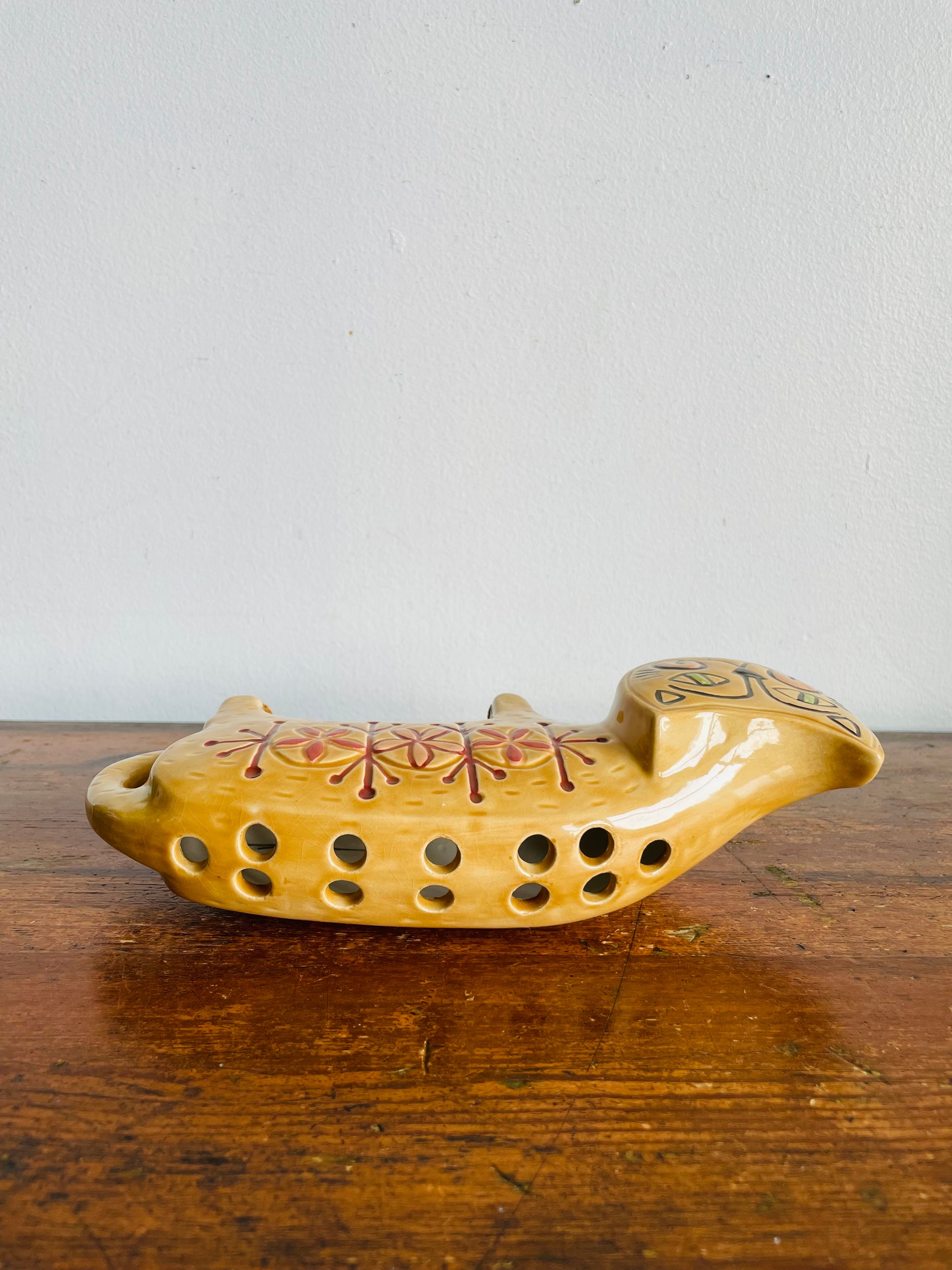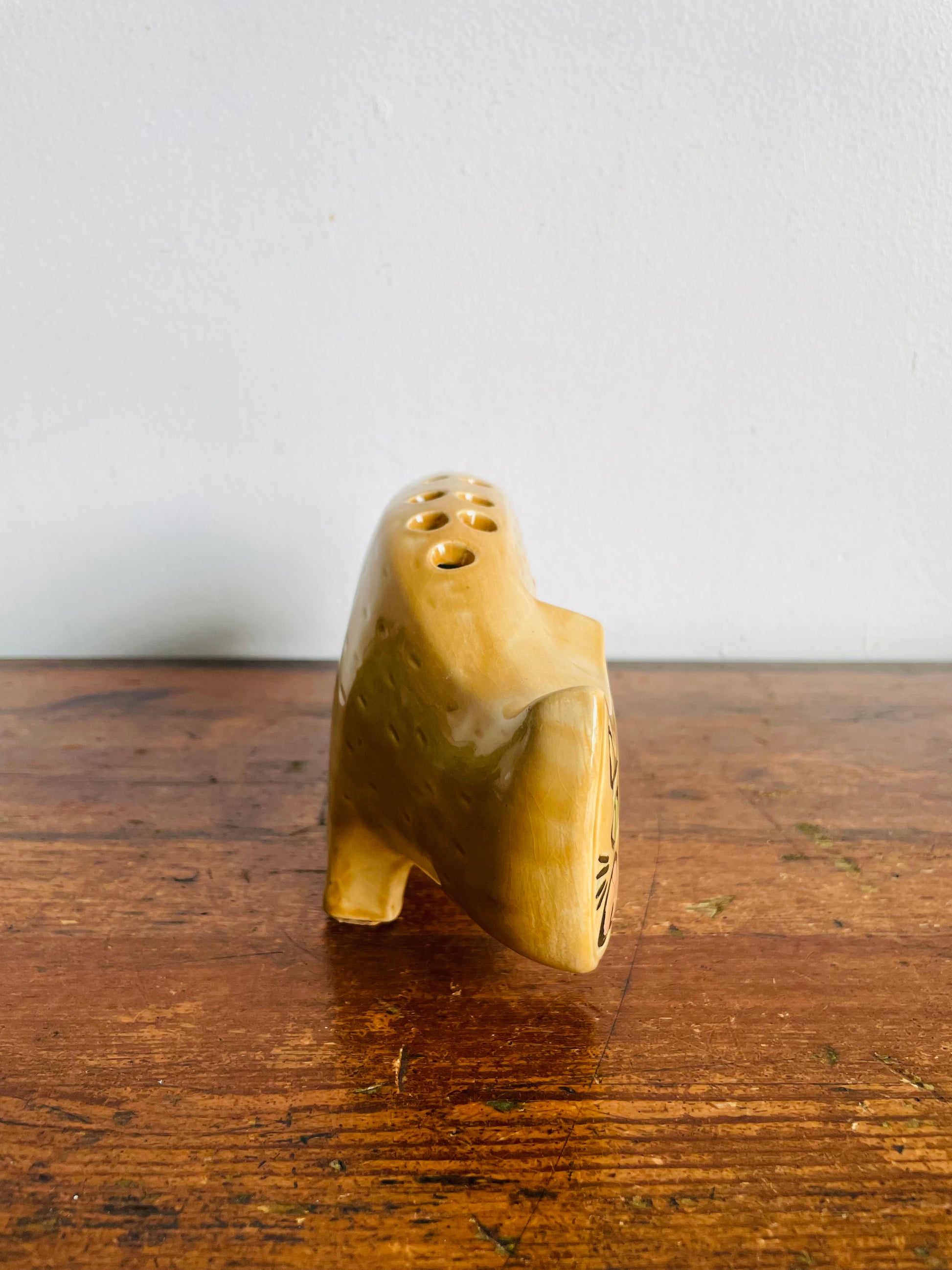 How fun is this cat?! When I researched it online, it looks like they were all made into piggy banks (thus the circle hole on the bottom for the stopper). However, the person who made and painted this cat decided to make it a holder instead. I couldn't find any other holders online so this might be the only one there is.