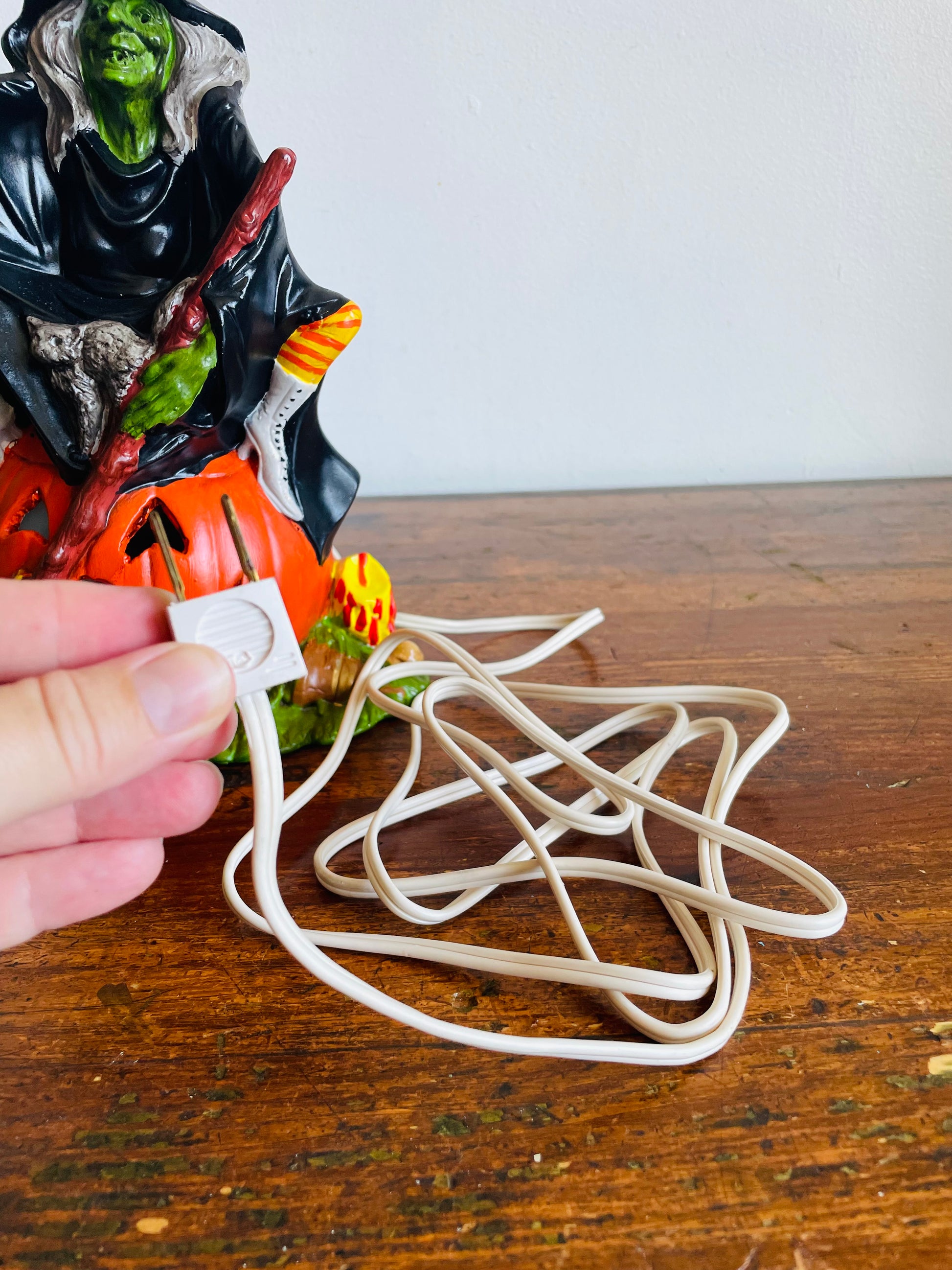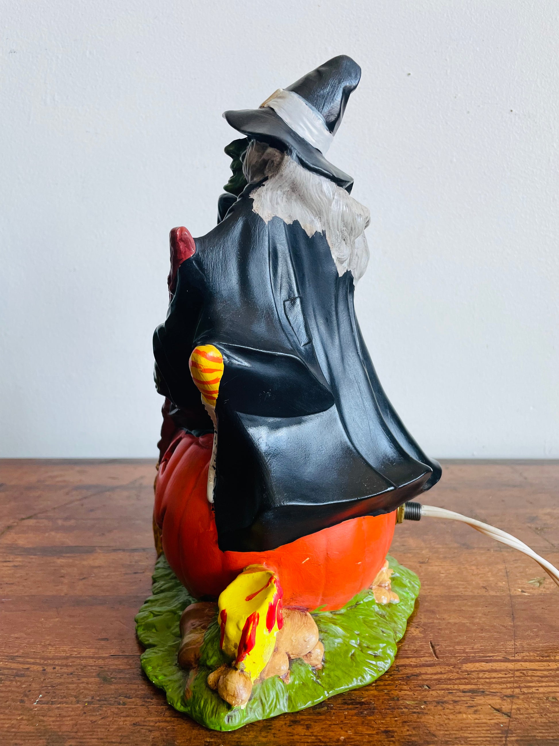 Vintage 1972 Byron Molds Halloween Witch & Black Cat Sitting on Jack-o-Lantern Pumpkin Lamp Light - Tested/Works - Includes Red Lightbulb