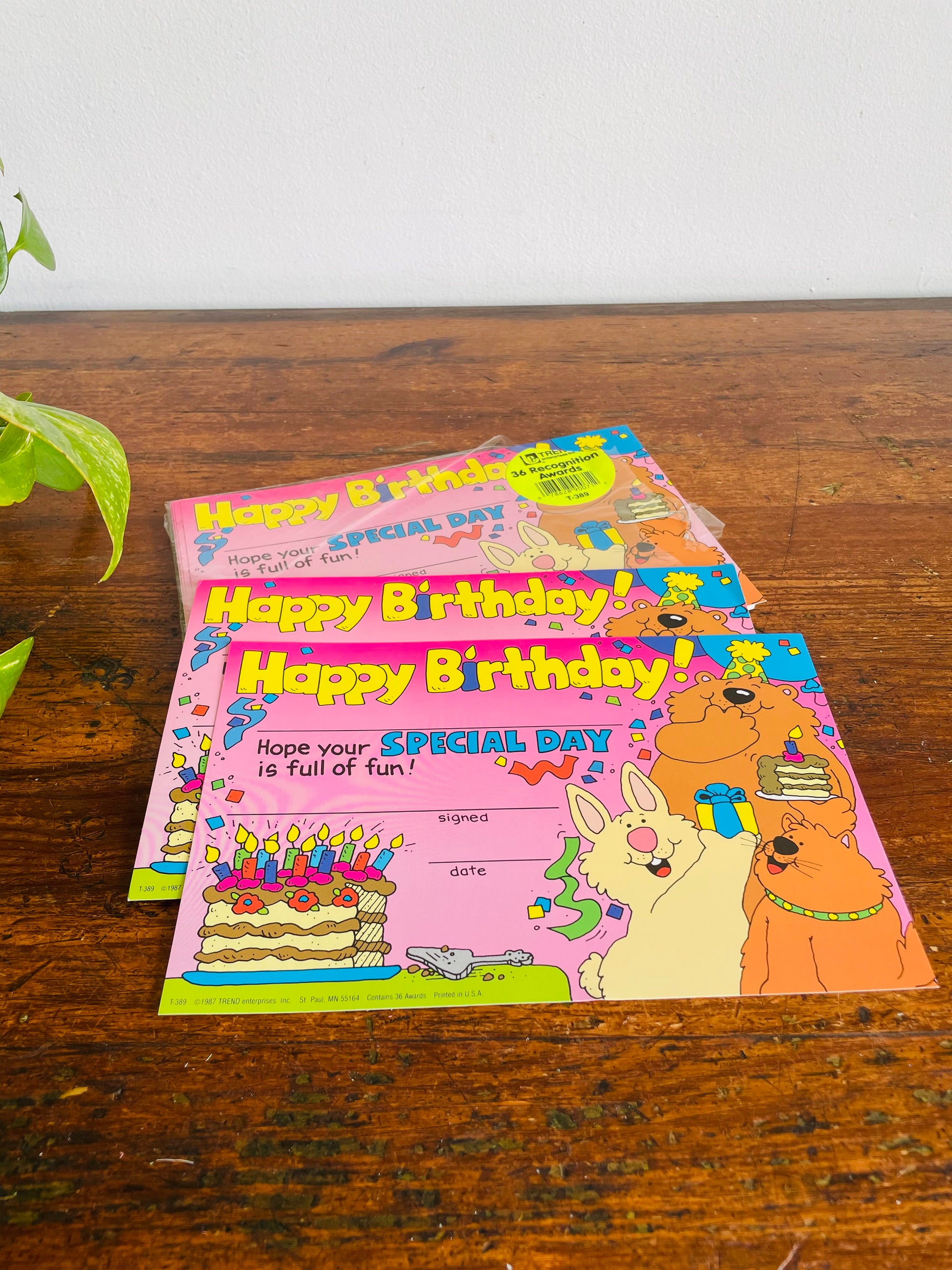 Vintage 1987 School Teacher Classroom Supplies - Blank Happy Birthday Certificates - 21 Sheets - Trend Enterprises Inc.