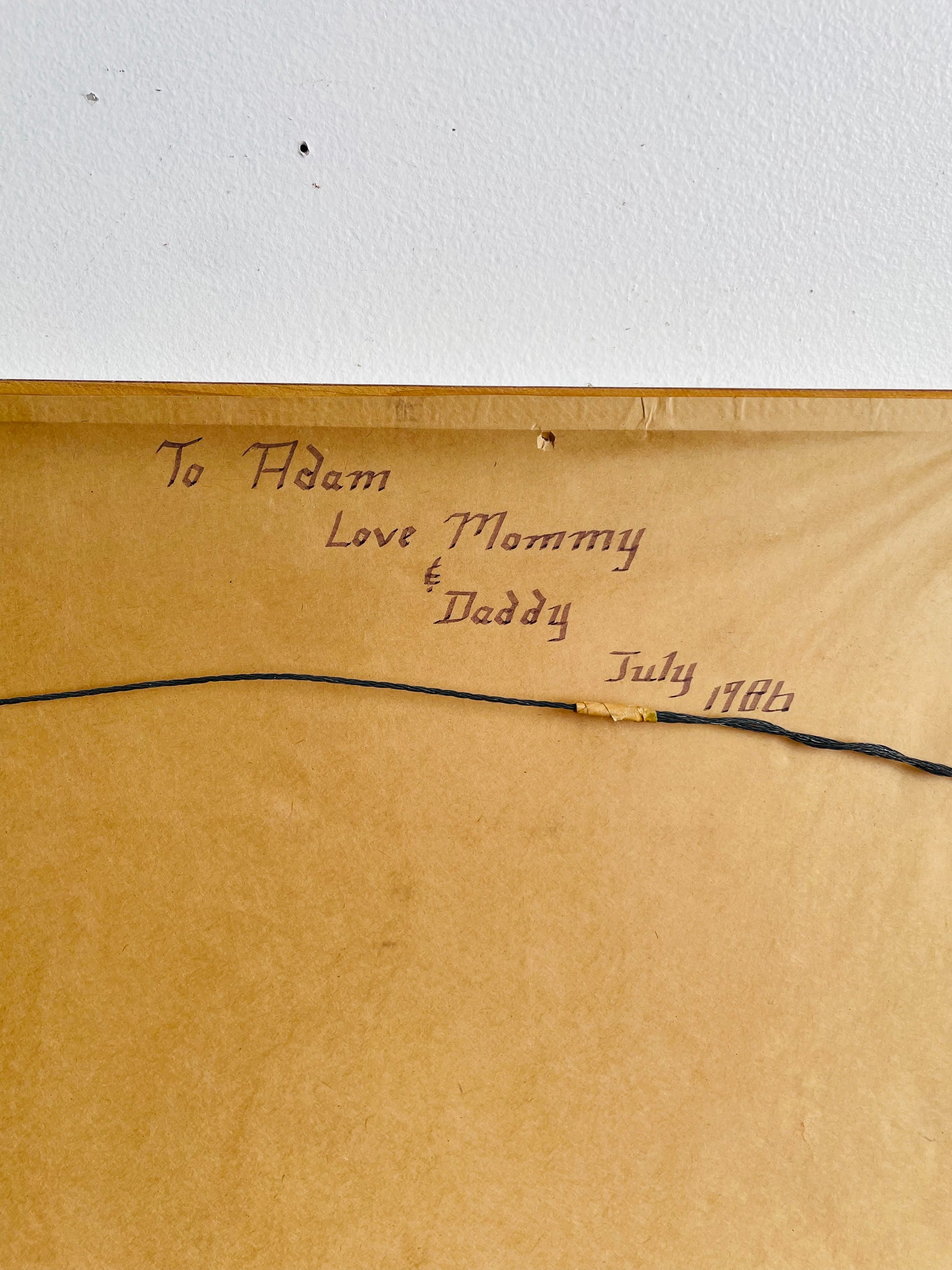 Written on the back: To Adam Love Mommy & Daddy July 1986