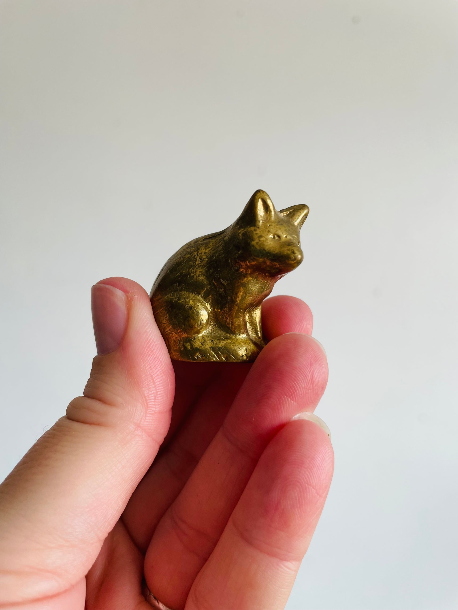 Vintage Adorable Miniature Solid Brass Fox Figurine