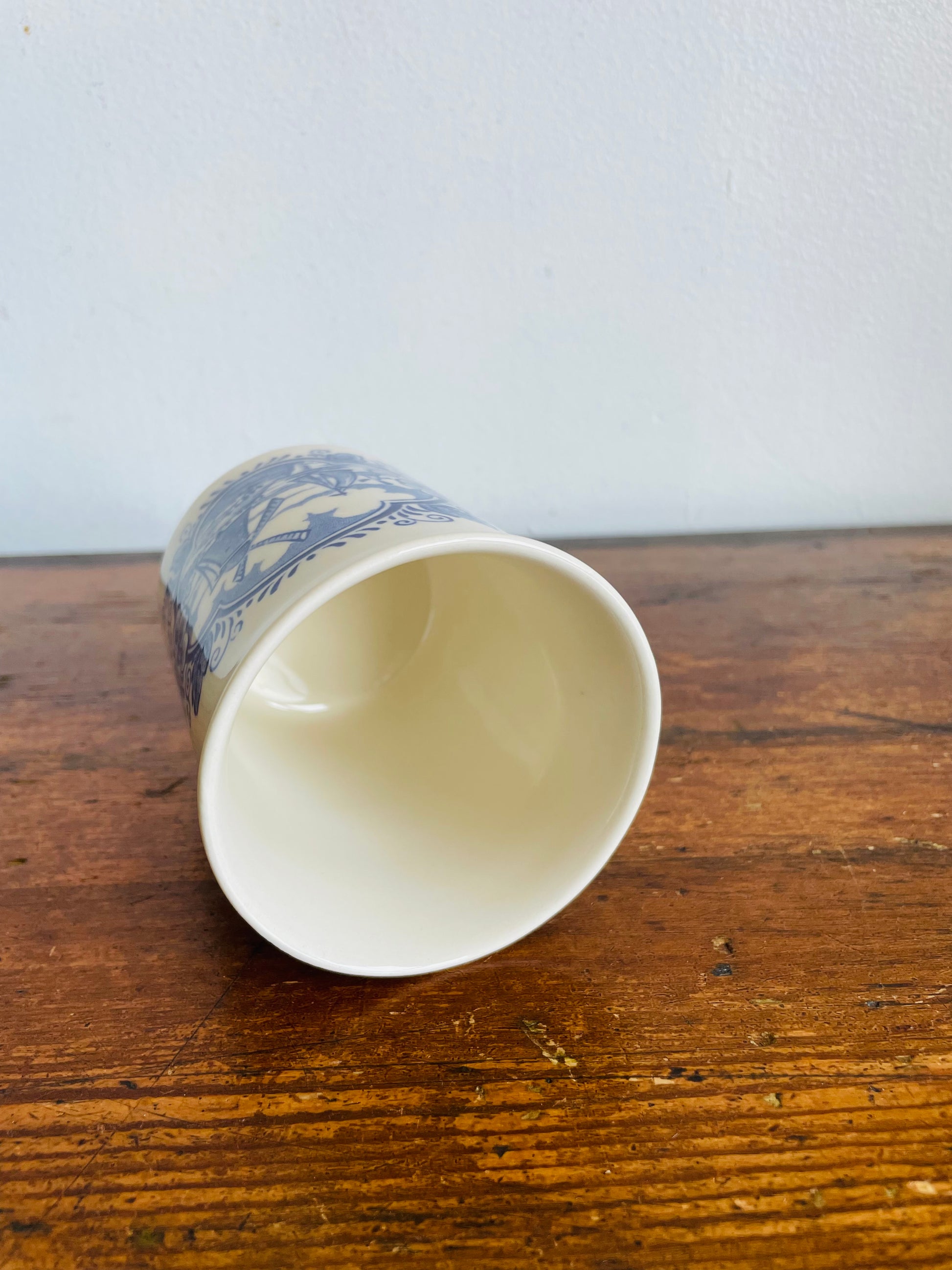 Vintage Blue & White Cup with Dutch Windmill & Sailboat Scene - English Ironstone Tableware - Vase, Pencils, Toothbrush Holder, Etc.
