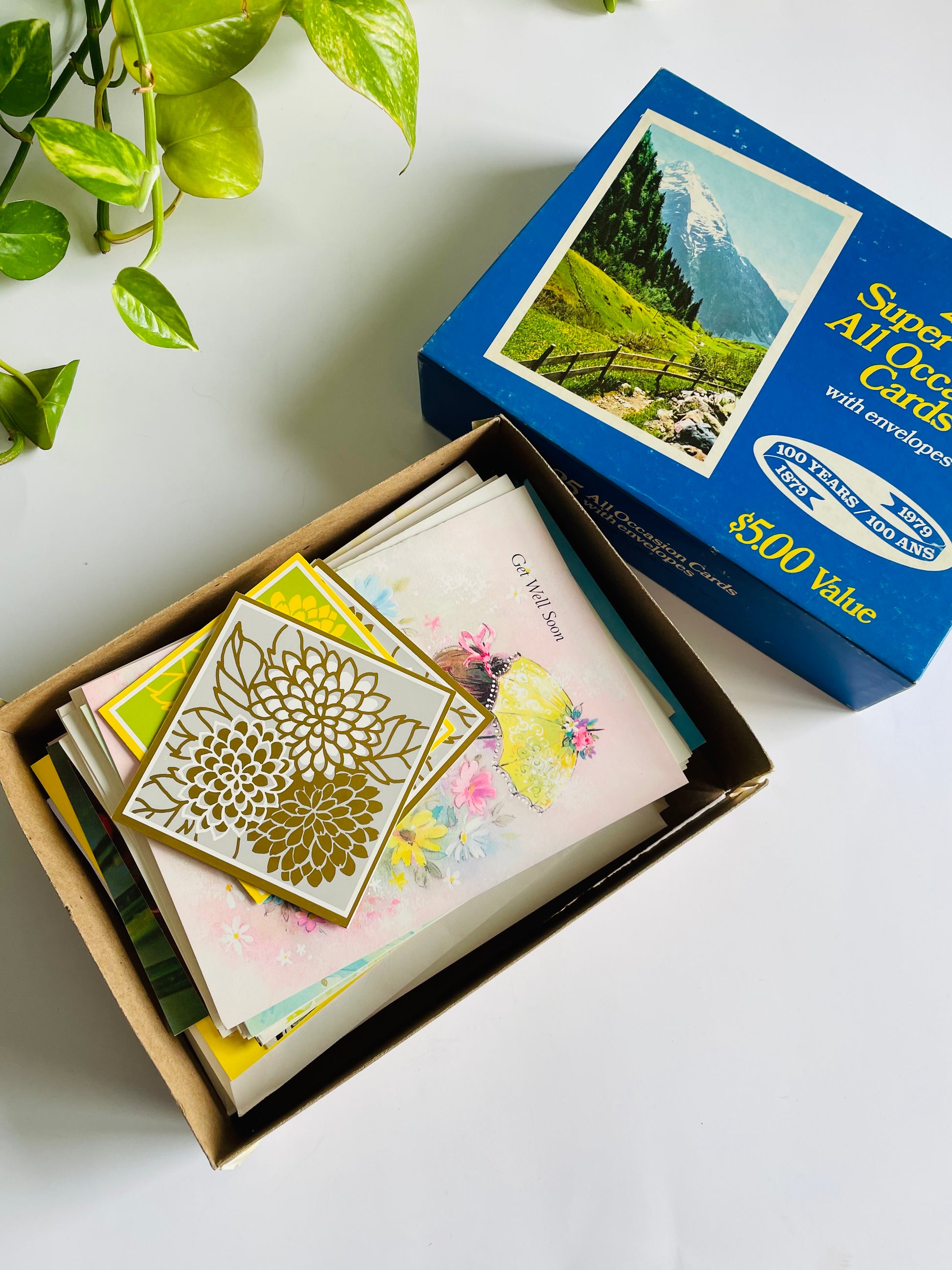 Vintage Box of Unused Assorted Greeting Cards for All Occasions - Set of 34 with Envelopes