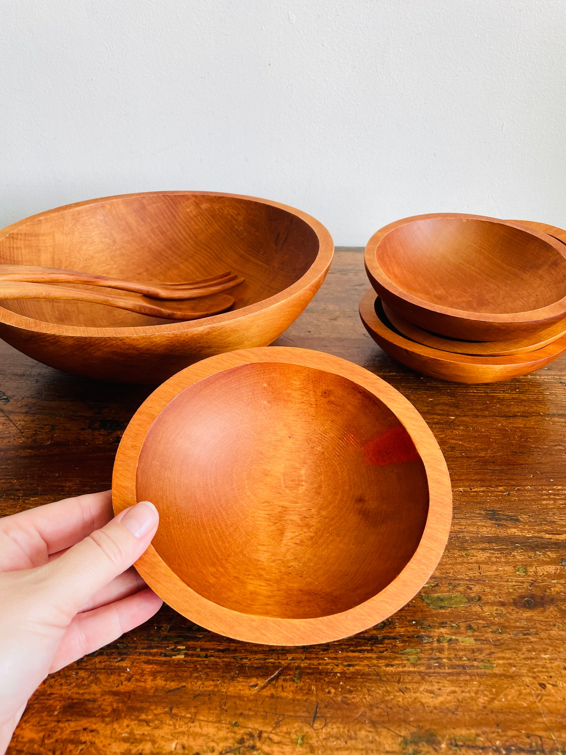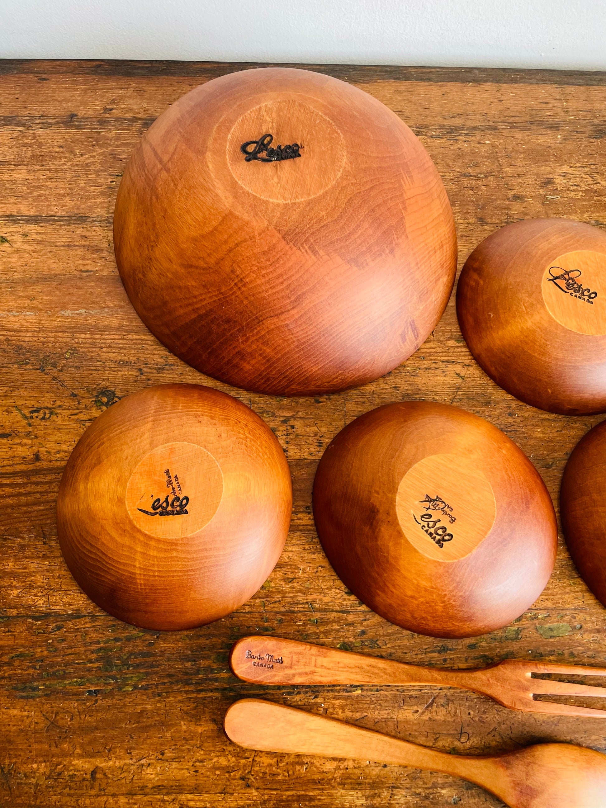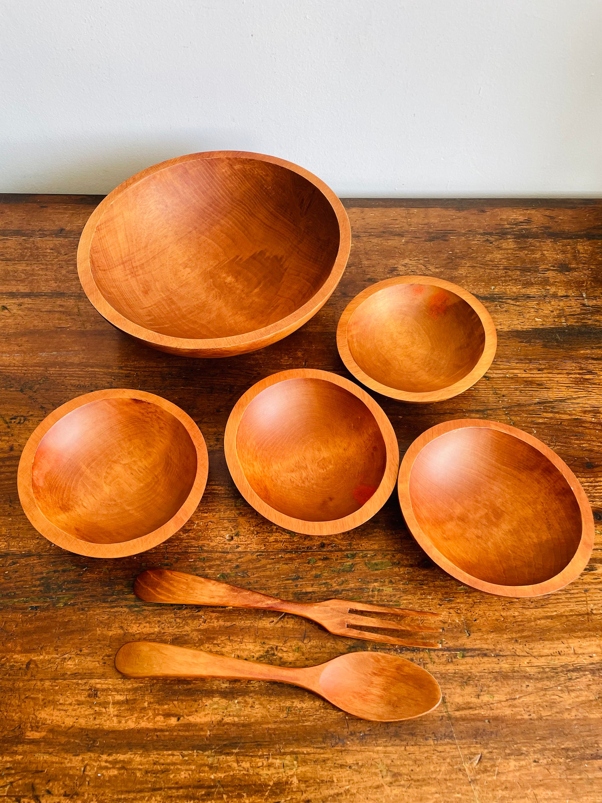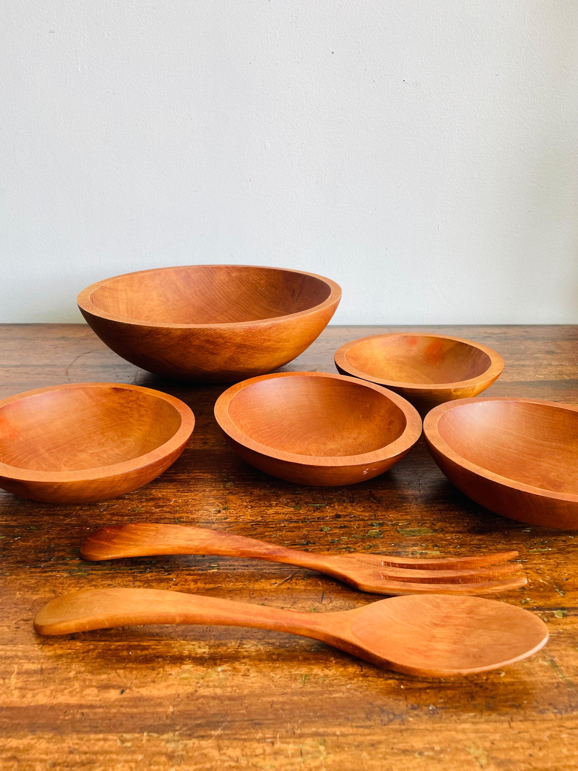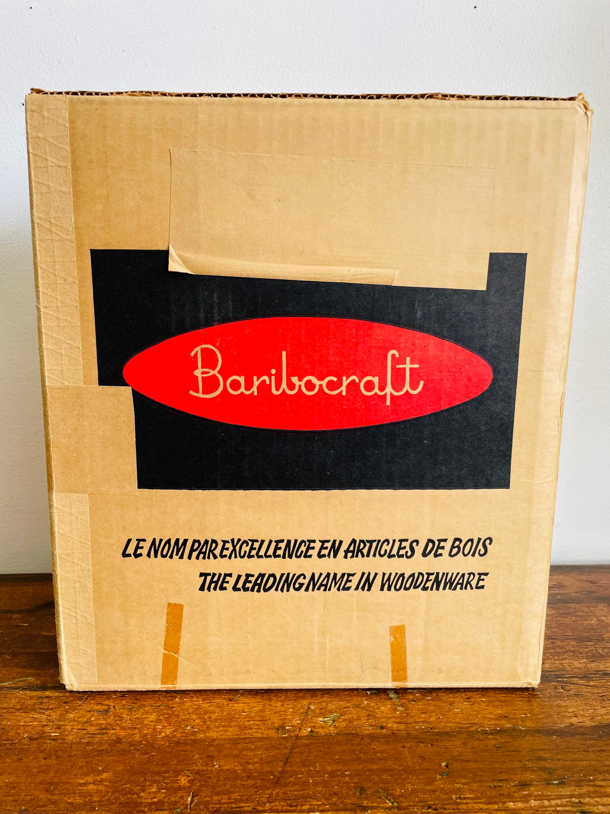 Vintage Brand New in Box Baribocraft / Lesko Baribo Maid Wooden Salad Serving Bowl Set with Utensils - Made in Quebec, Canada - Set of 7 Pieces
