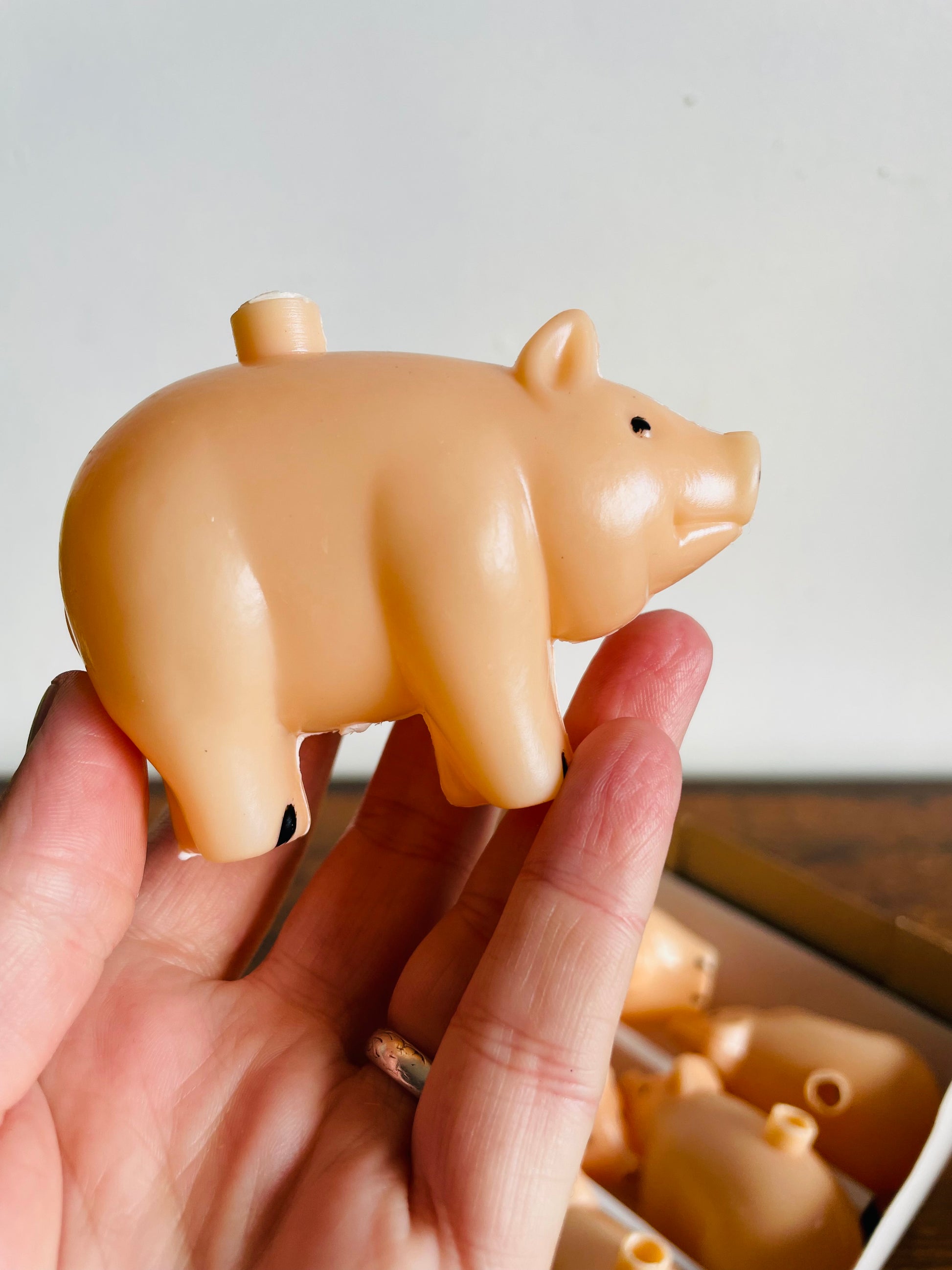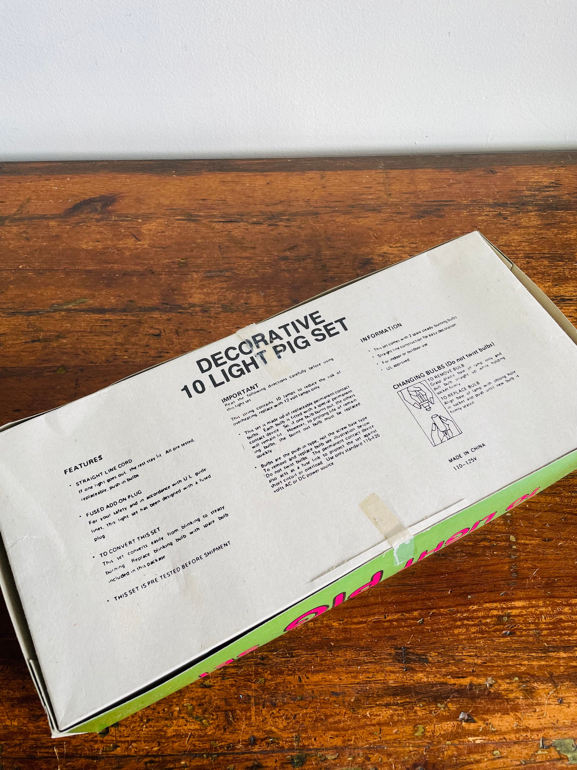 Vintage Brand New Pink Plastic Pigs 10 Light Set of String Lights in Original Box - Tested / Works!