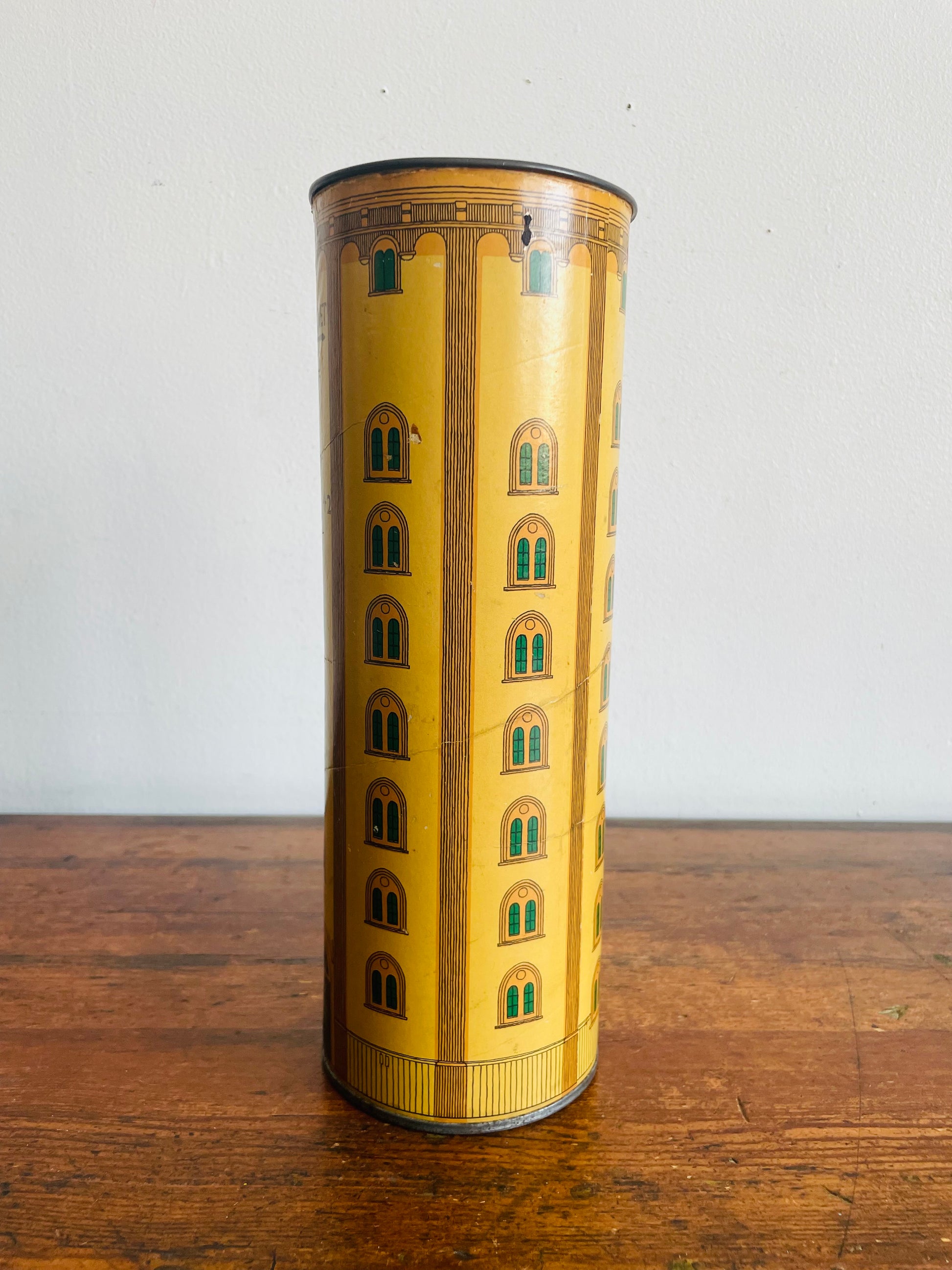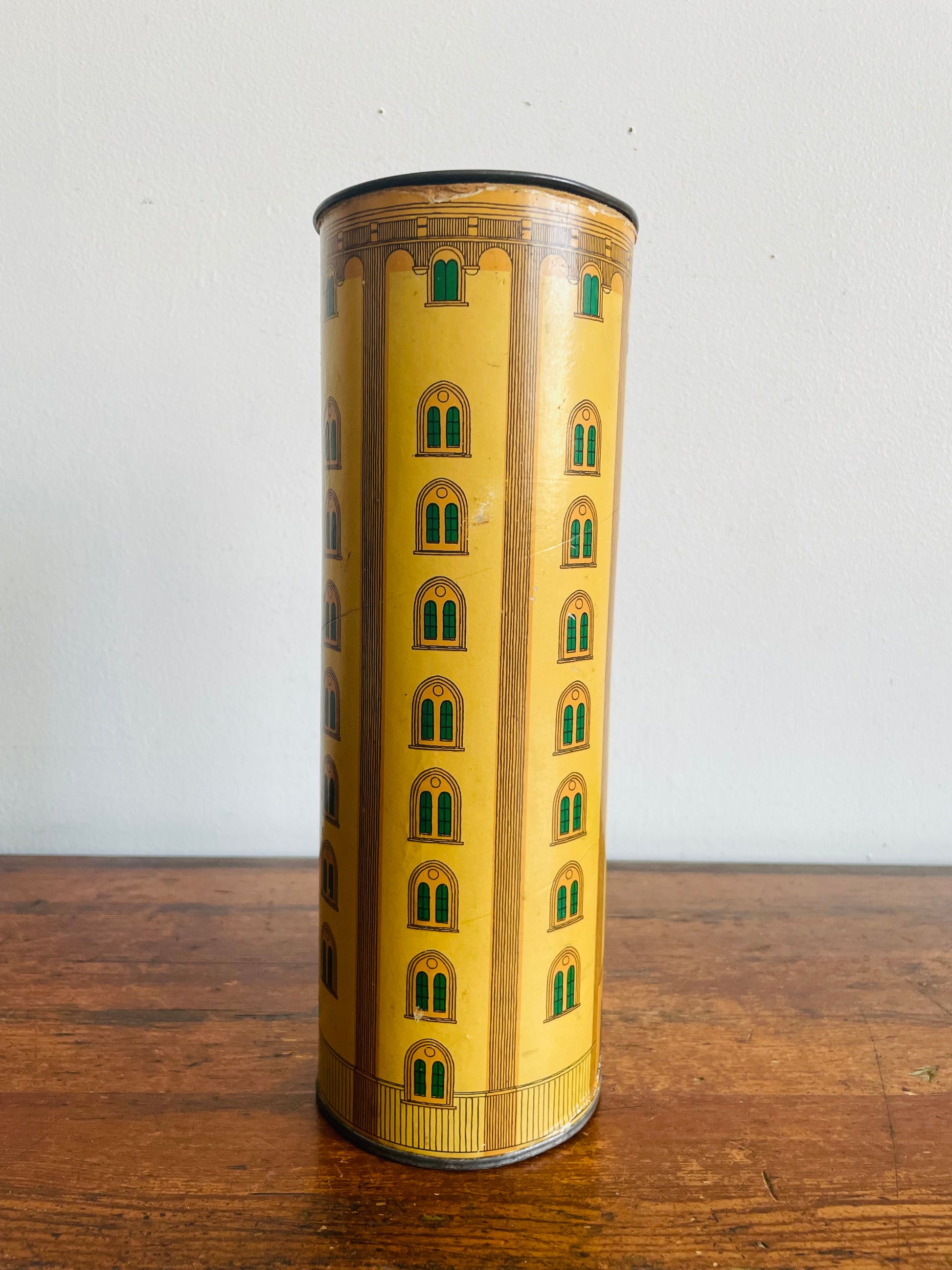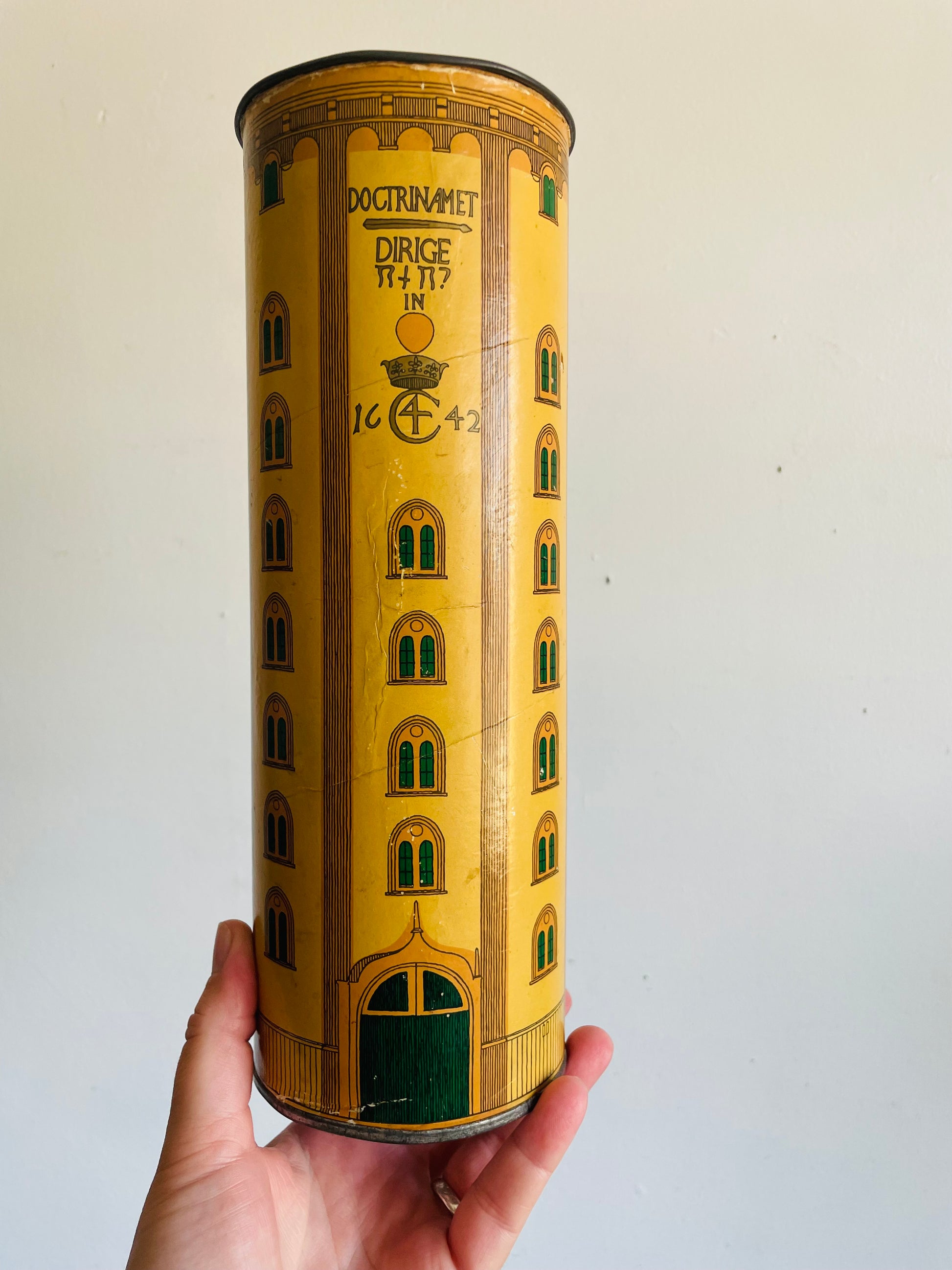 What a unique canister and I couldn't find anything like it online! The most similar item I could find was an Italian canister that was for holding pasta so maybe that was the original intent for this as well but I can't be certain. I just think it's cute and would look great on a shelf, for a child to play with, or to hold items.