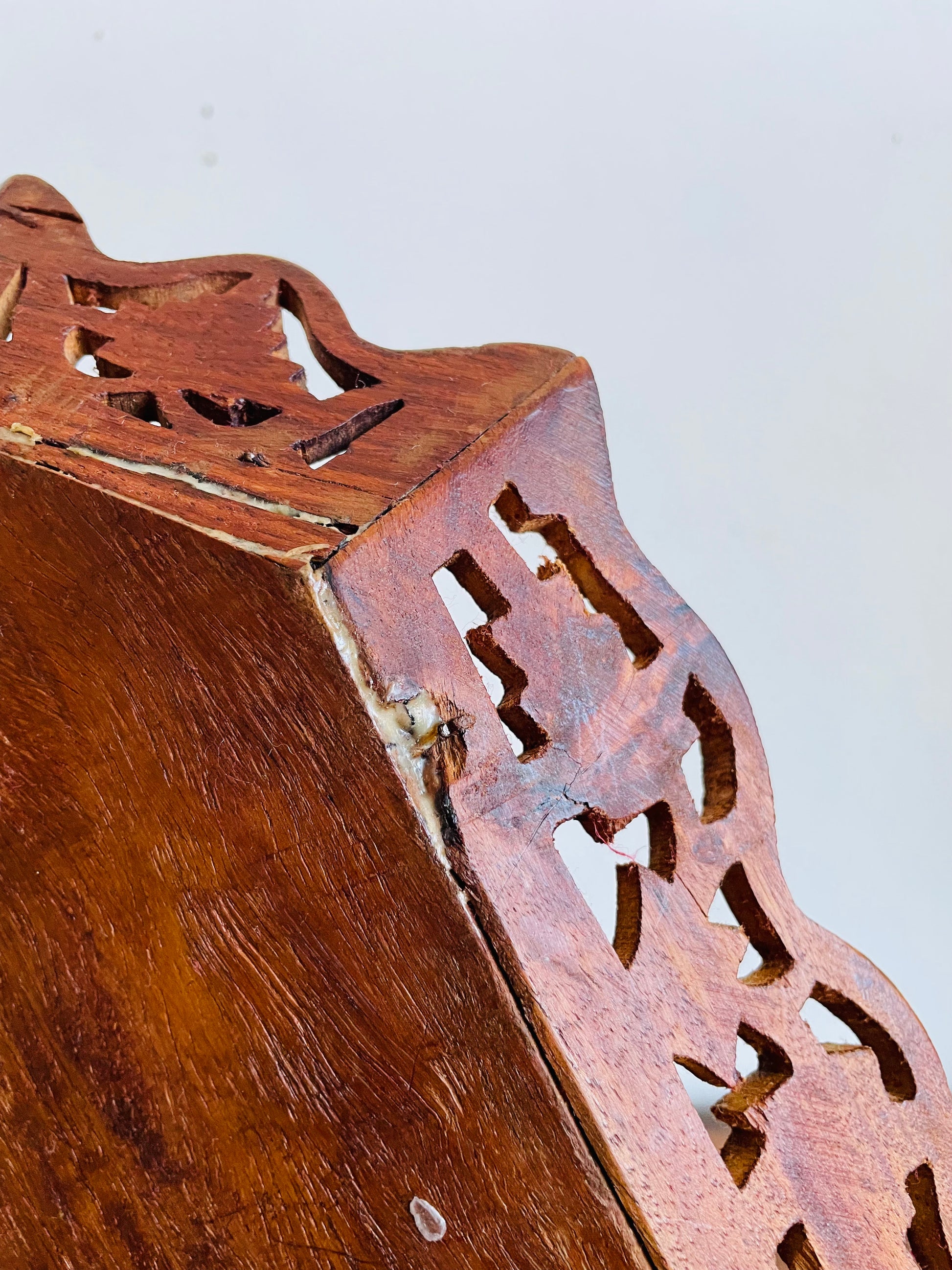 Vintage Carved Indian Rosewood Tray Dish with Inlay Design - Vanity, Bathroom, Jewellery, Candle, Etc.