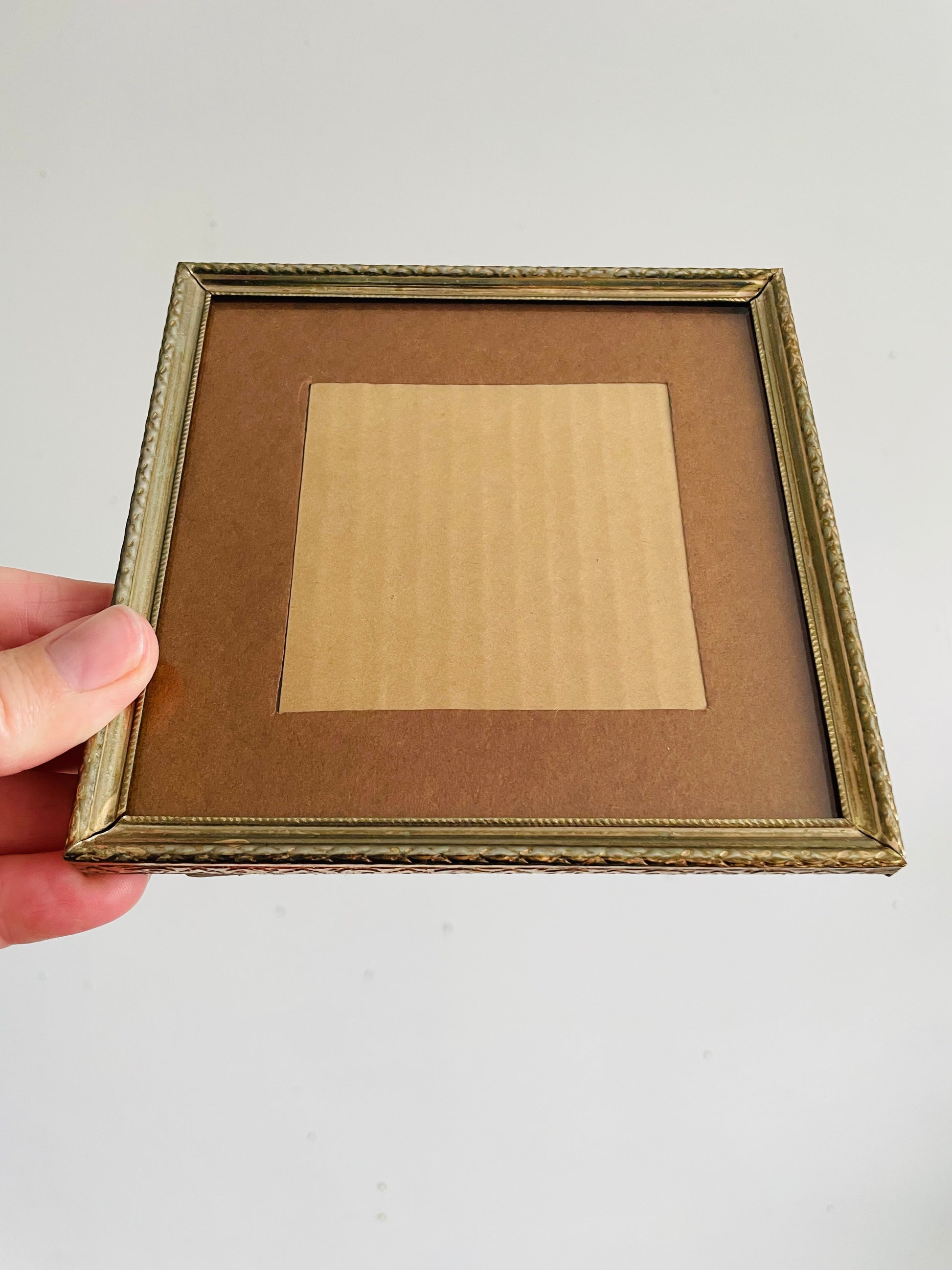 Square frame: Includes a brown paper mat / Total frame size: 5.1" by 5.1" / Total space for photo in centre: 2.9" by 2.9" (in centre of mat but could make the mat smaller or take out) / easel backing