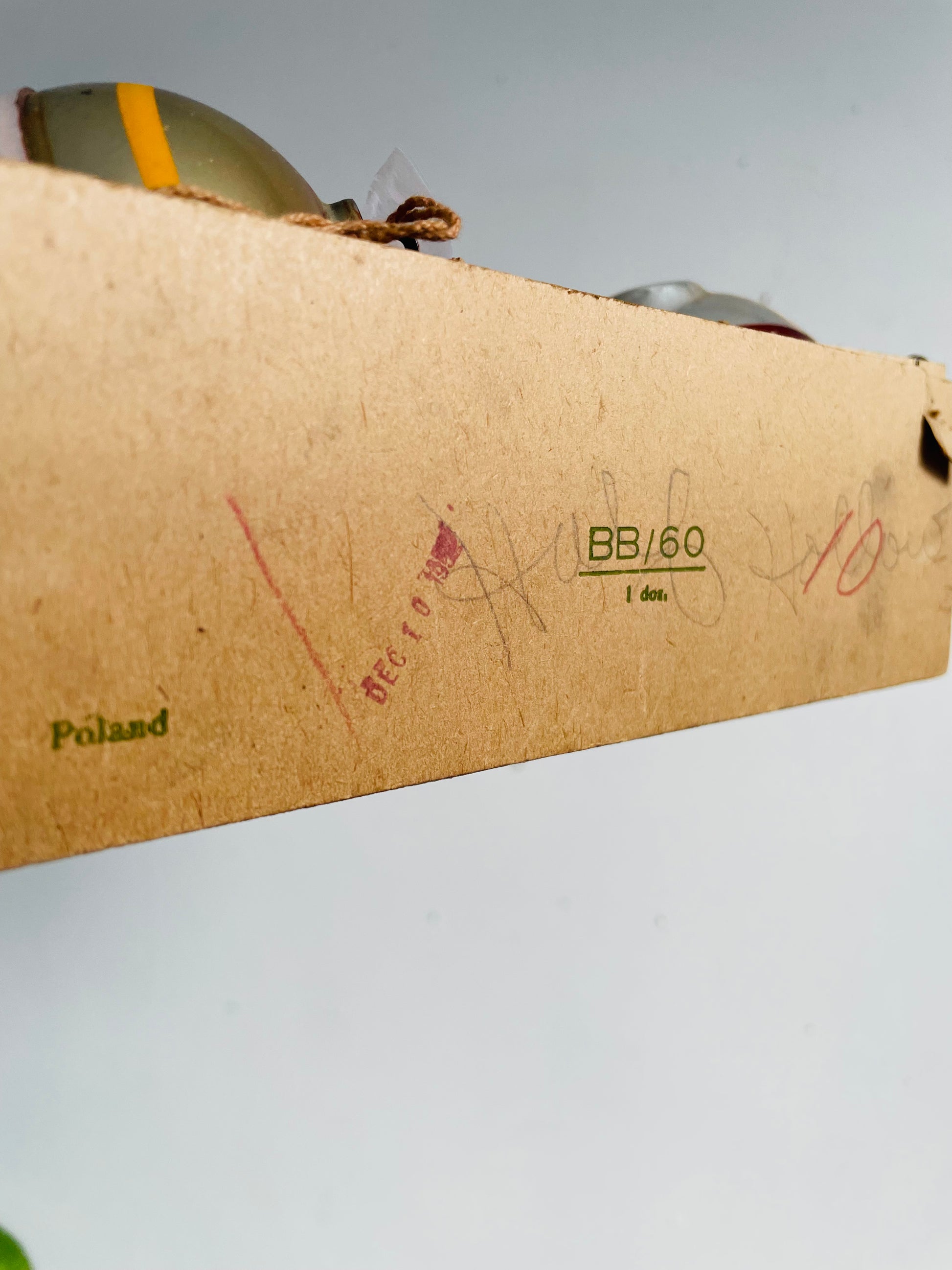 The box is stamped from Poland but I'm not sure if all of the ornaments are from Poland or just were in this box. The one indent ball that is silver, red, white, and green has Made in USA stamped on the silver part at the top. I can't see any stamps on any others.