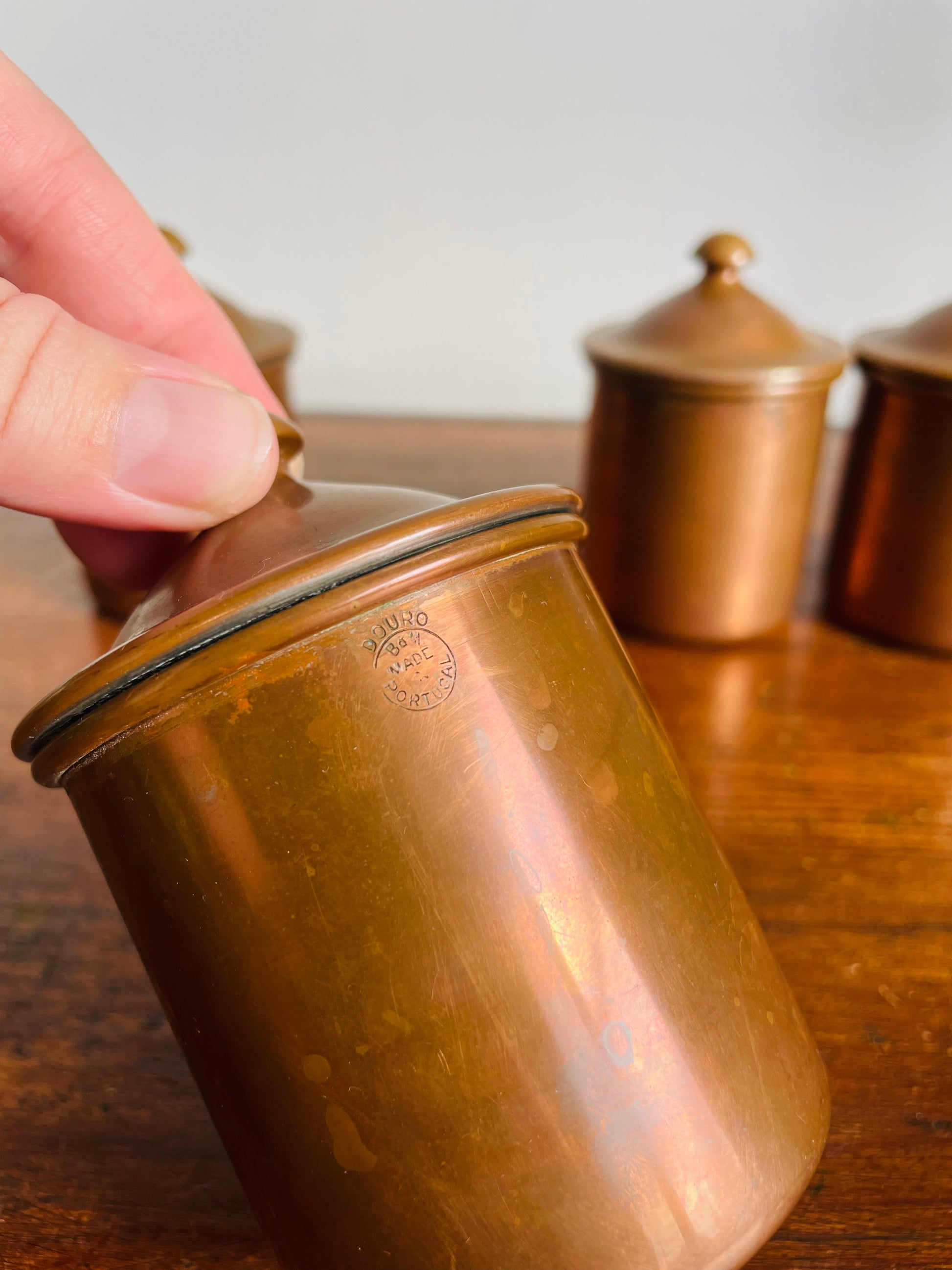 Vintage Collection of Douro B & M Mini Copper Canister Jars with Knob Handle Lids - Set of 4 - Made in Portugal
