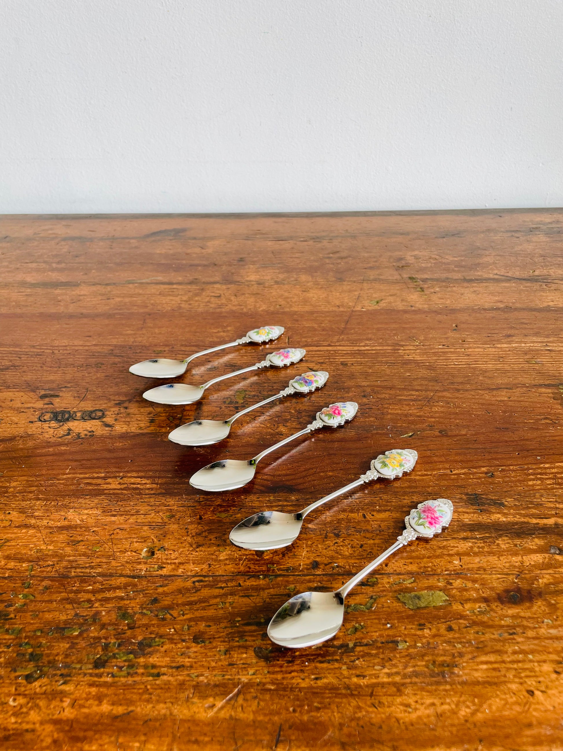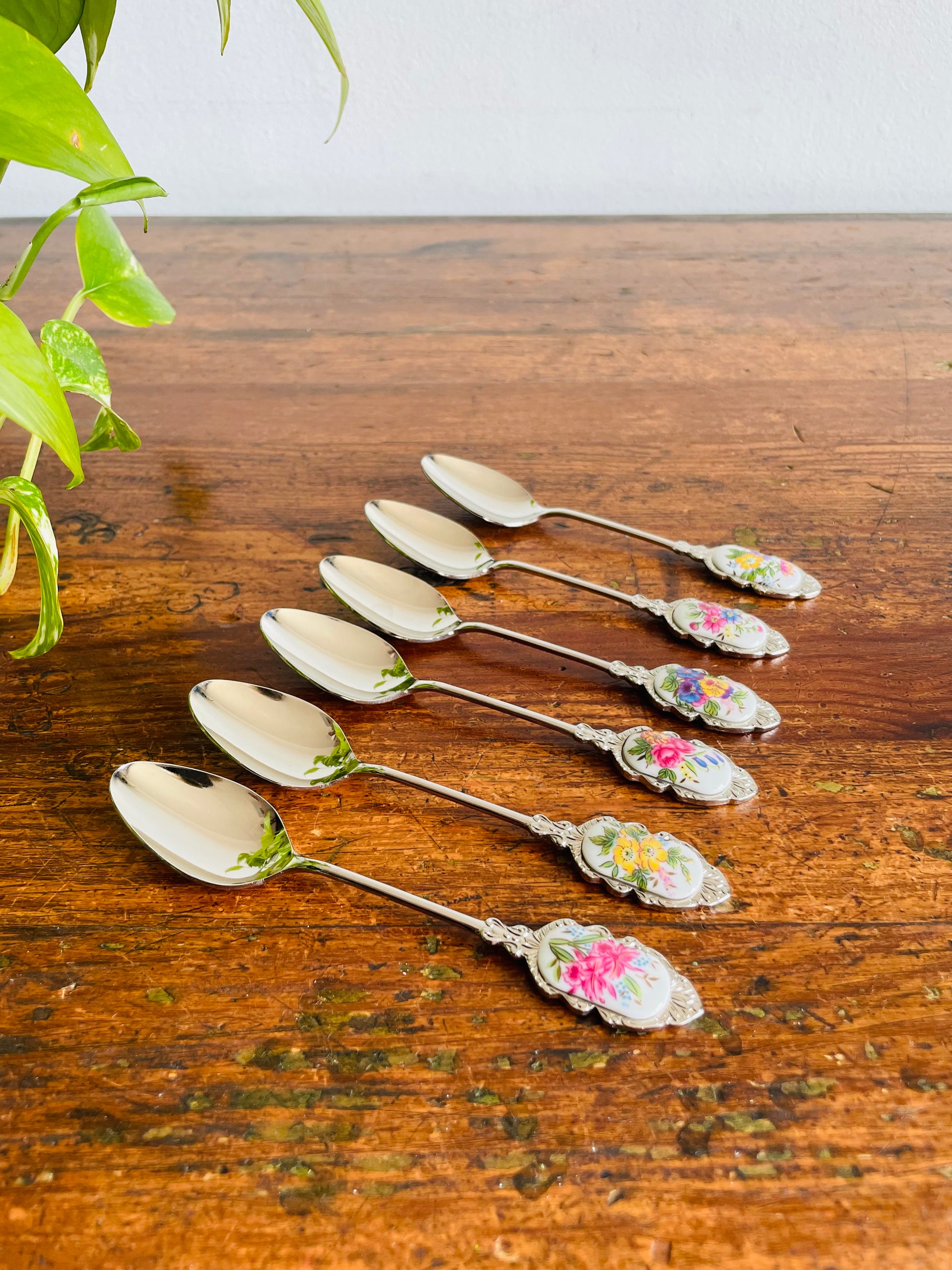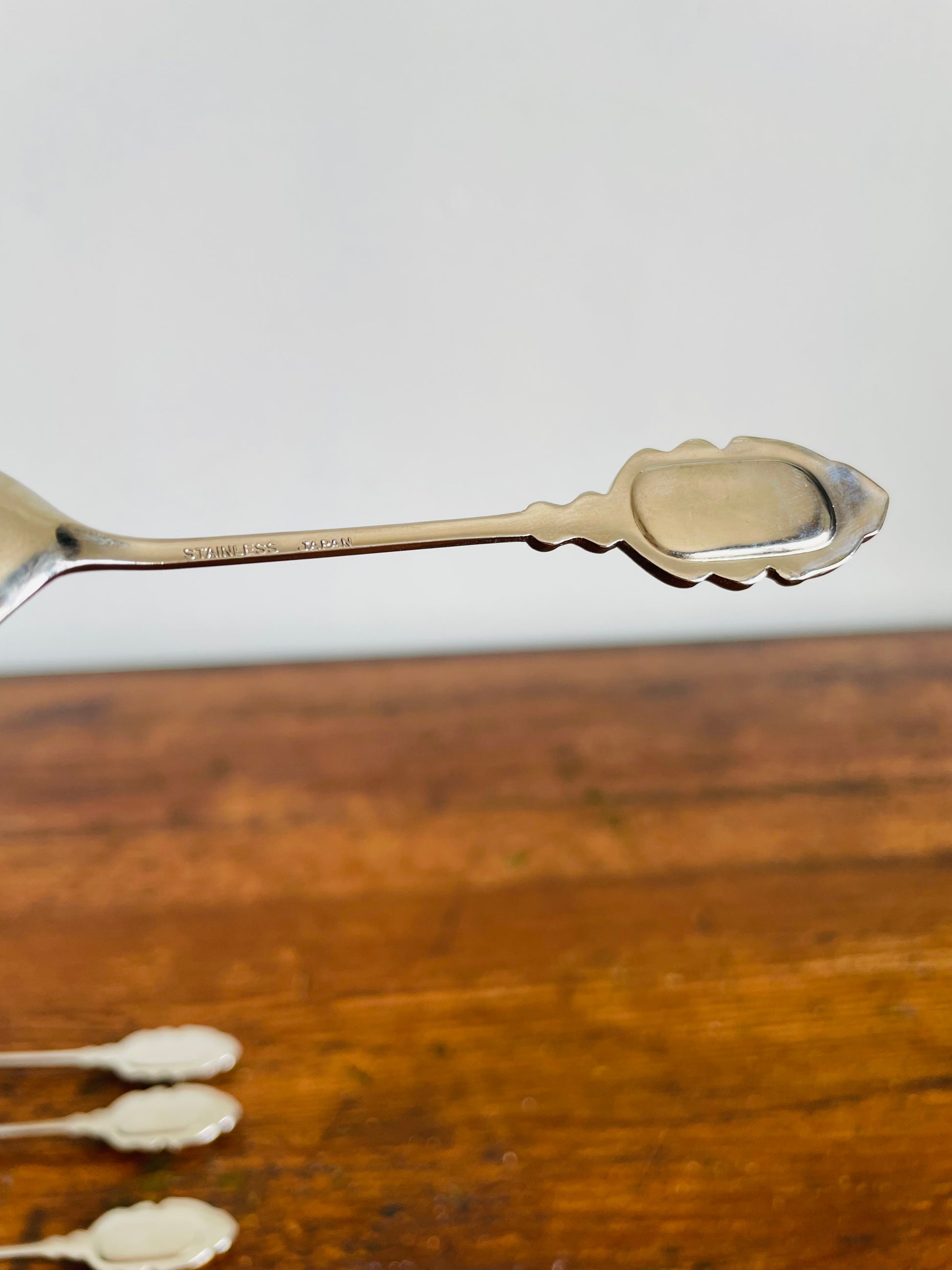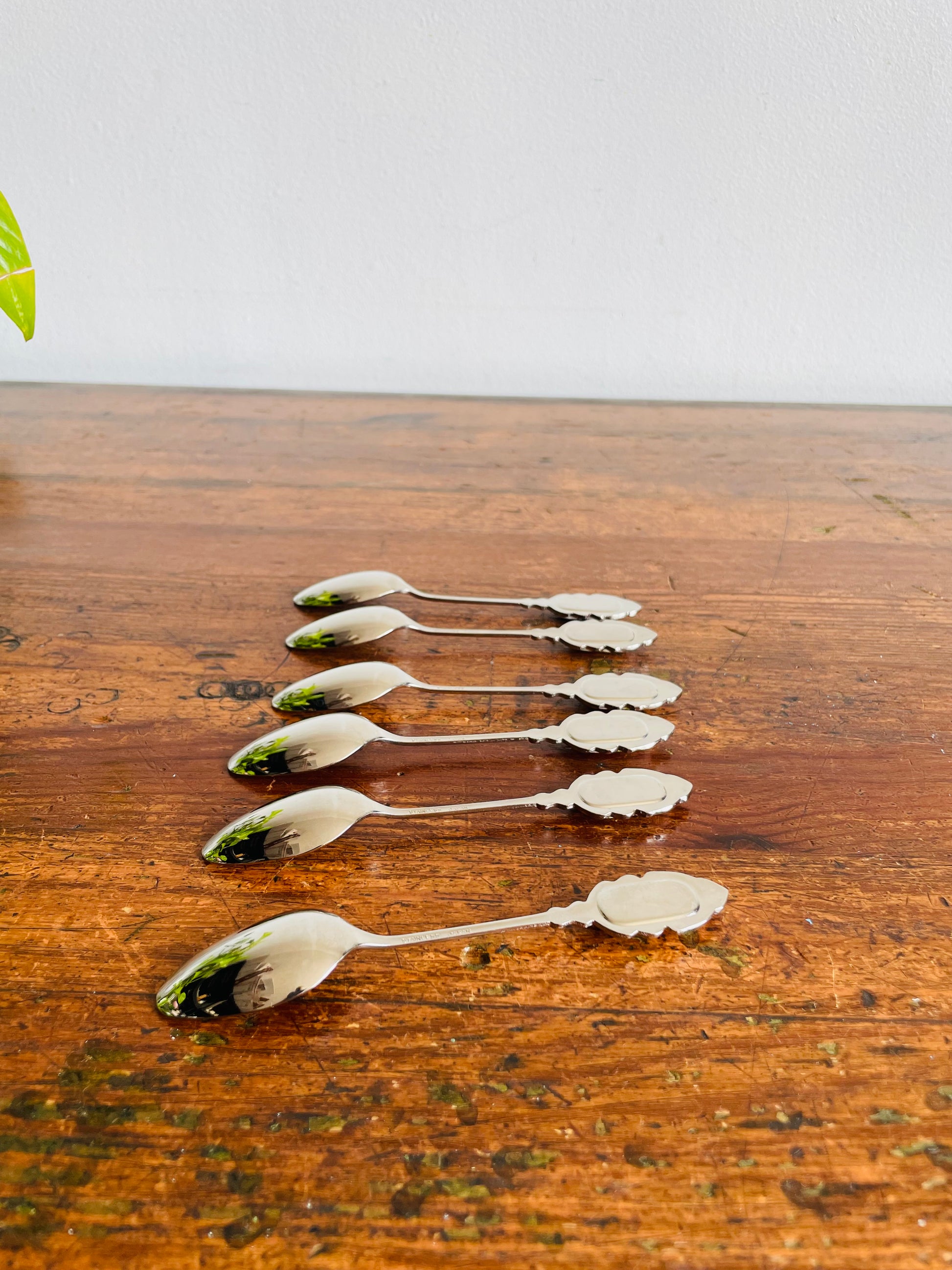 Vintage Collection of Demitasse Mini Stainless Steel Flower Spoons - Set of 6 - Made in Japan