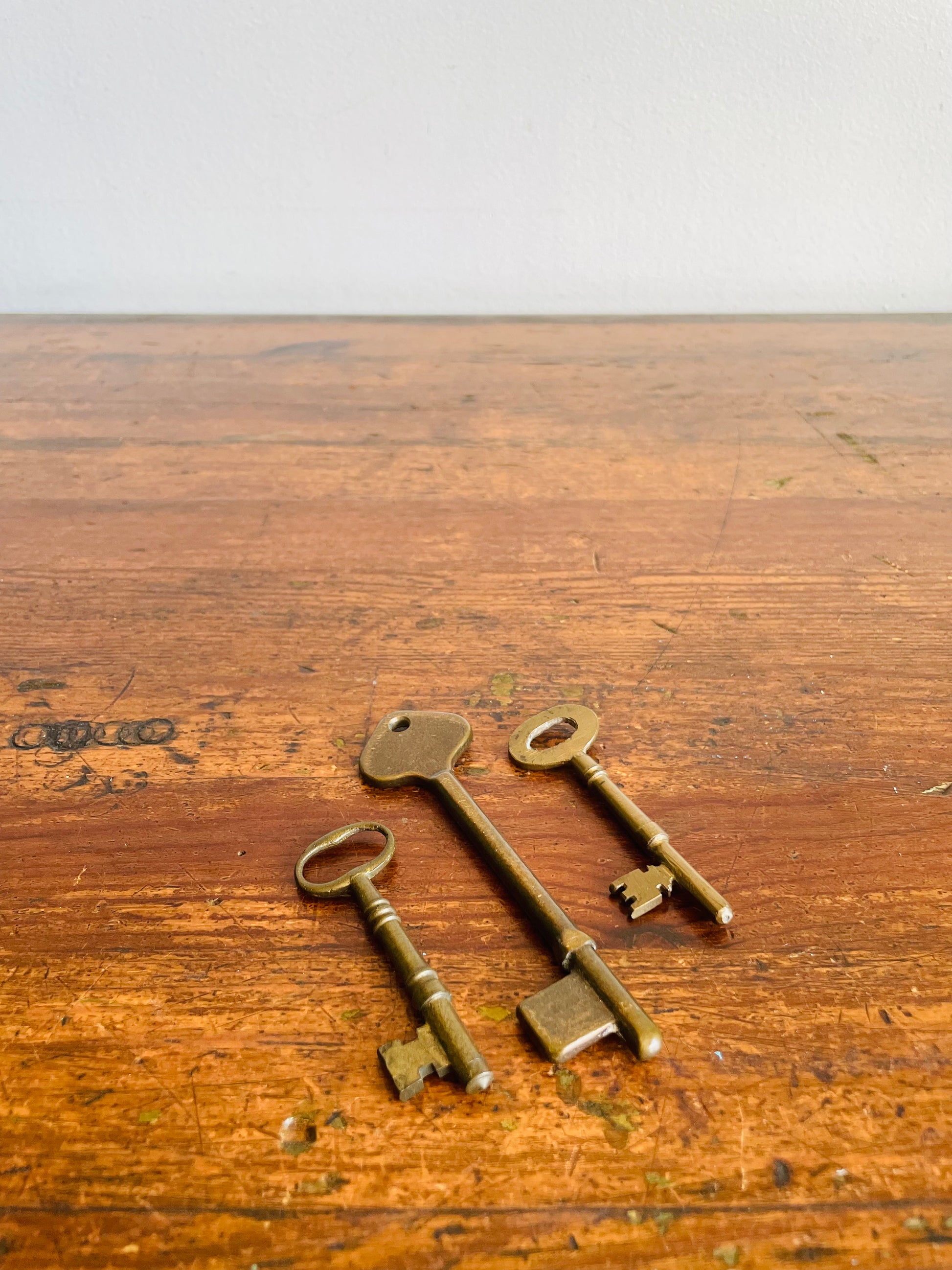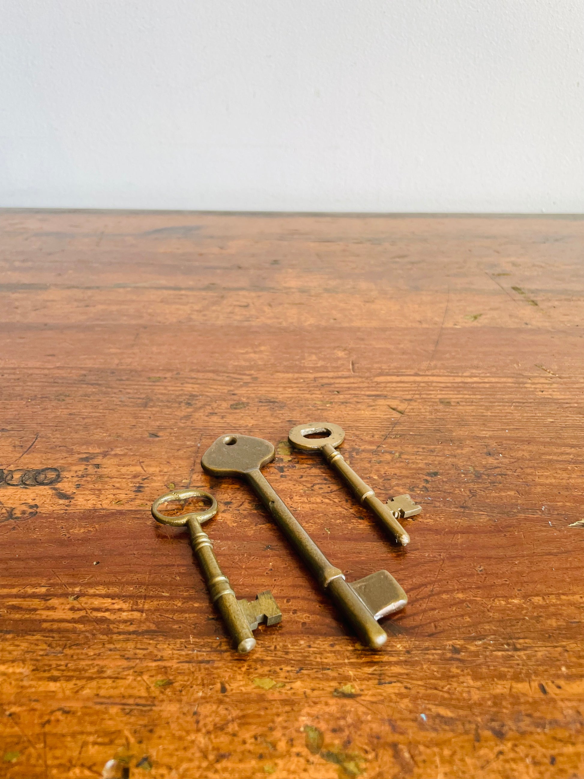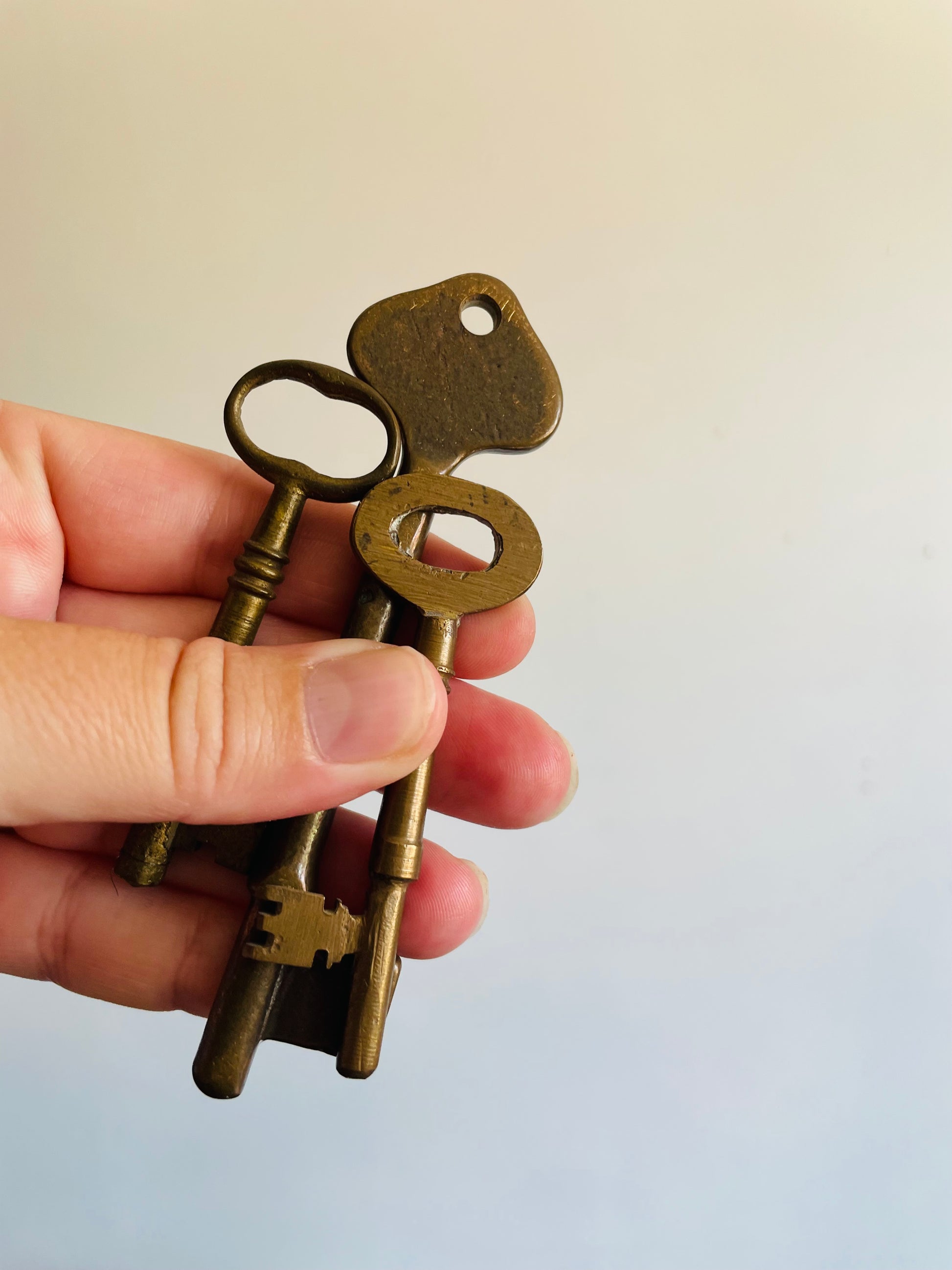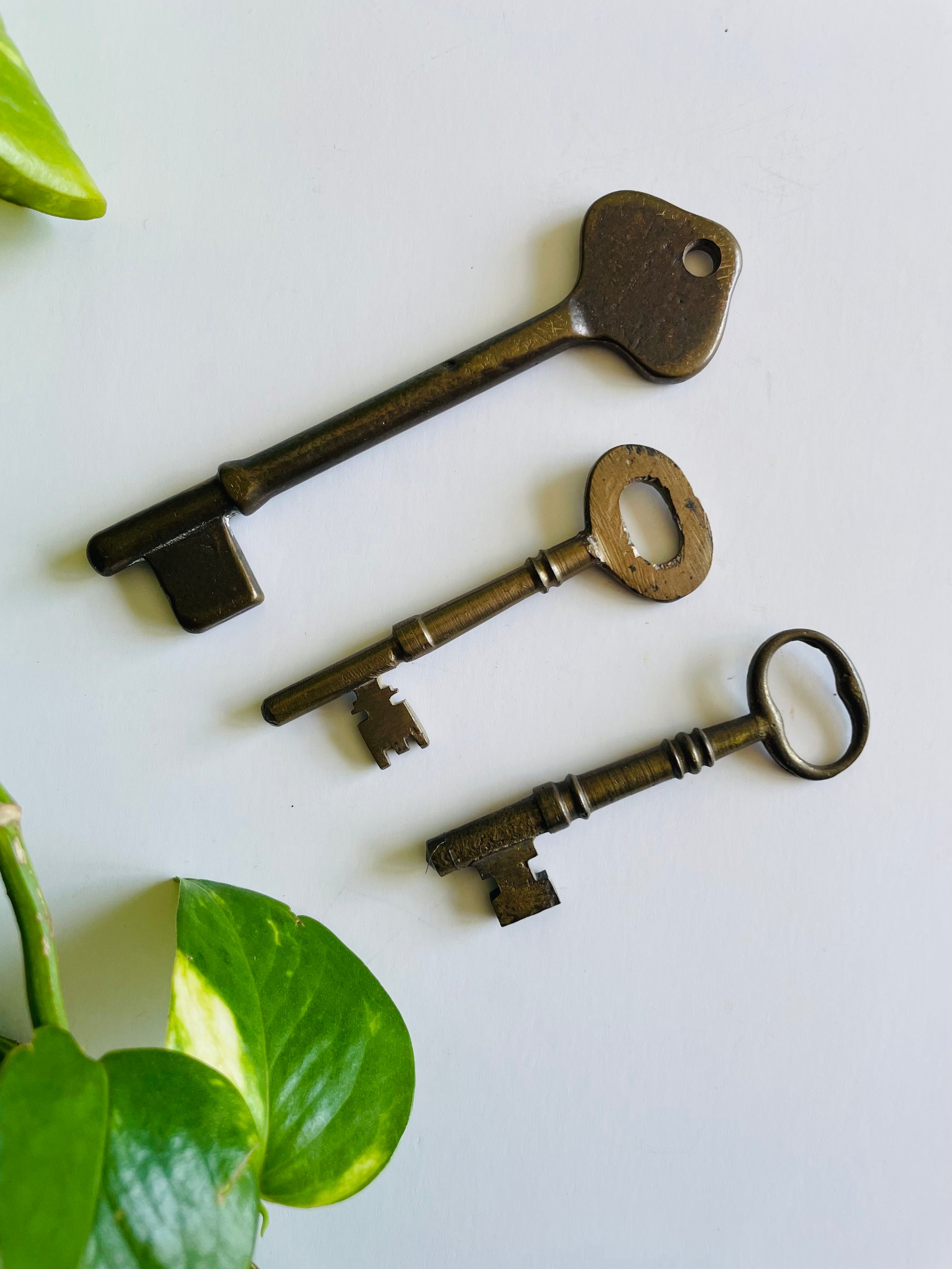 Vintage Collection of Solid Brass Skeleton Keys - Set of 3