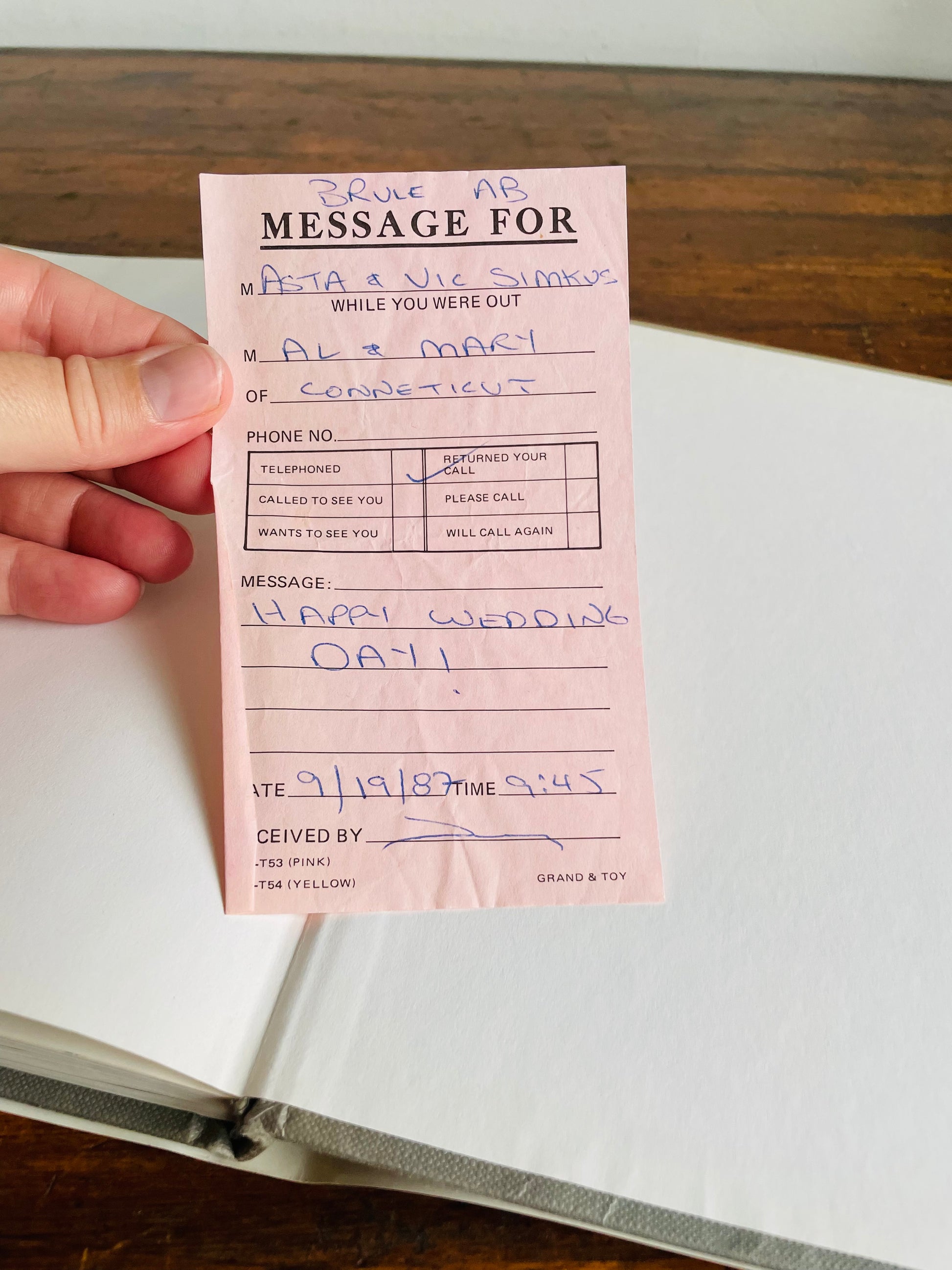 There is a paper that I found in the back of the book that was probably used as a bookmark. I've left it inside as I think it's a cute item to find in a book. See the last photo in the gallery.