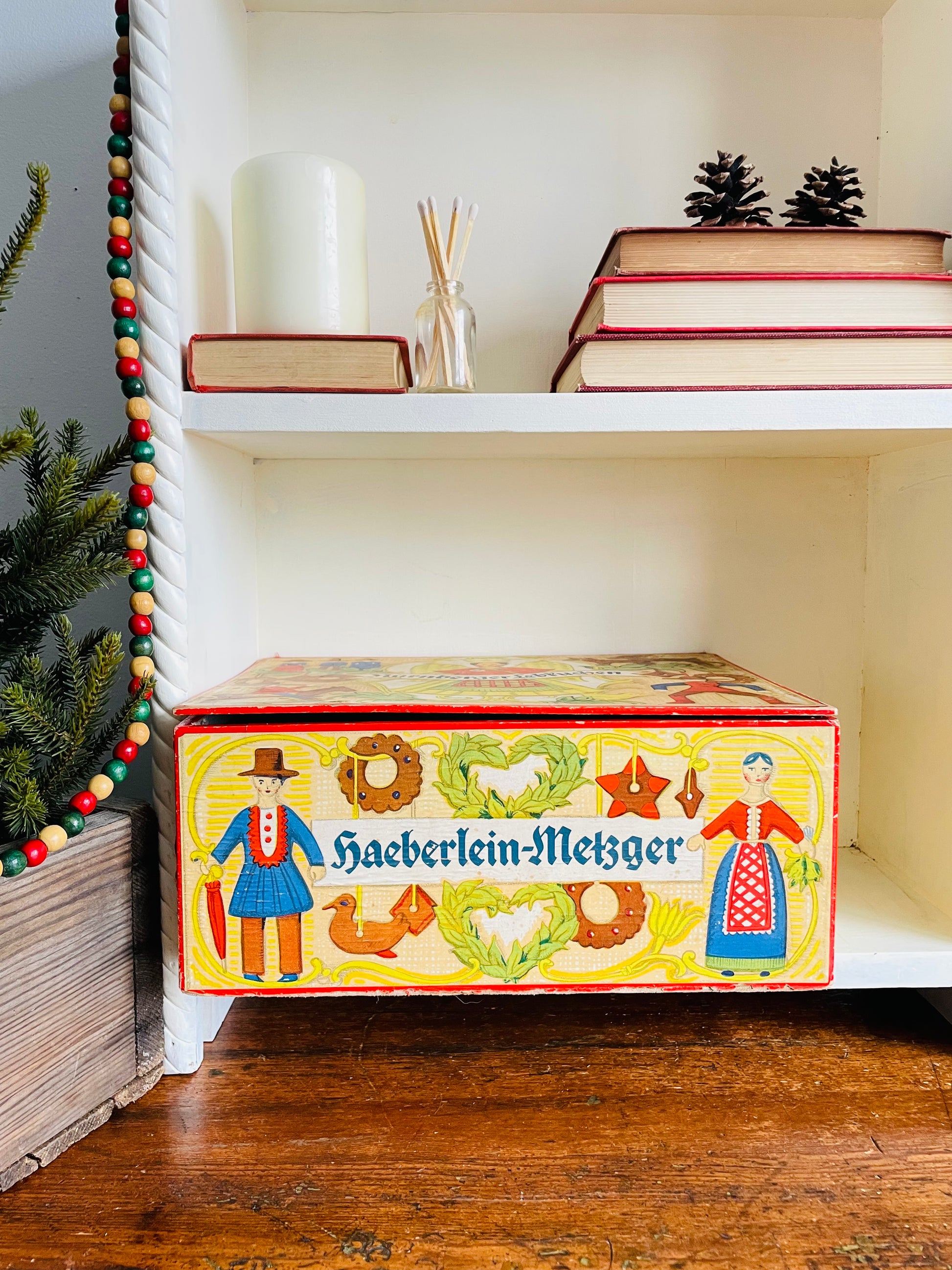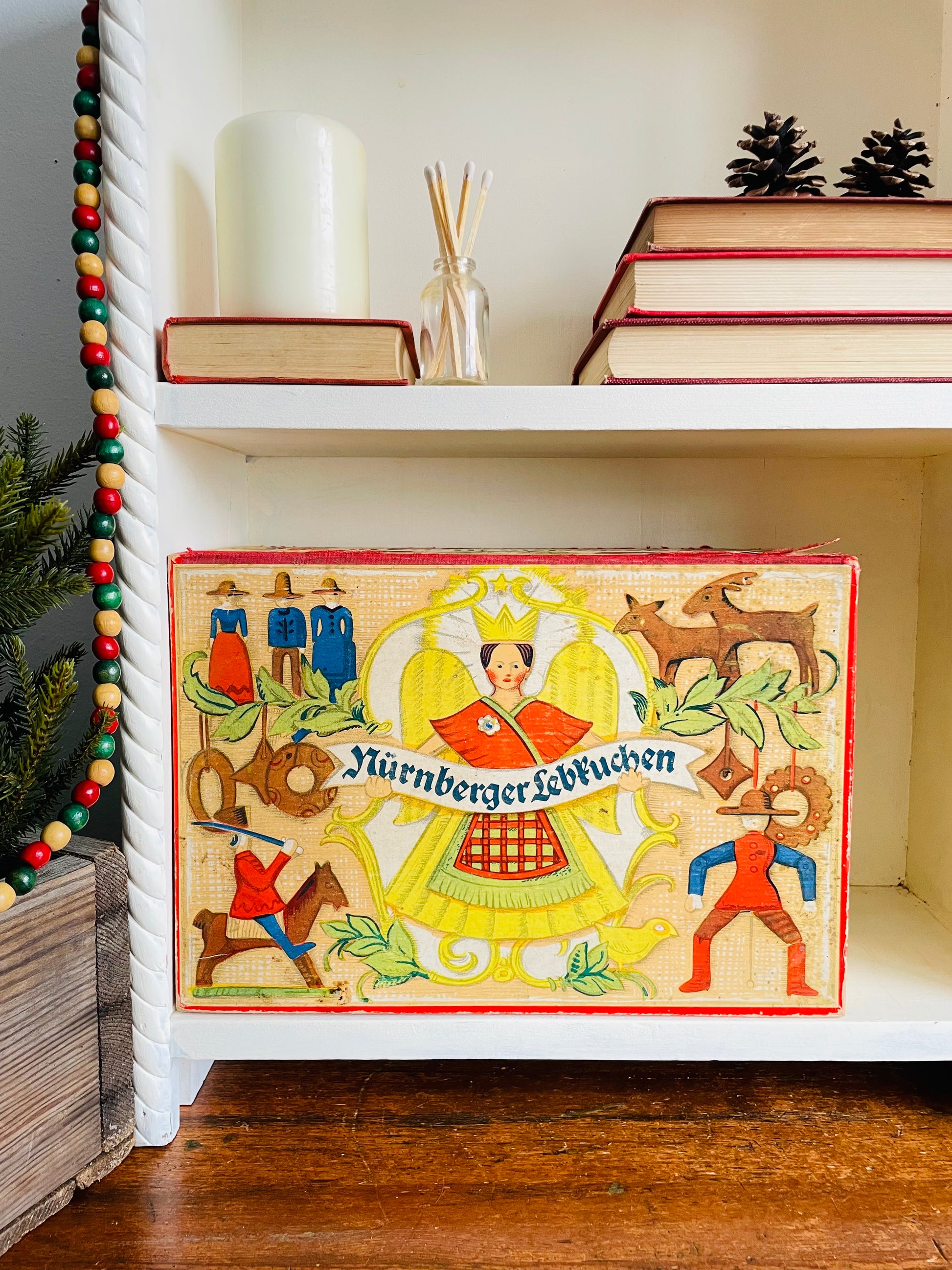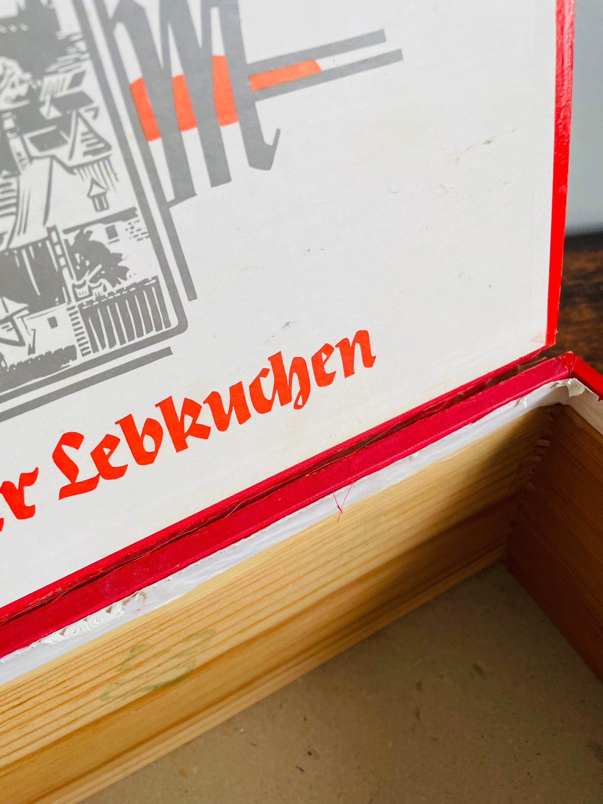 Vintage German Gingerbread Wood Cookie Box with Lid & Bright Illustrations - Haeberlein-Metzger - Nürnberger Lebkuchen