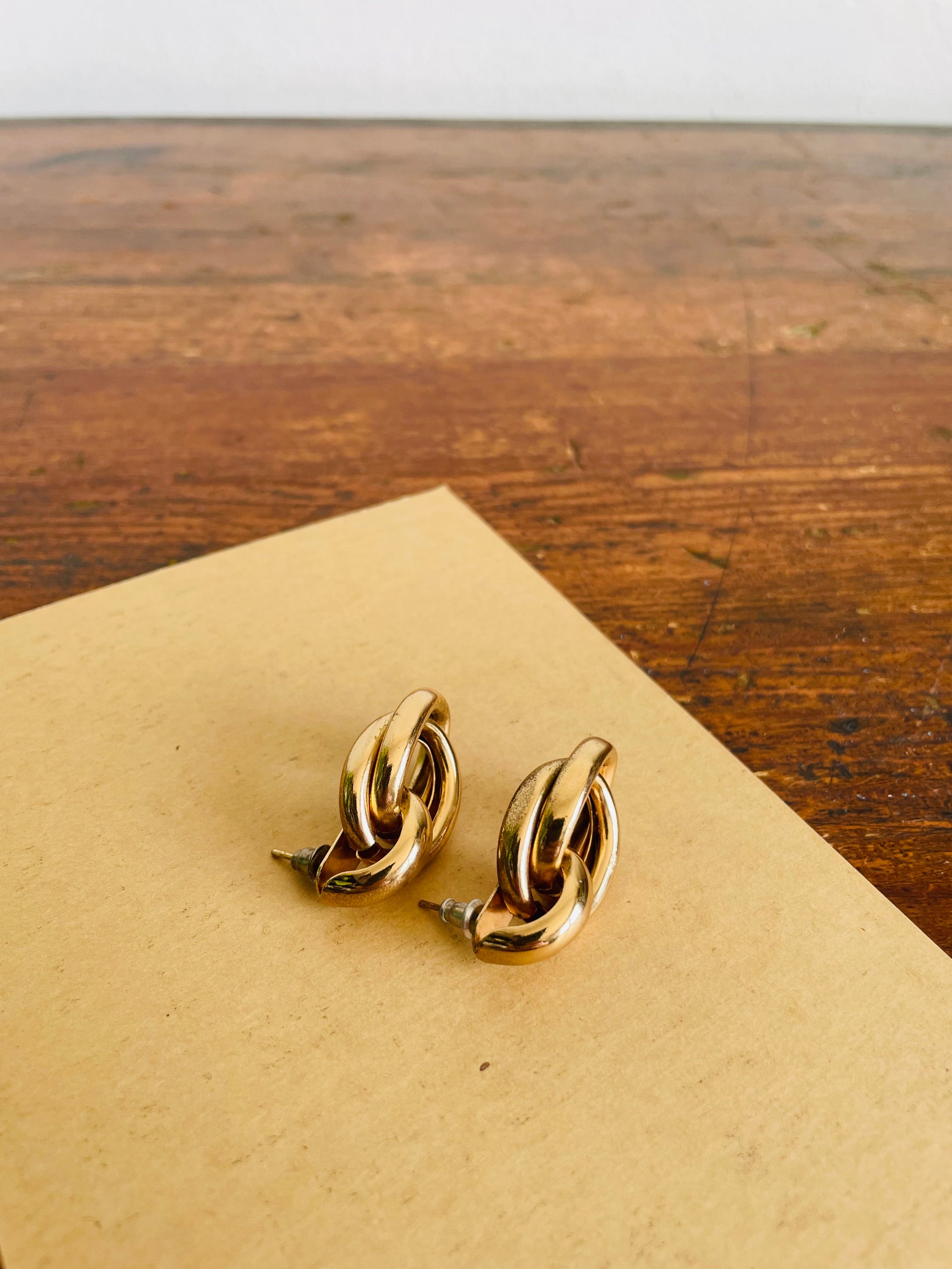 Vintage Gold Tone Knot Earrings - For Pierced Ears