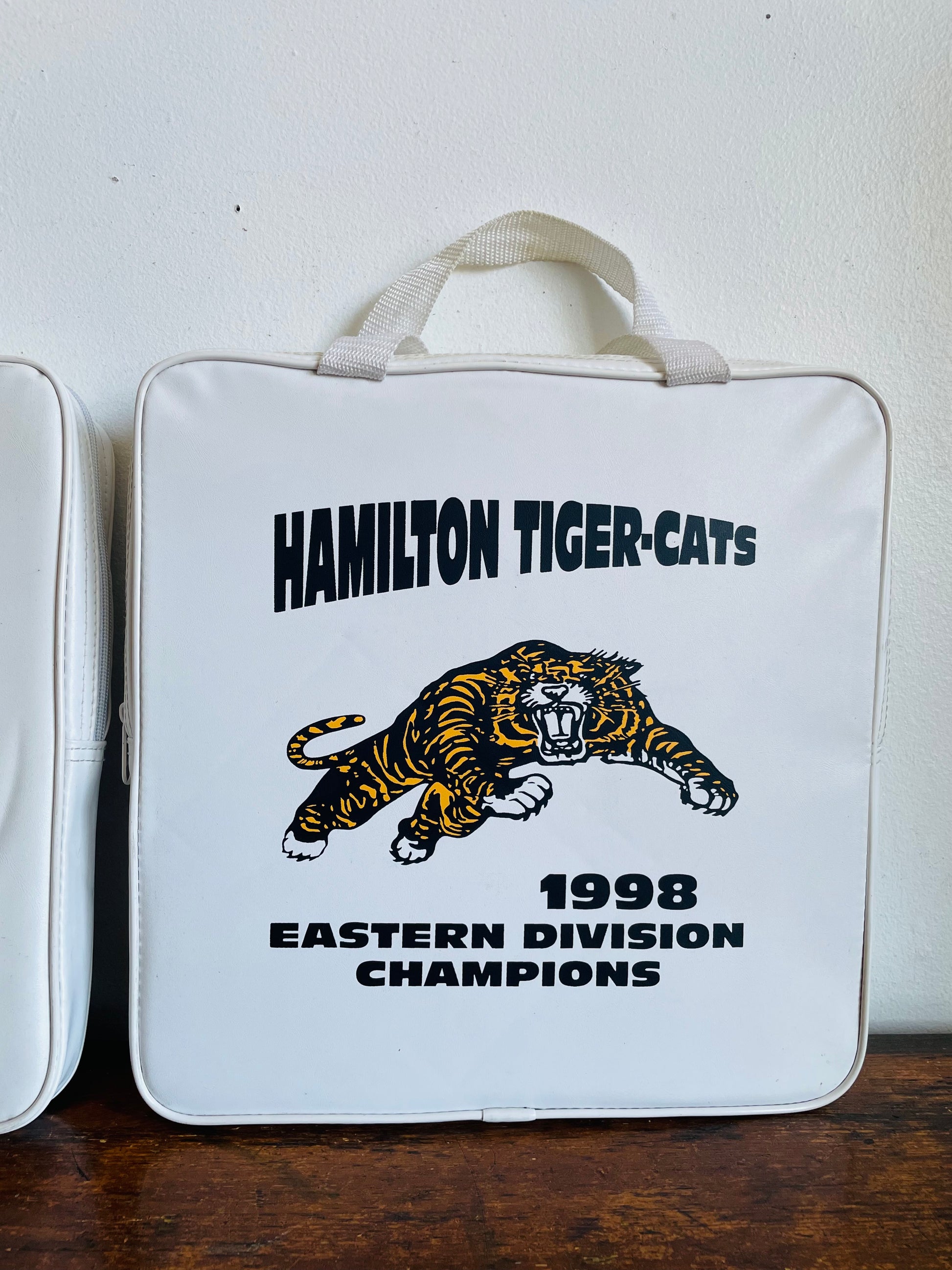 Vintage Hamilton Tiger-Cats Football 1998 Eastern Division Champions Stadium Seat Cushions with Handles - Set of 2