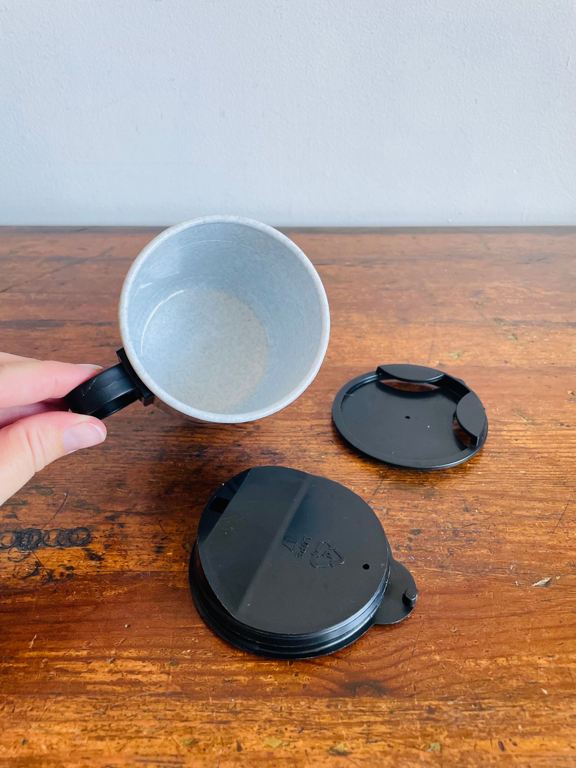 The mug can be removed from the holder base and the holder base can be stuck/mounted to your dashboard or another surface to hold the mug securely. The sticker on the base is still new and hasn't been opened/peeled.