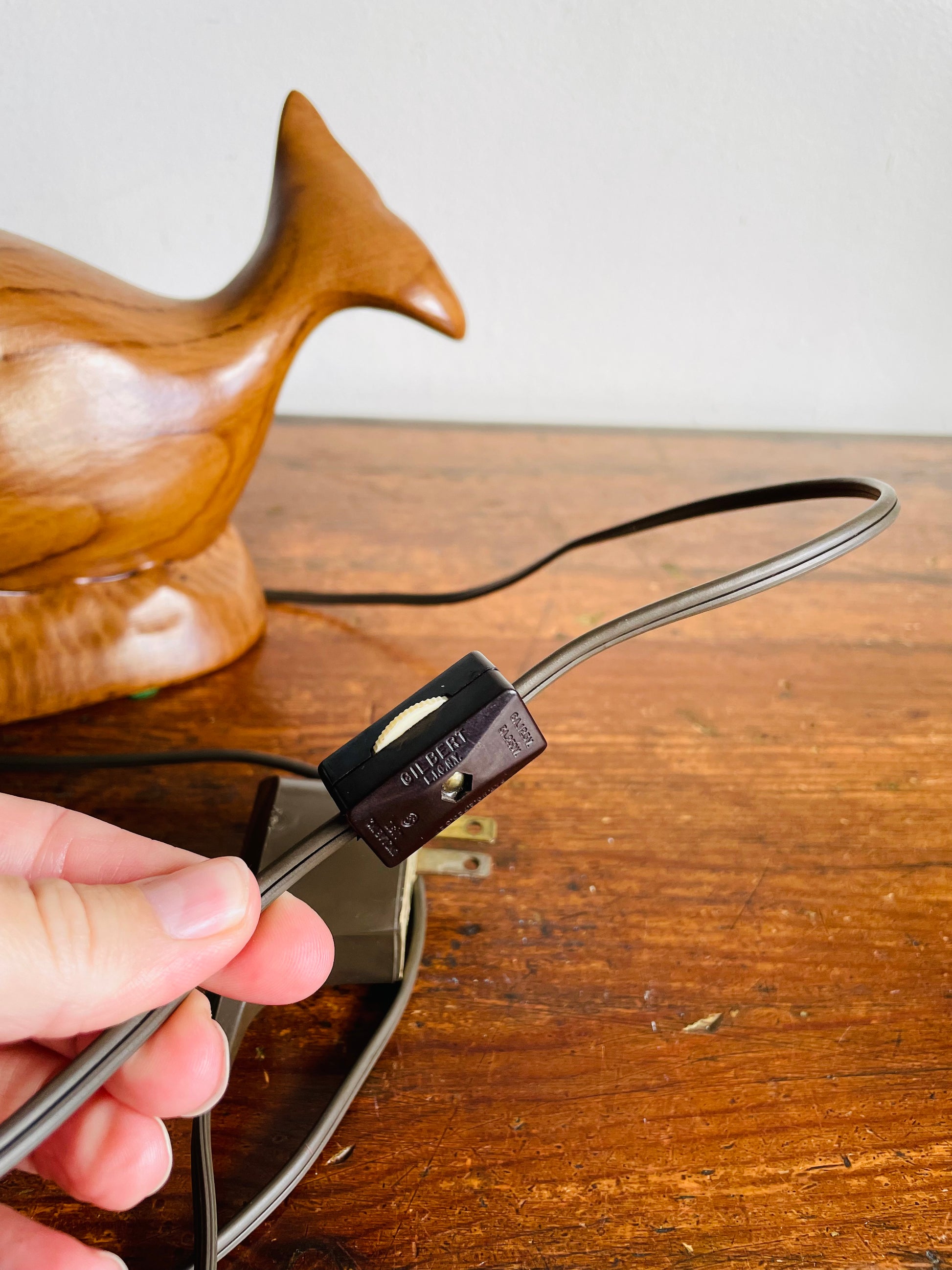 The cord plugs in and there is a toggle switch to turn the lamp on and off.