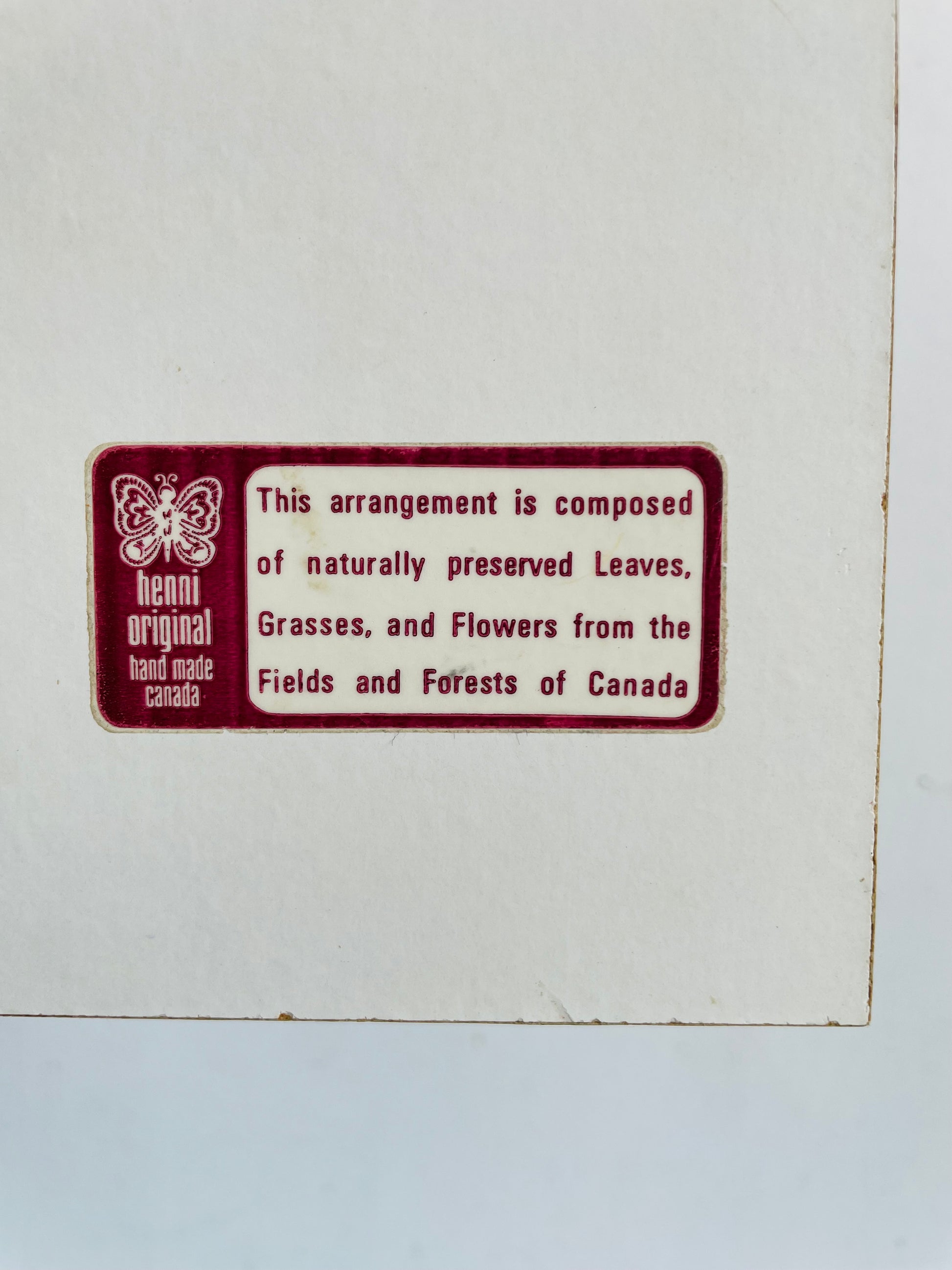 Henni Original Hand made in Canada: This arrangement is composed of naturally preserved leaves, grasses, and flowers from the fields and forests of Canada.