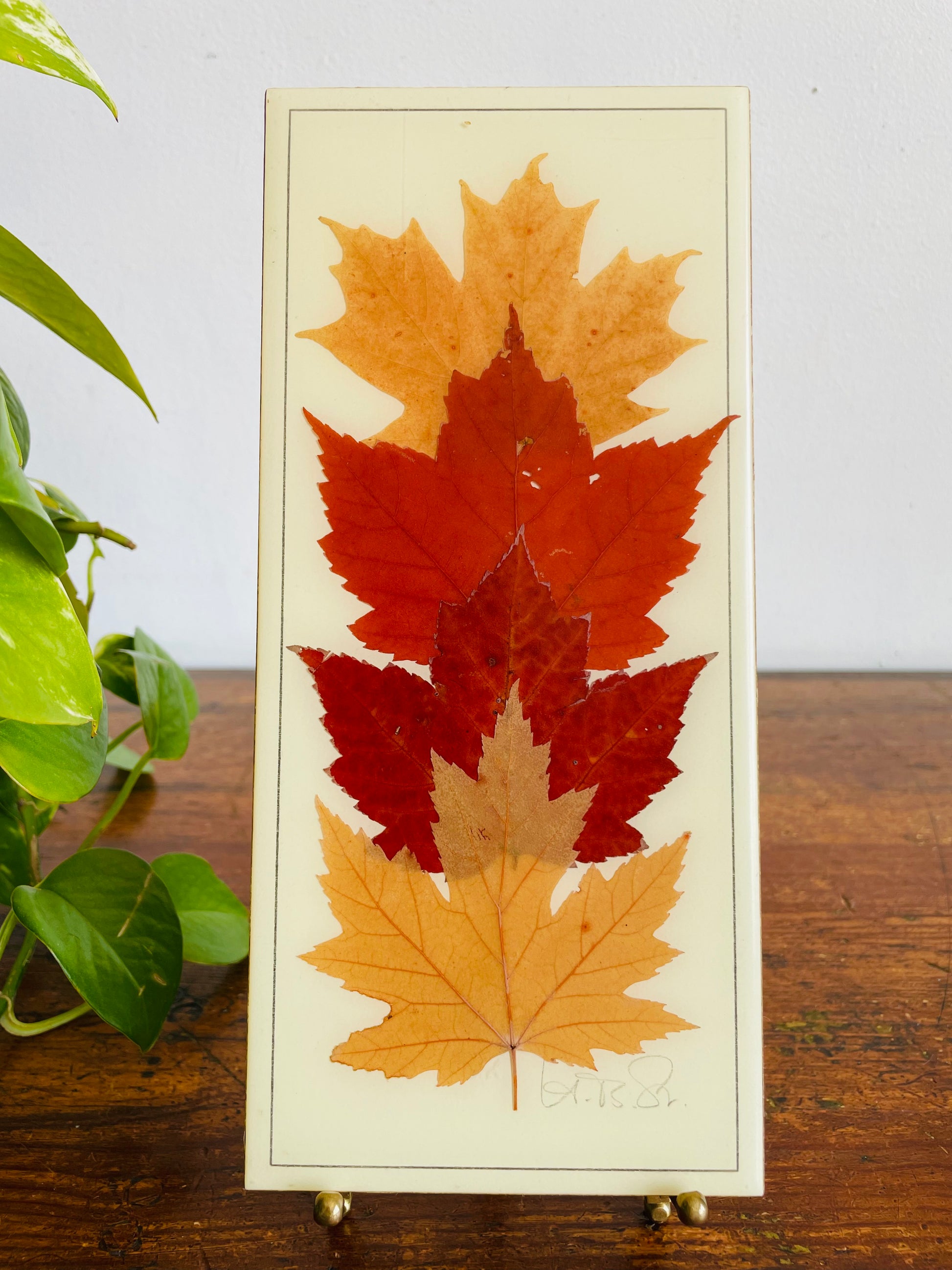 Vintage Henni Original Naturally Preserved Canadian Maple Leaves in Resin Picture - Artist Signed - Handmade in Canada