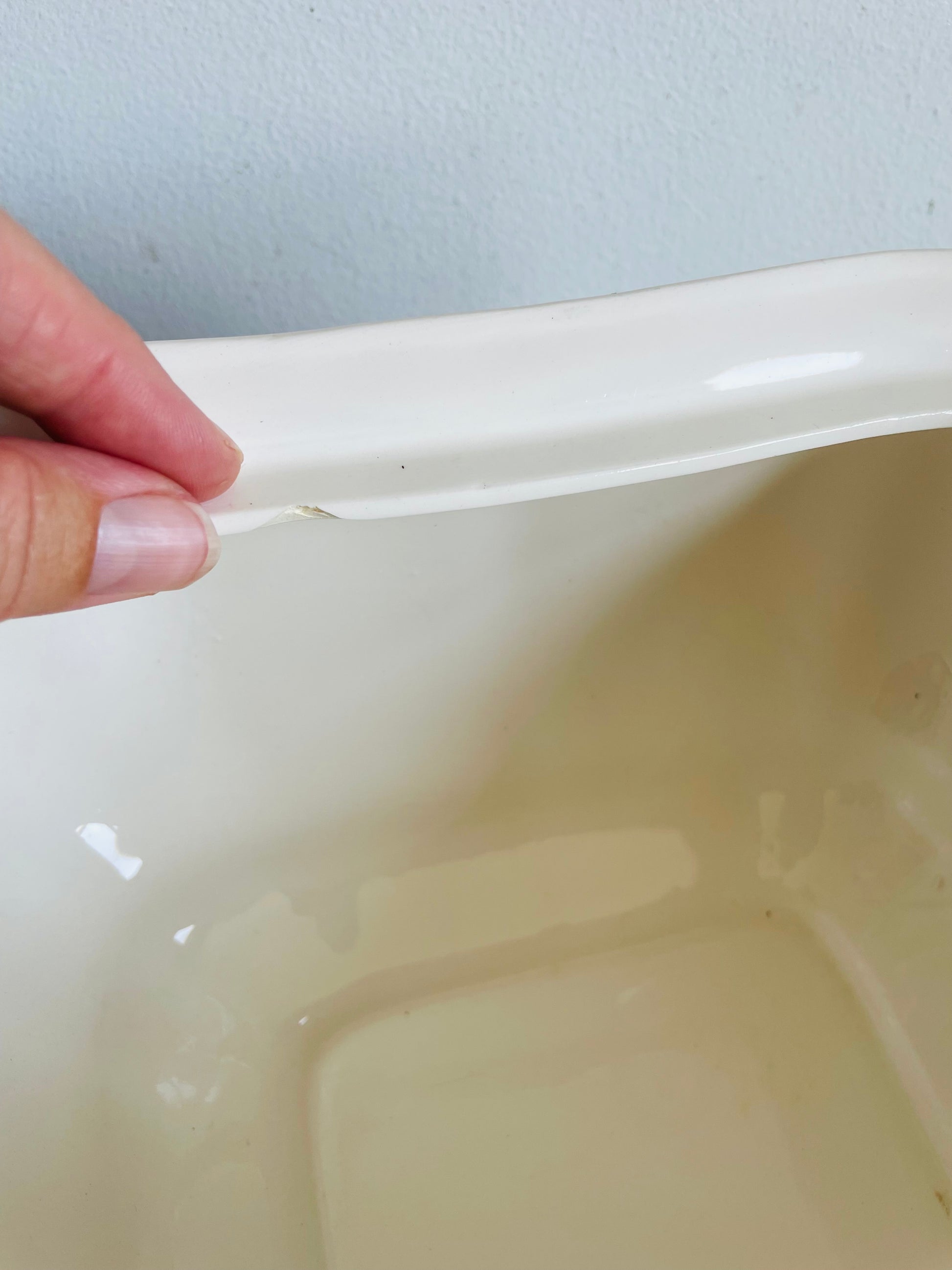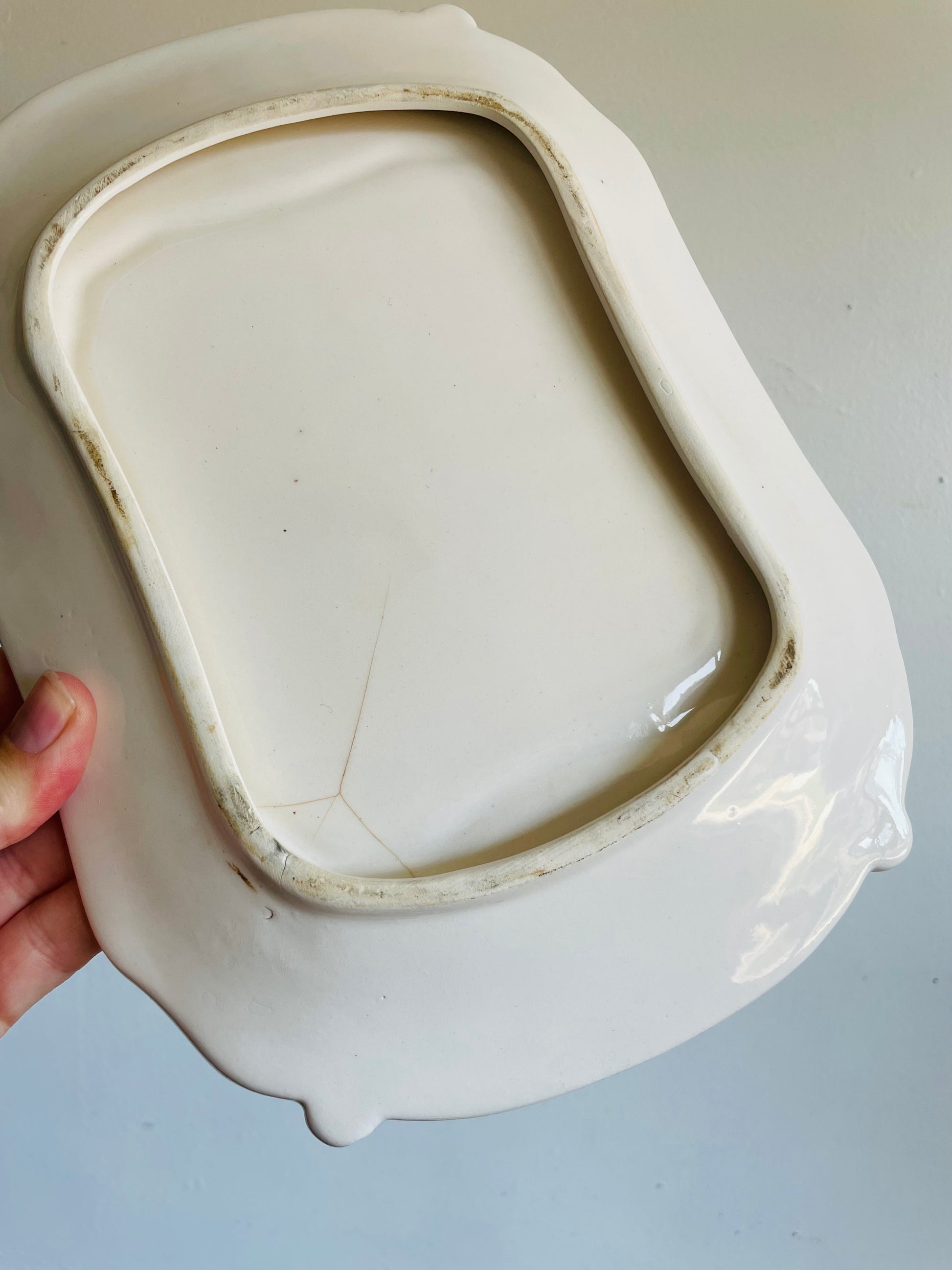 Base dish plate: 10.6” by 7.75” Note: Some crazing lines and thin fractures