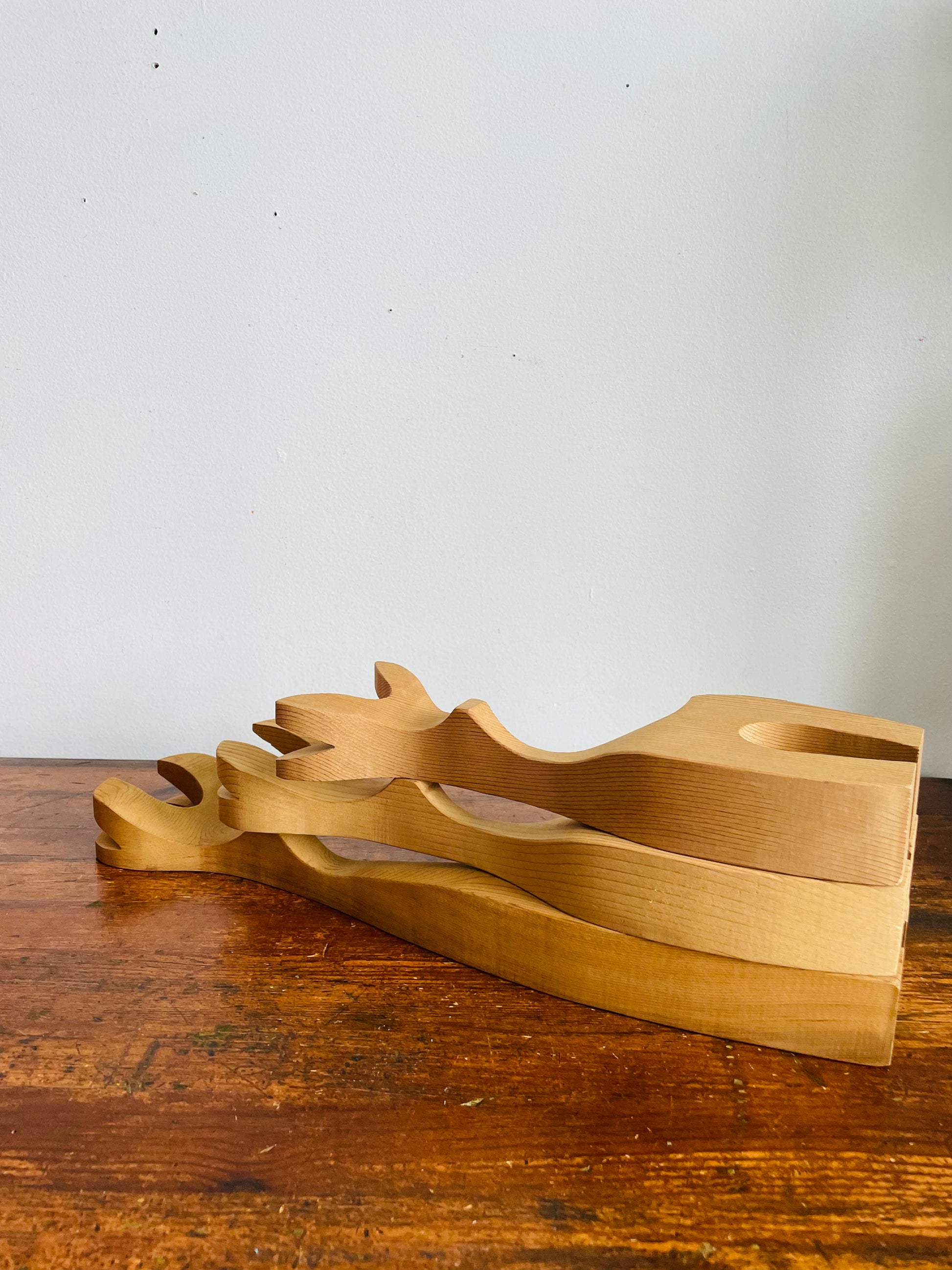 Vintage Mid-Century Modernist-Style Carved Wood Reindeer Sculptures - Set of 3