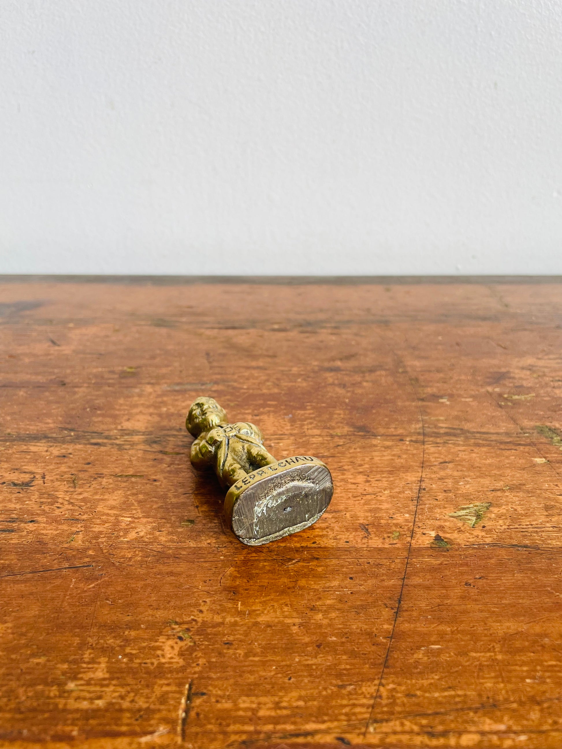Vintage Mini Solid Brass Irish Leprechaun Statue Figurine