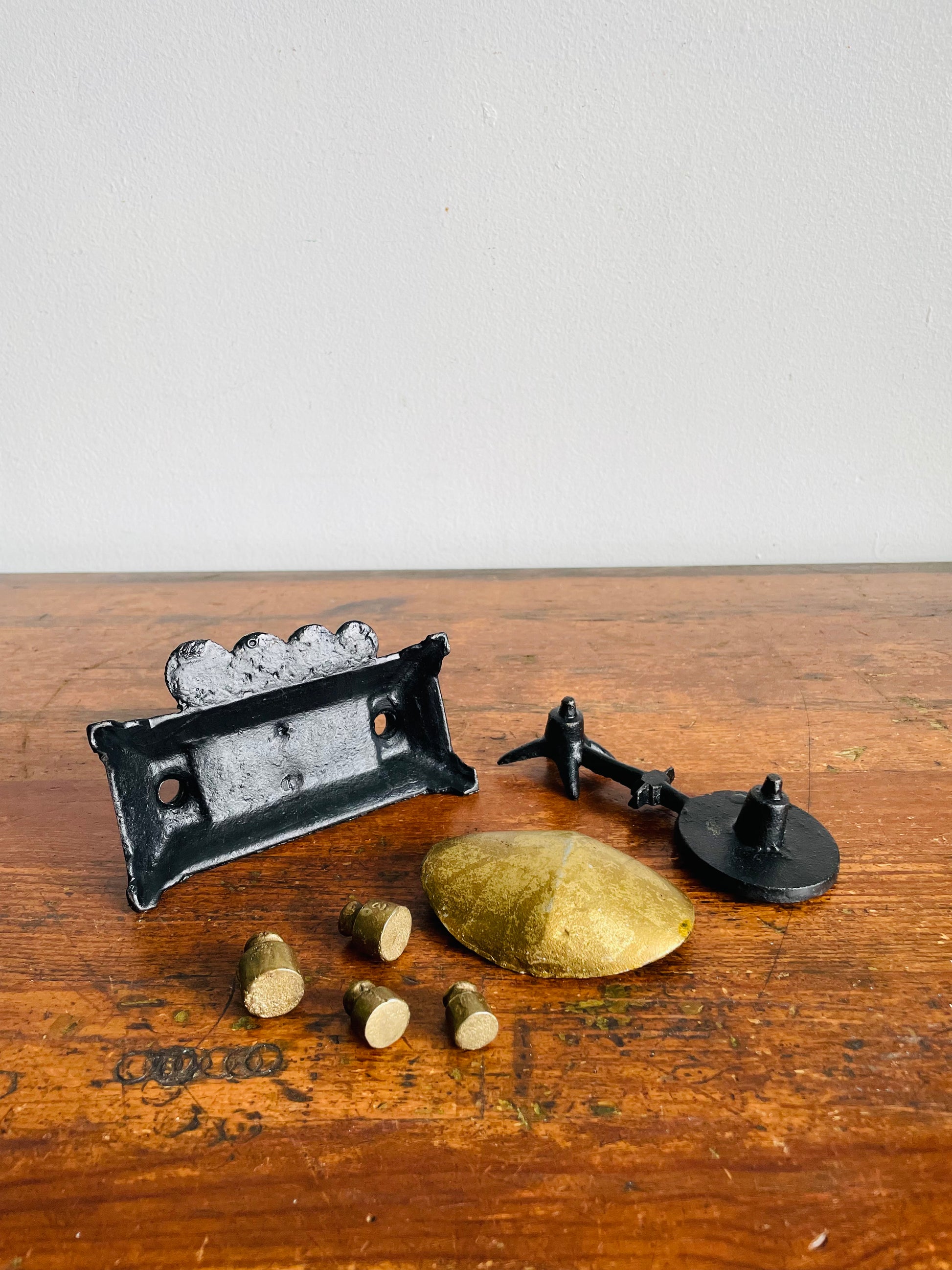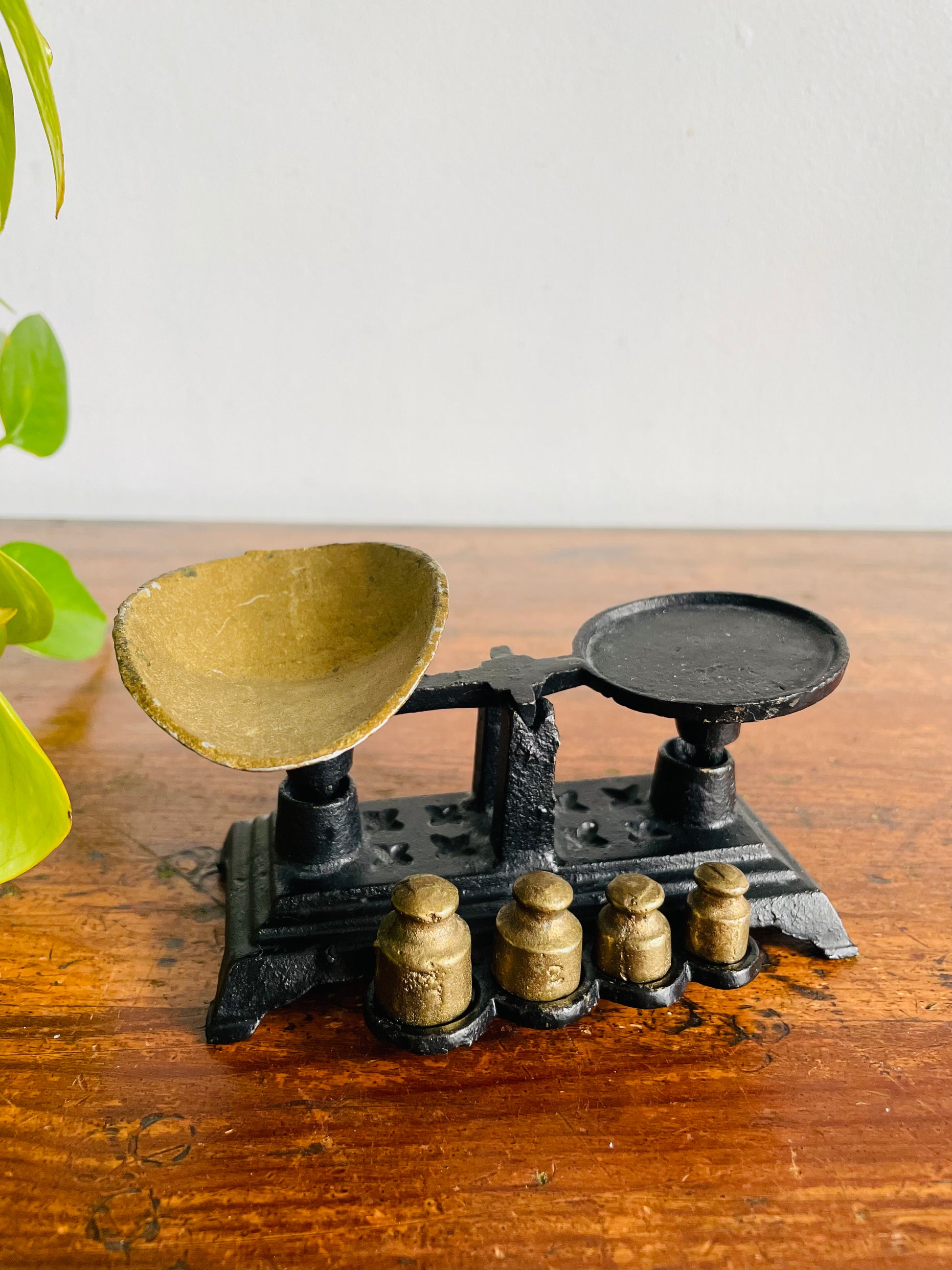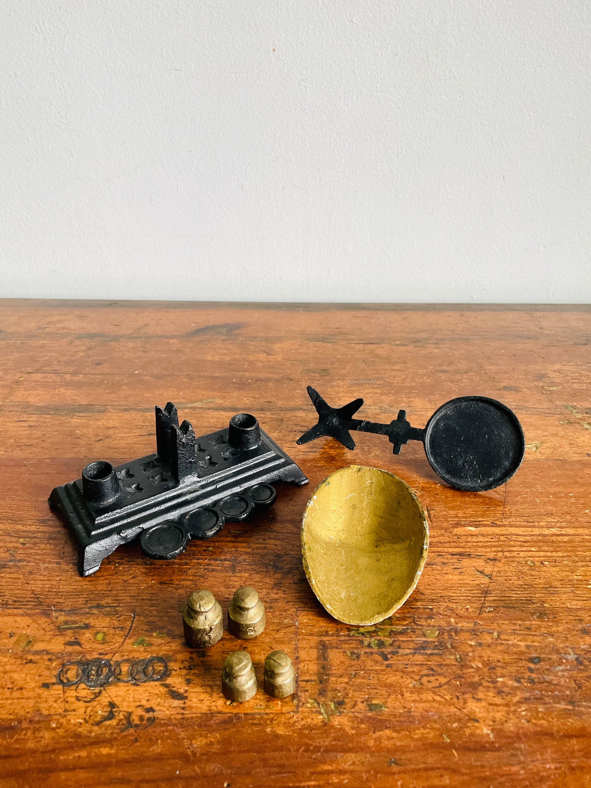 Vintage Solid & Heavy Miniature Cast Iron Balance Scale with Weights