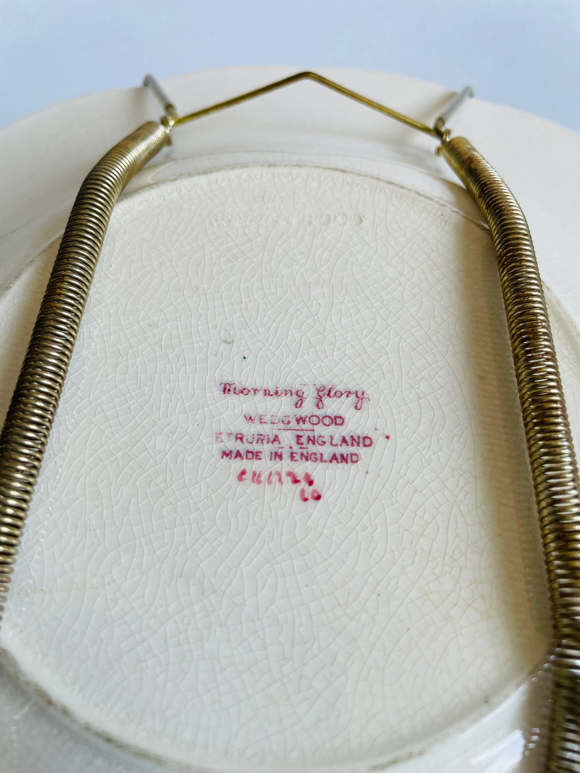 Vintage 1940s Morning Glory Wedgwood Etruria England Bowl Dish with Flower Design - Includes Wall Plate Hanger but Could Use Without