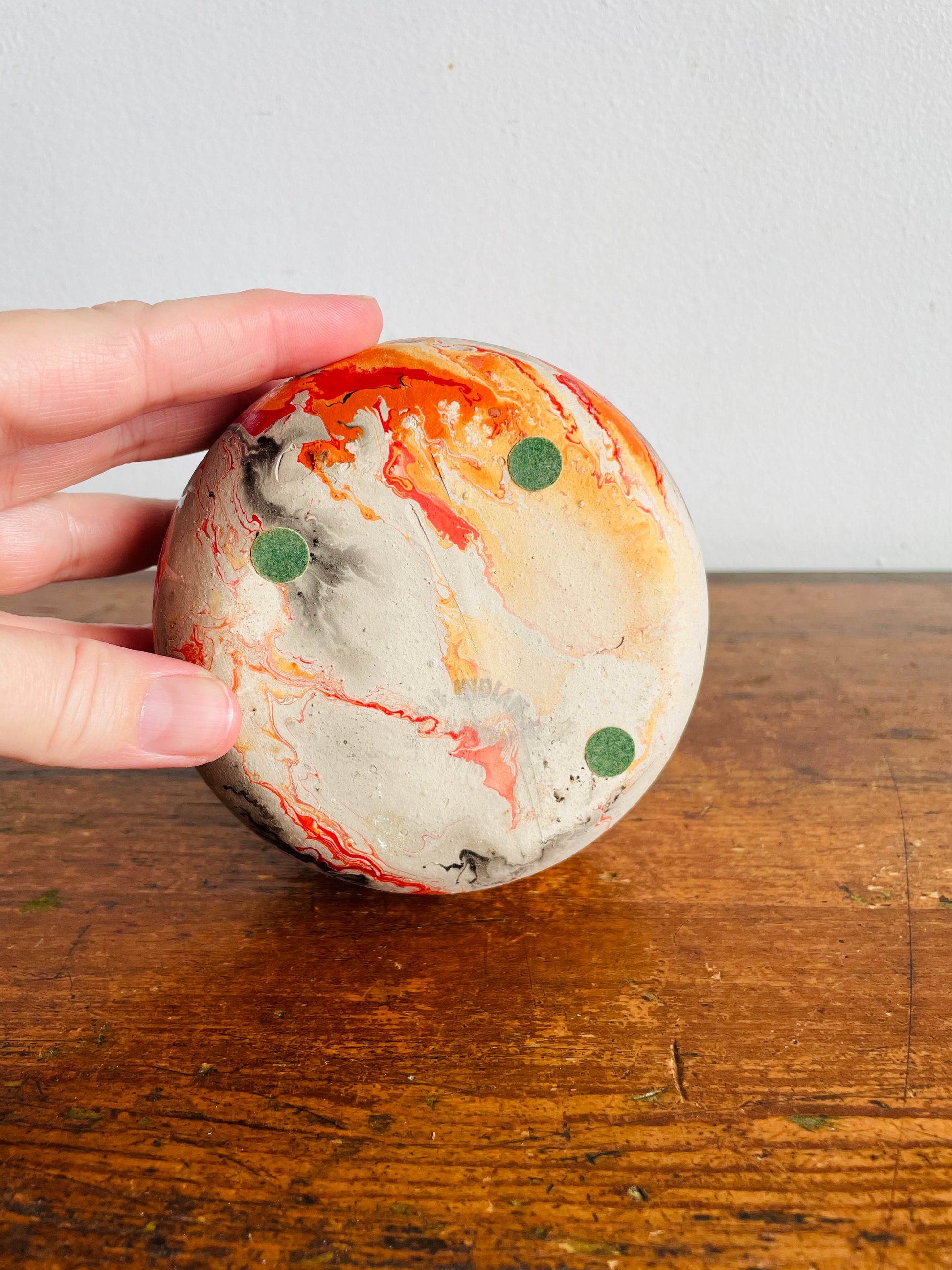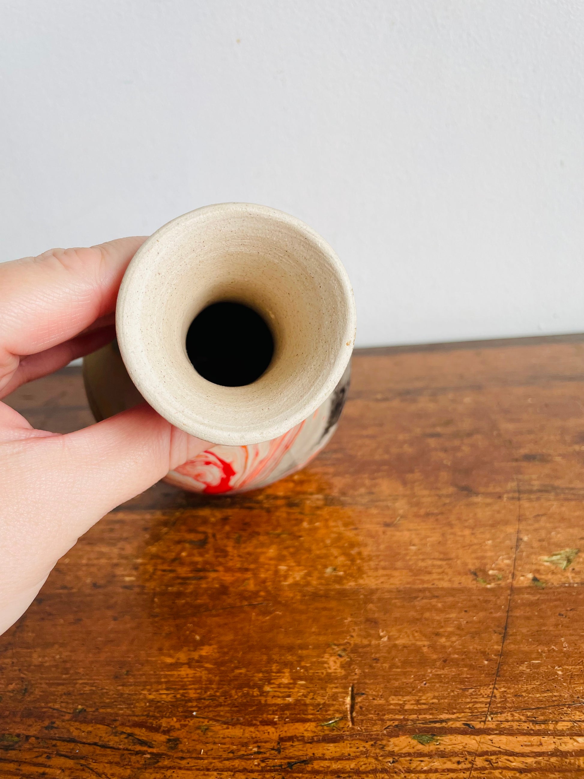 Vintage Nemadji Clay Pottery Vase - Red, Orange & Black Marbled Swirl Pattern - 6.5” Tall