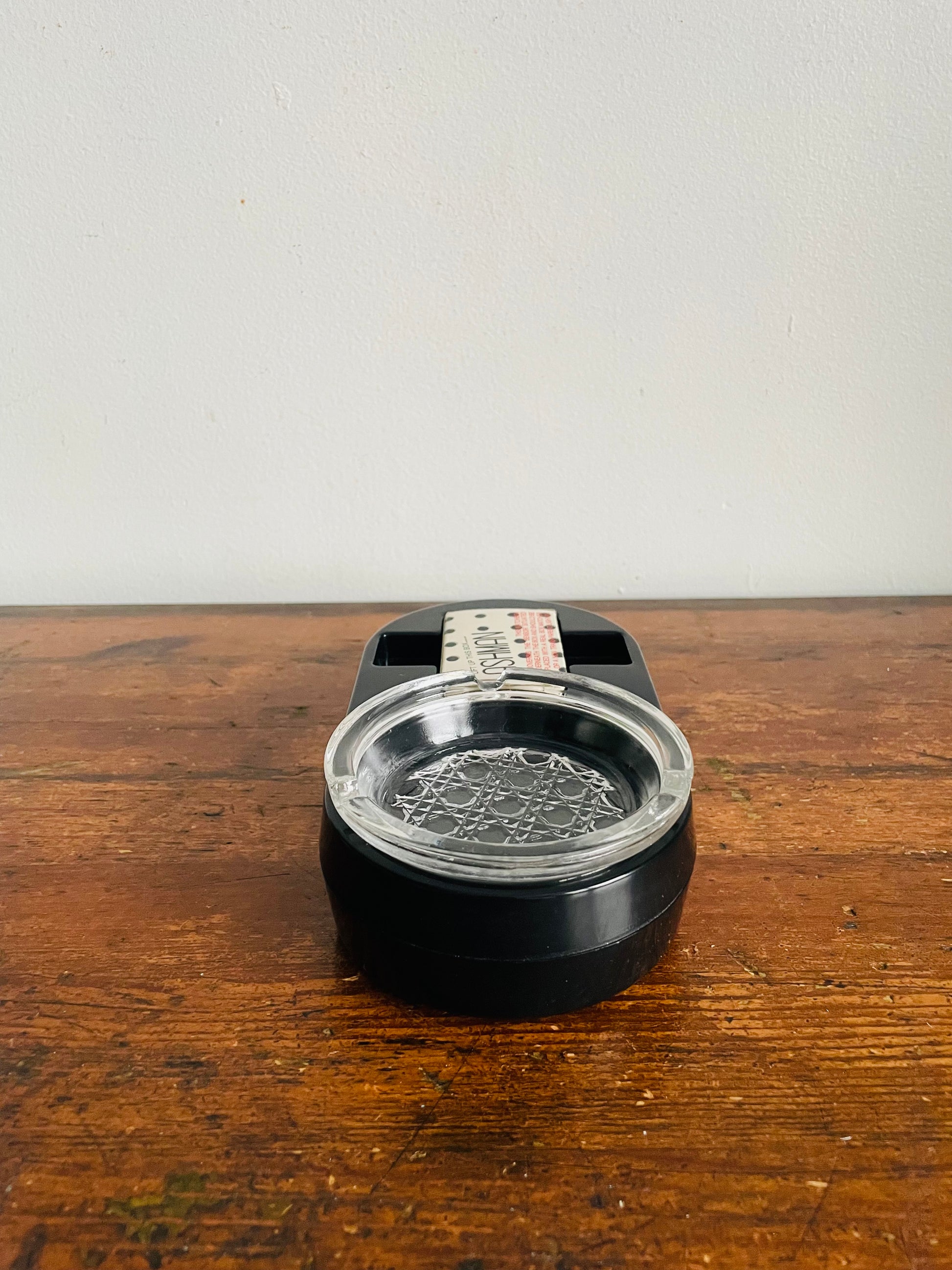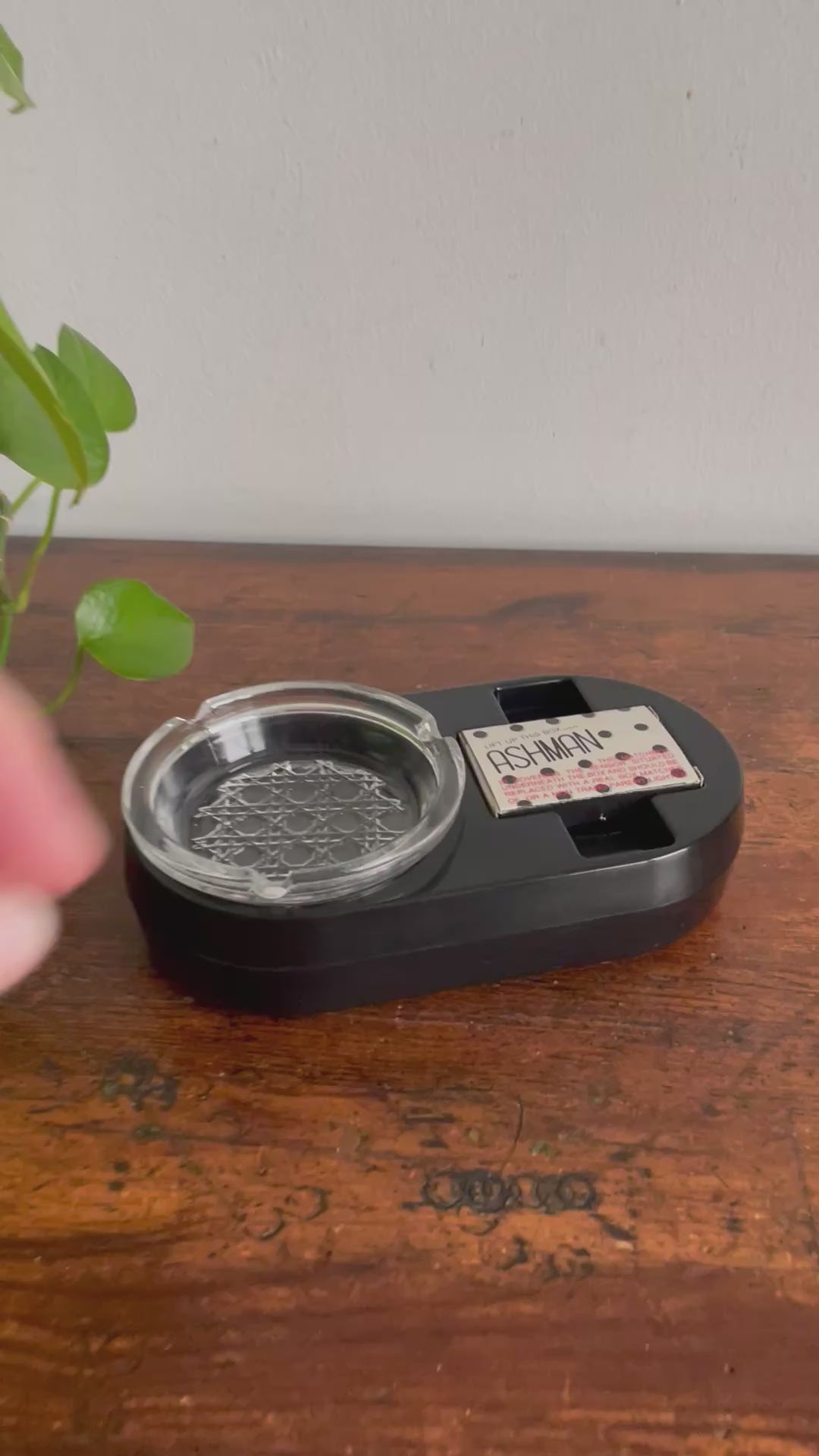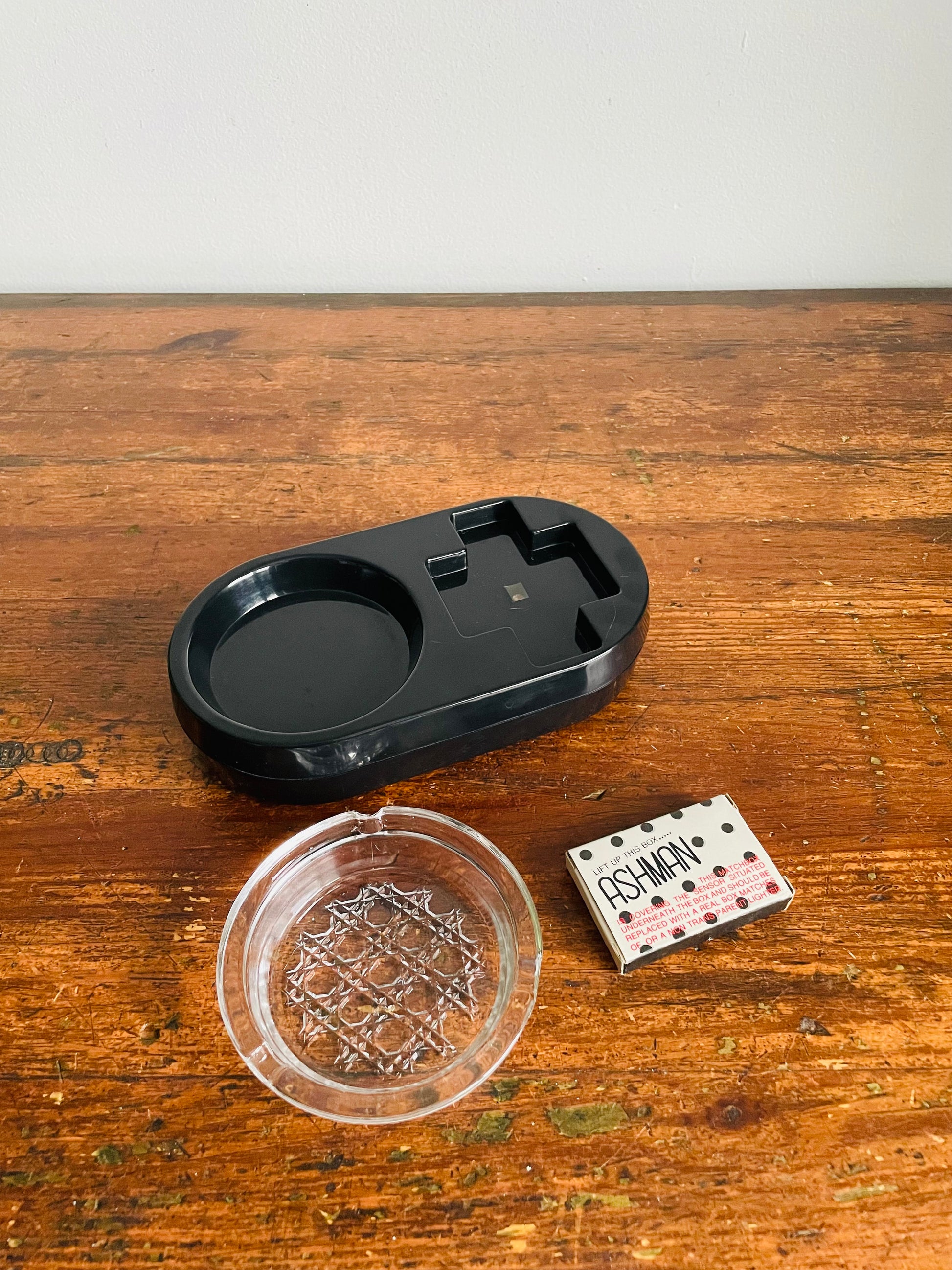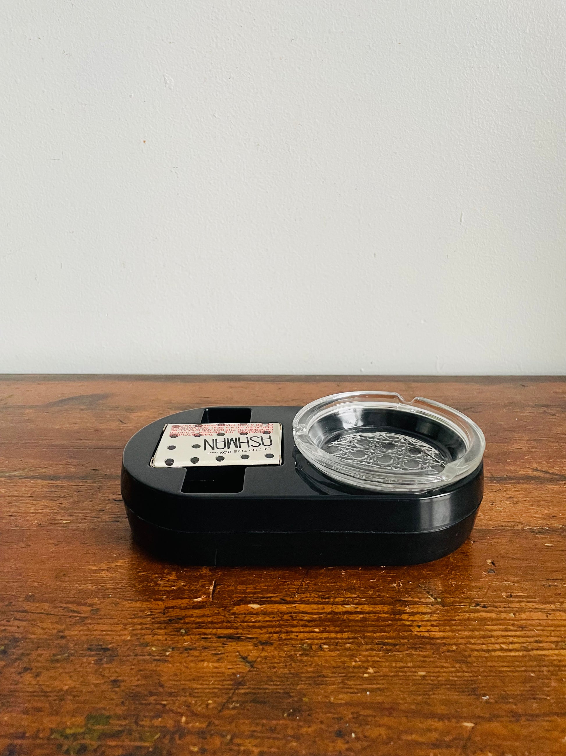 The matchbox covers a sensor and you can replace it with another matchbox or a non-transparent lighter. When someone goes to pick up the matches or lighter, the ashtray will start to cough and it yells; "No Smoking!". See video at the end of the photo gallery.