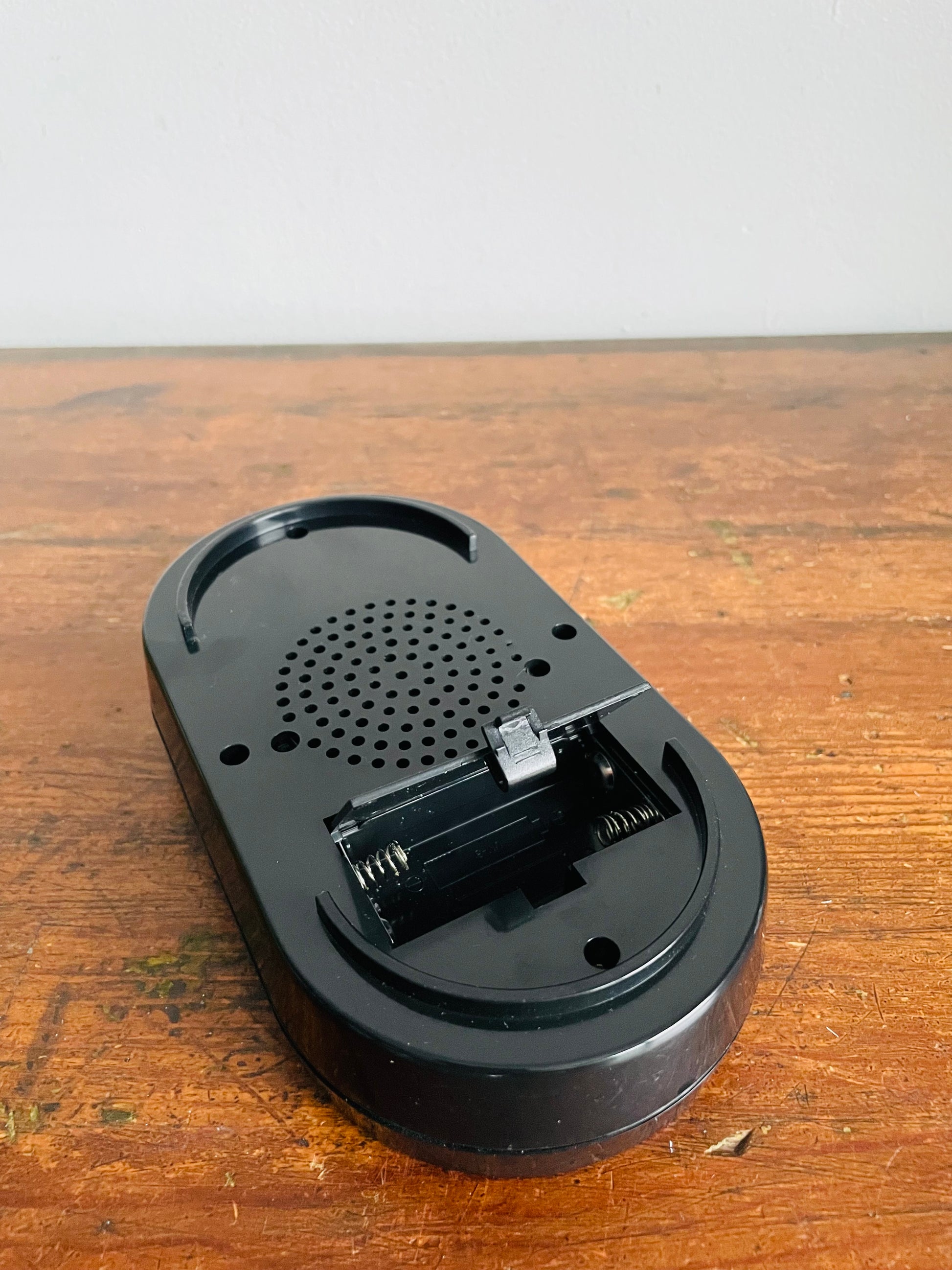 Tested and working! It takes two AA batteries (not included).