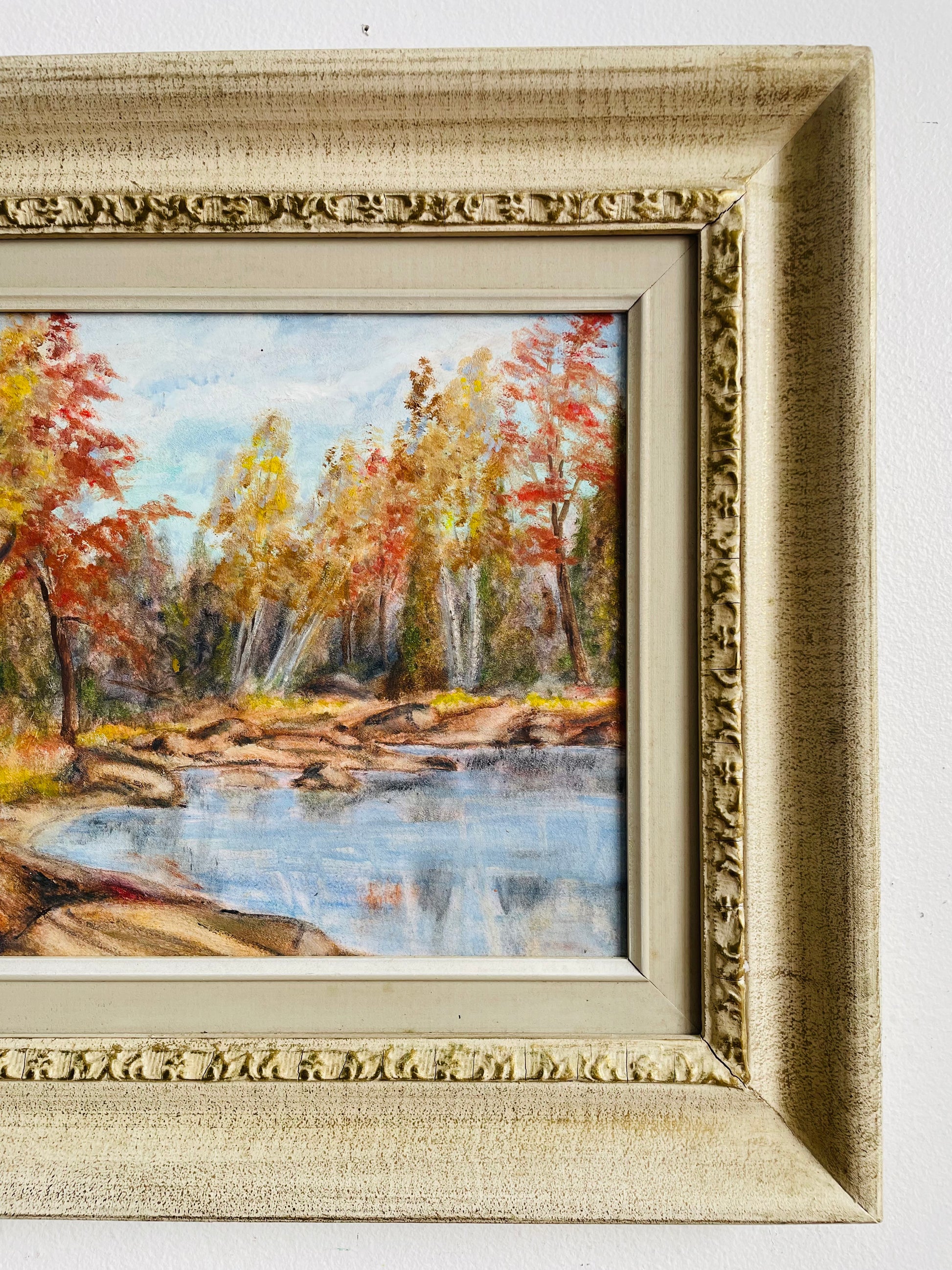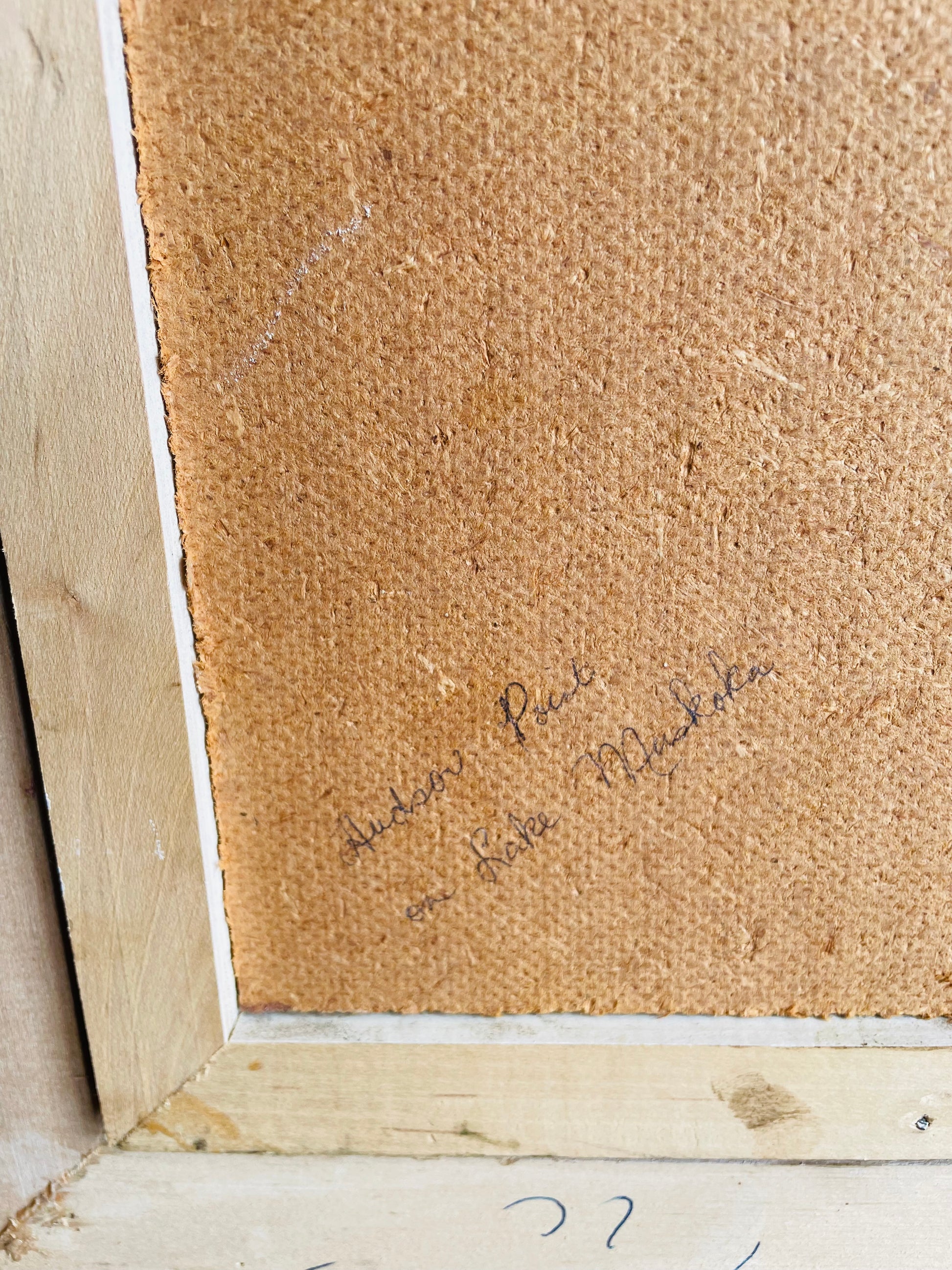 Vintage Original Art Painting Picture in Gold & White Wood Frame - Hudson Point on Lake Muskoka - Artist Signed