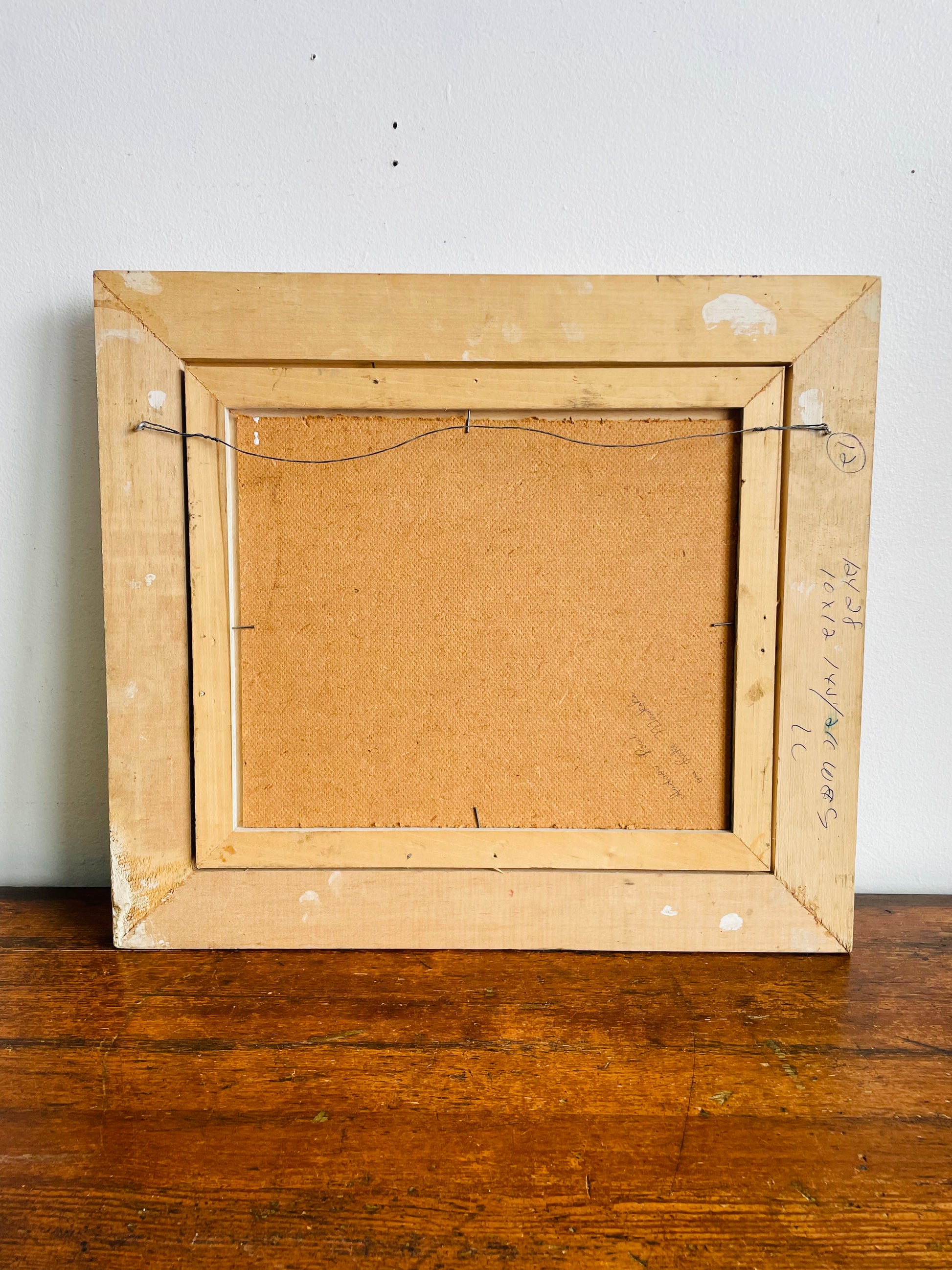 An original art painting which sits in a wood frame. There is a wire on the back for hanging.
