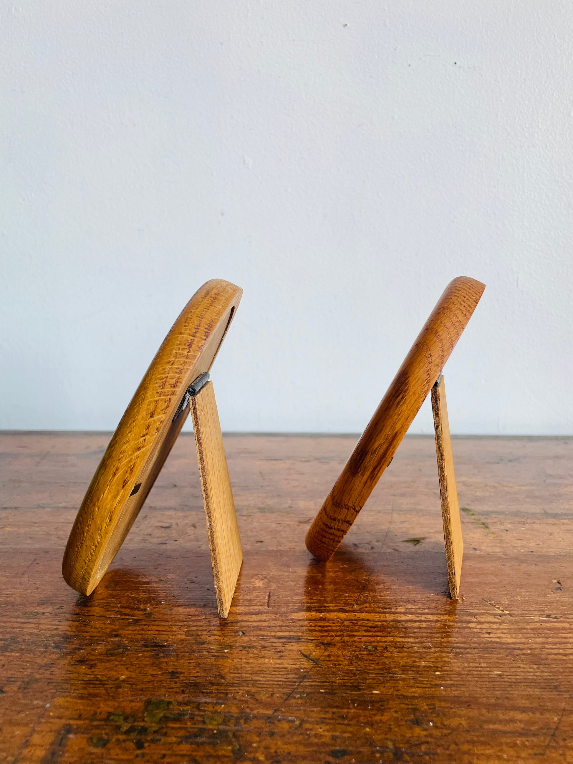 Vintage Pair of Oval Wood Picture Frames with Easel Backing - Set of 2 - 3" x 4.5" Photo Size
