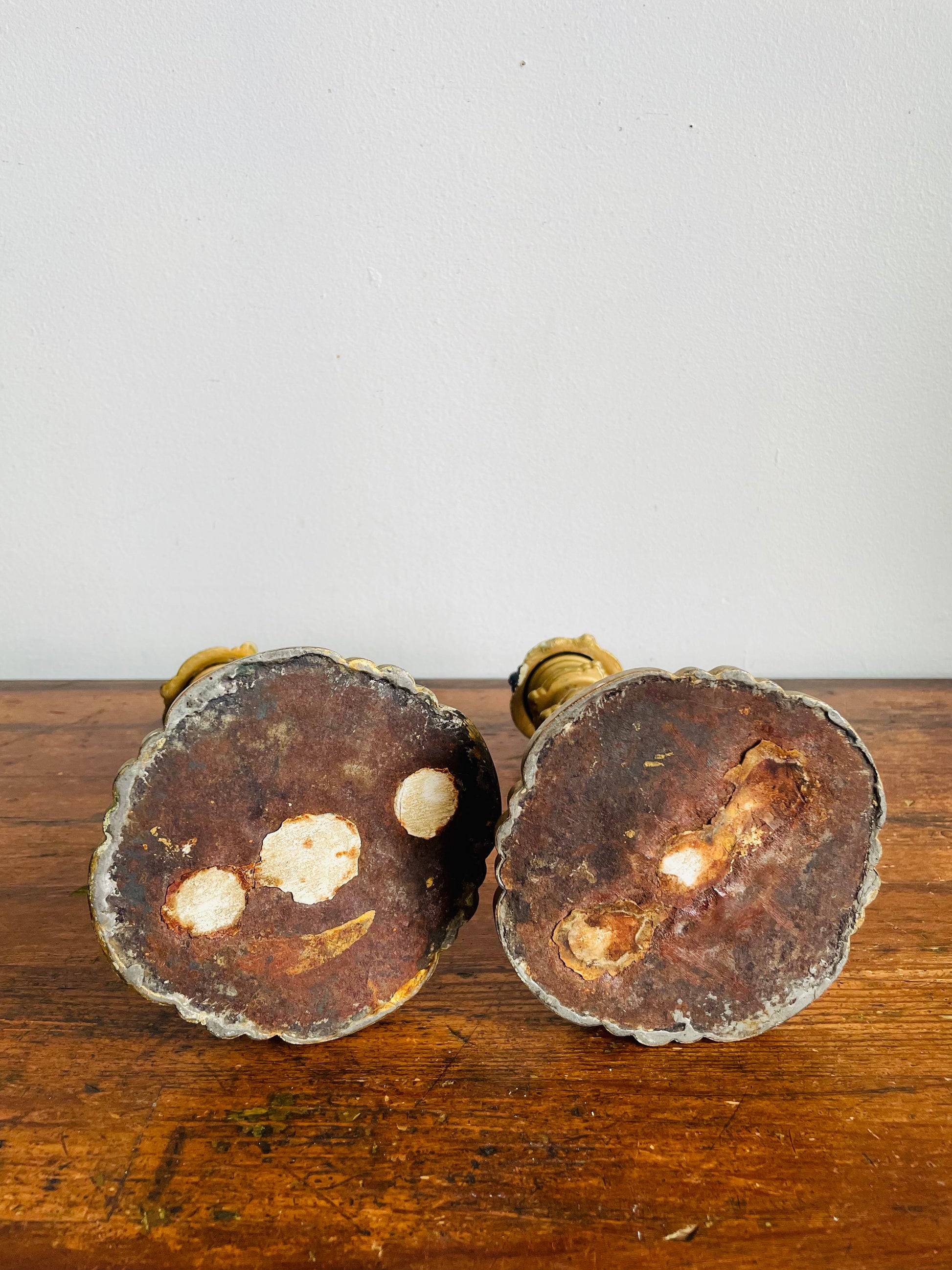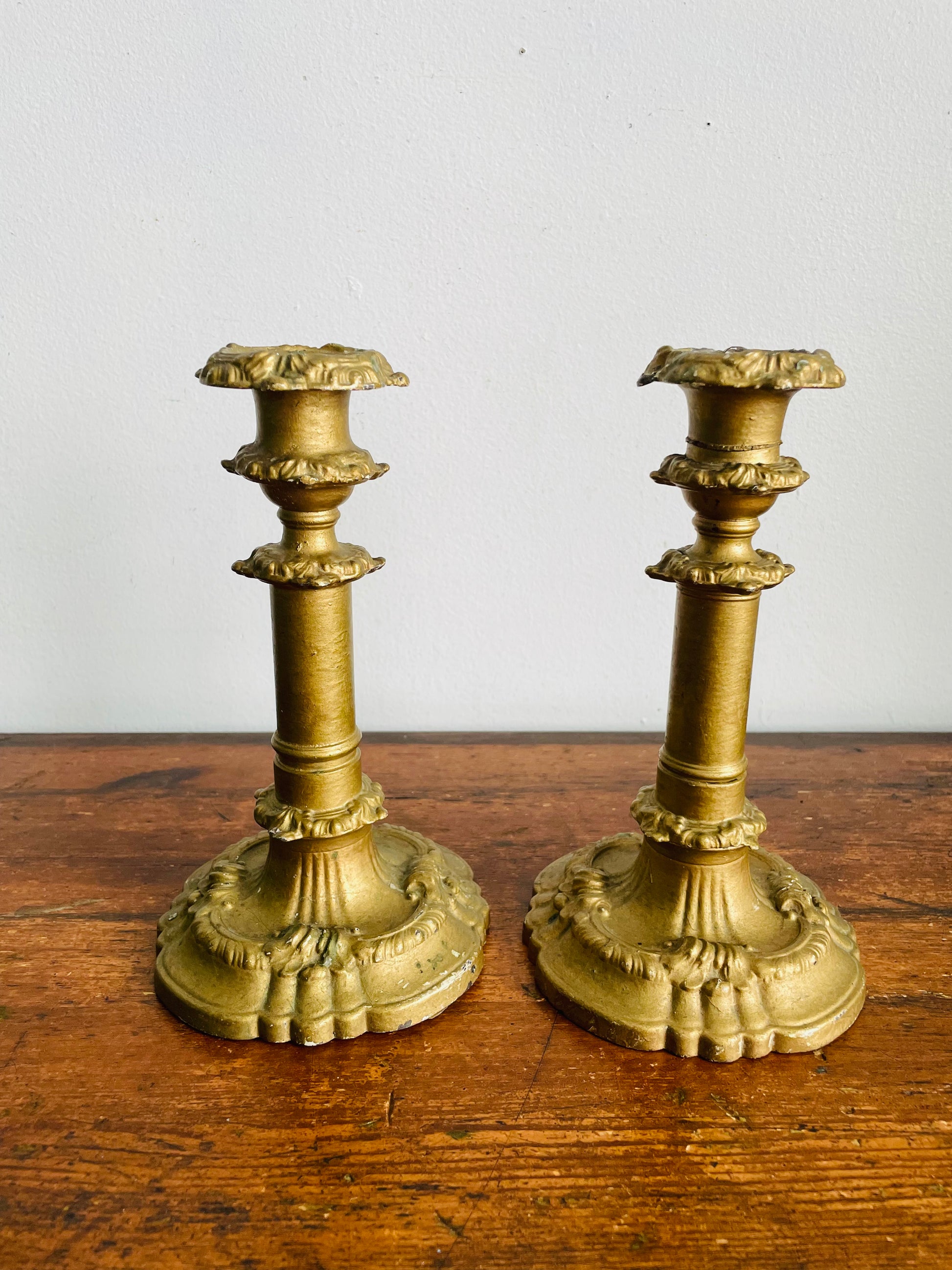 Vintage / Possibly Antique Iron Candle Holders with Plaster & Gold Finish - Very Sturdy & Solid - Set of 2