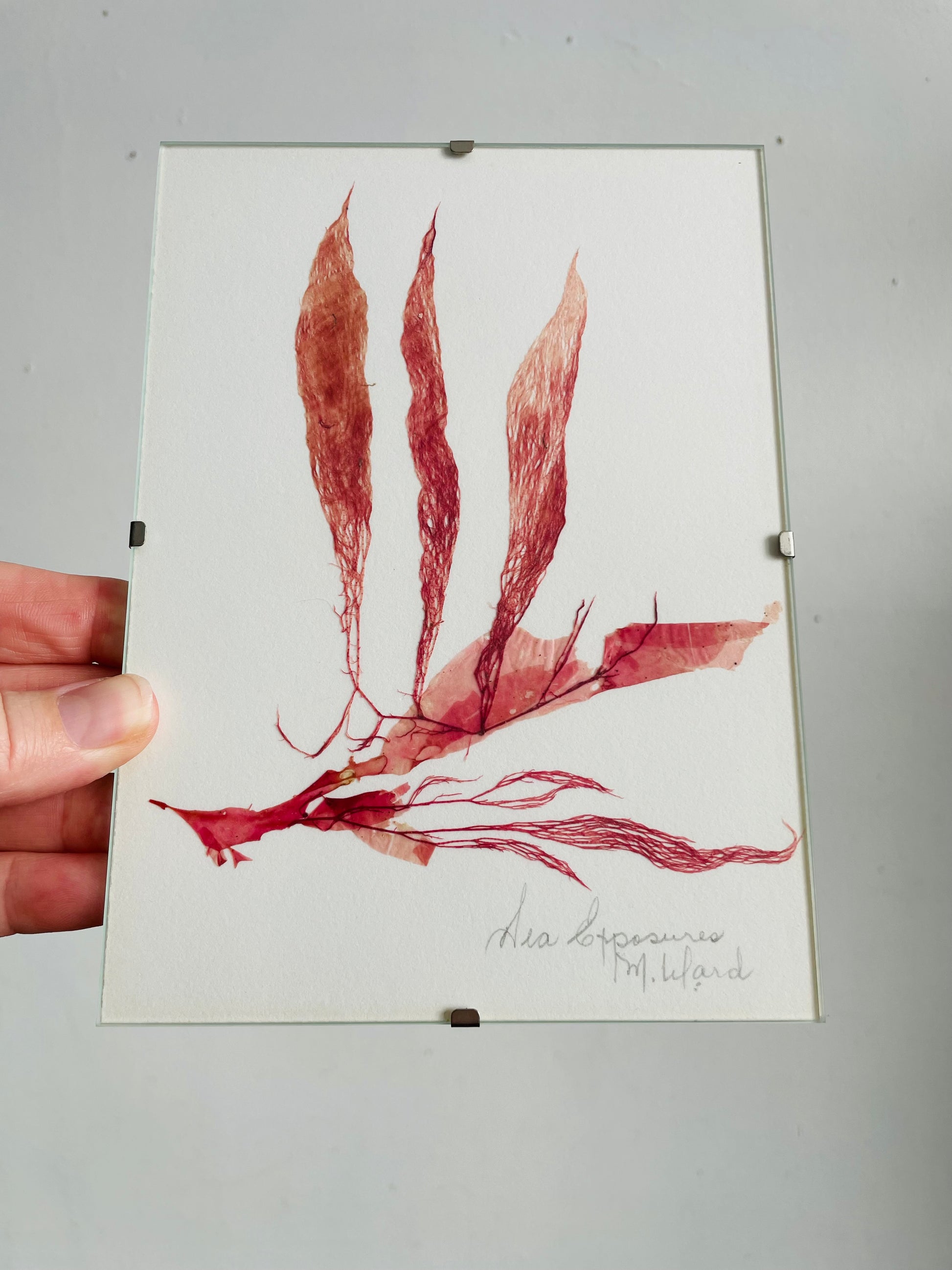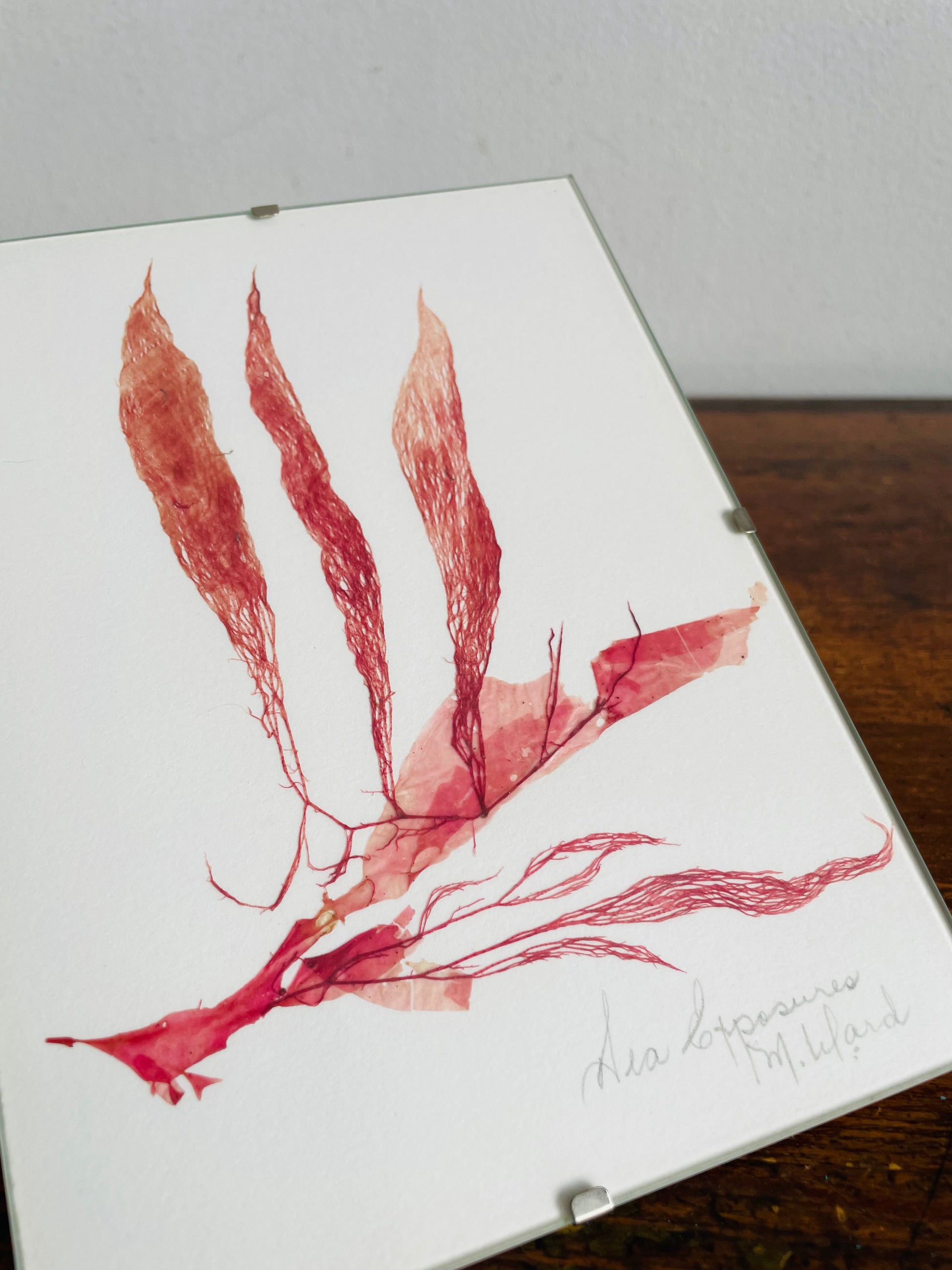 Vintage Pressed Seaweed Original Art - Artist Signed - Marie Ward - North Vancouver BC - Pink 5" x 7"