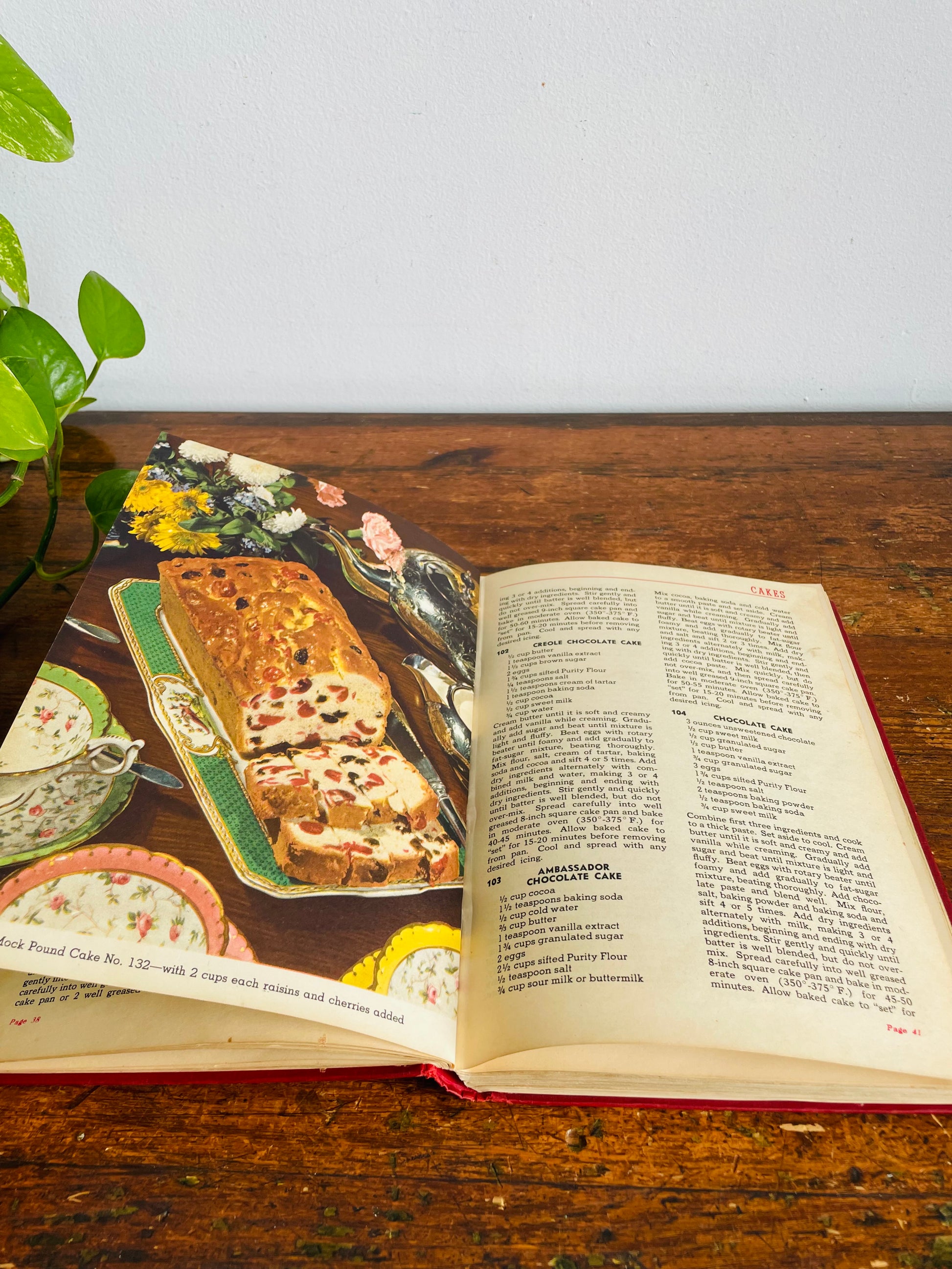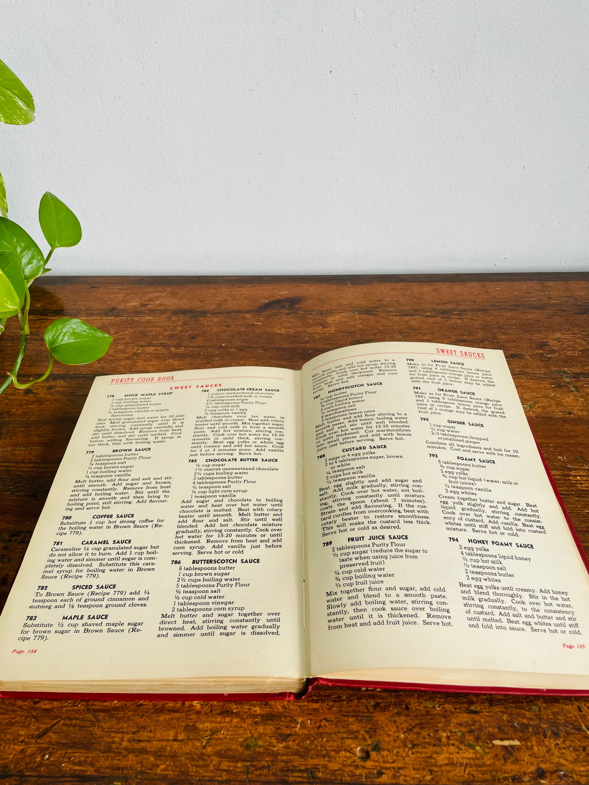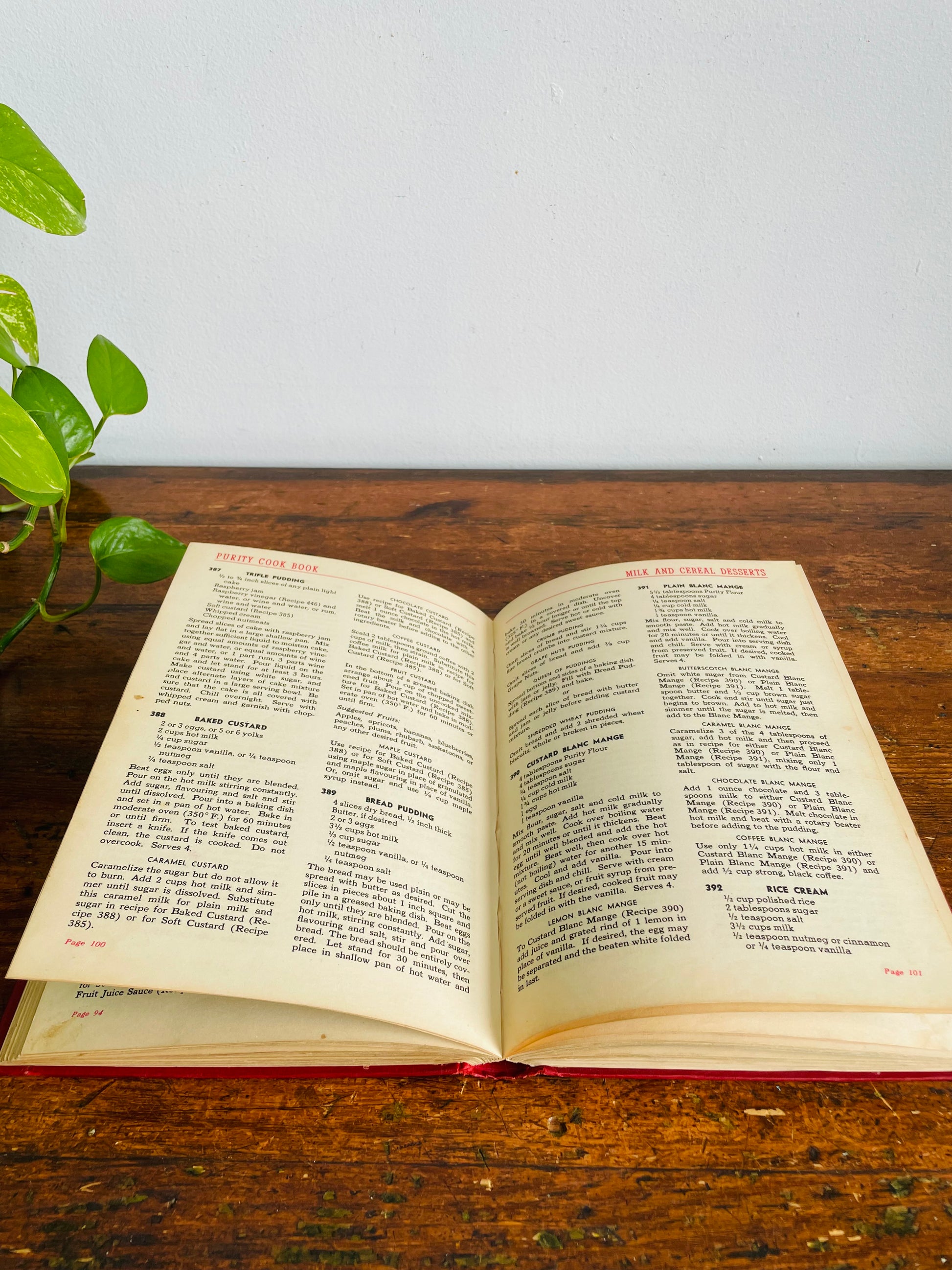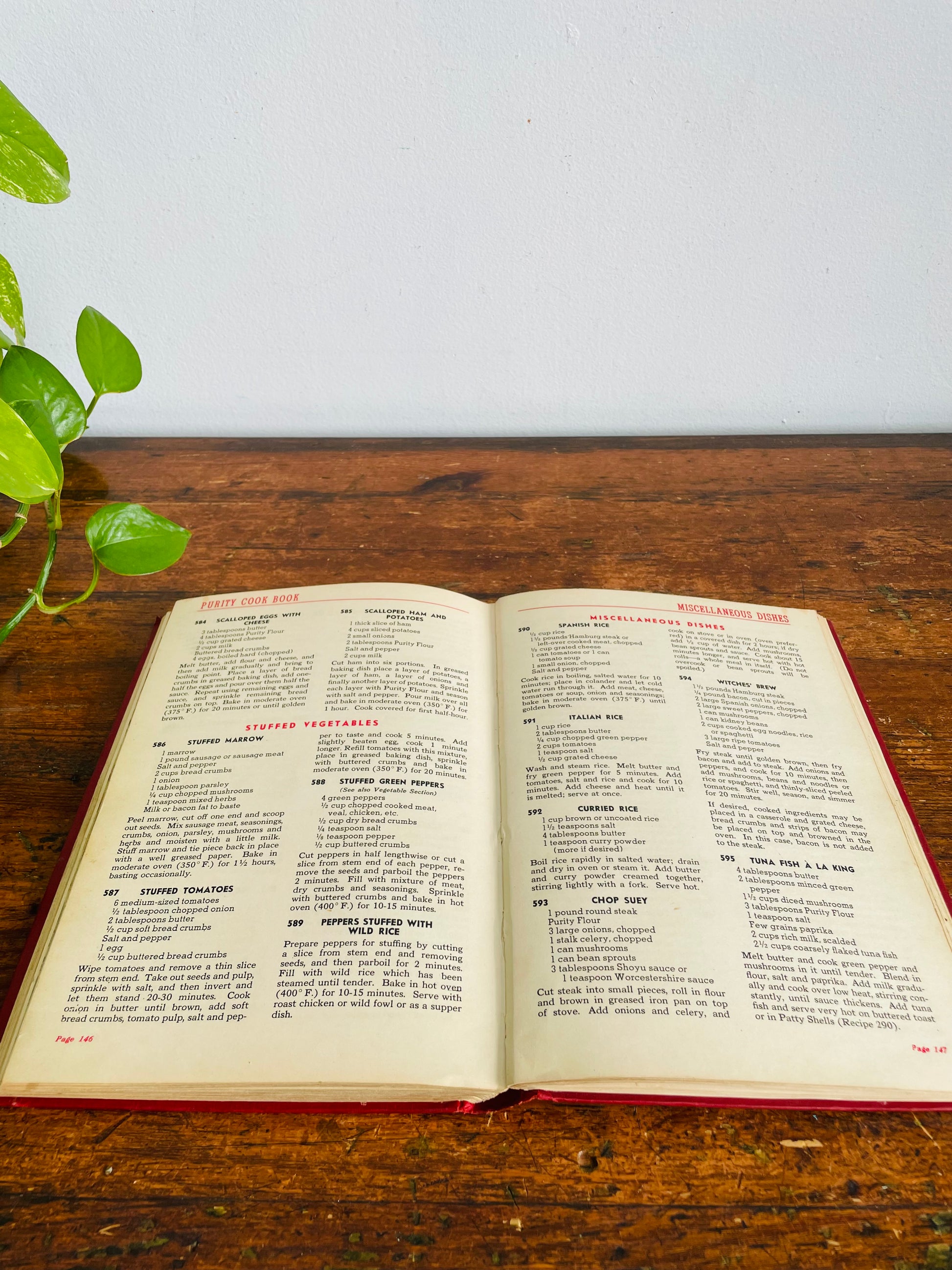 Vintage Purity Cookbook by Purity Flour Mills - Red Hardcover Book - 875 Tested Recipes (1945) Revised Wartime Ration Edition for WW2