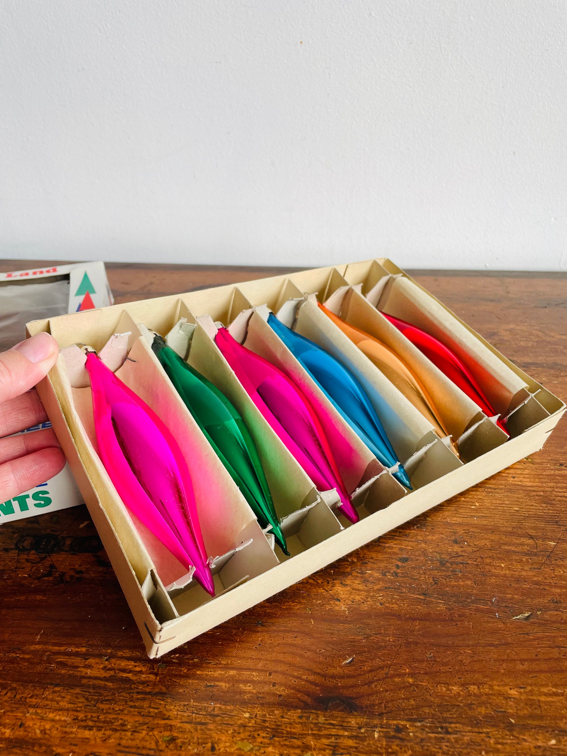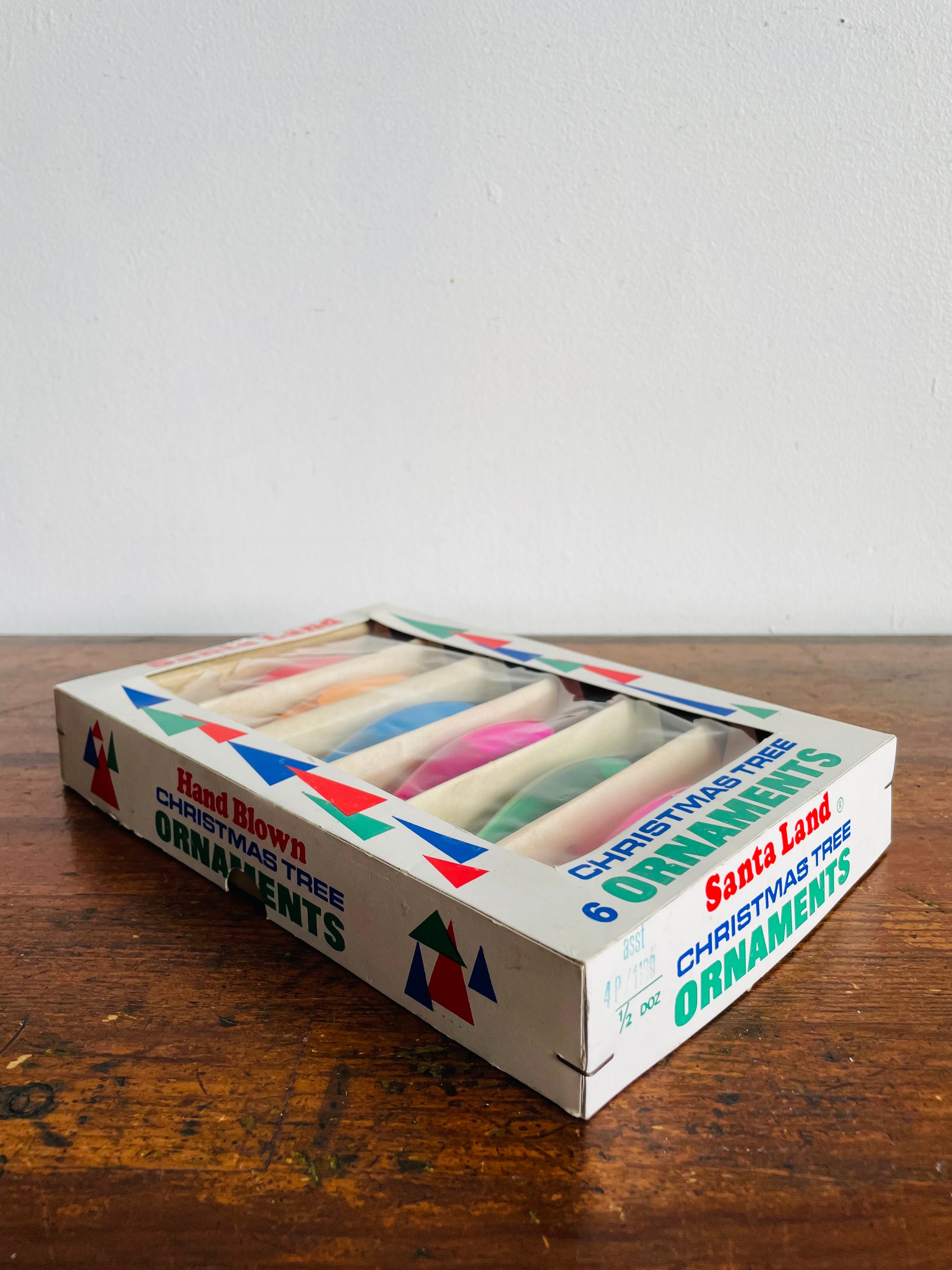 Brand New Vintage Santa Land Hand Blown Glass Christmas Tree Ornaments in Original Box - Set of 6 - Teardrop Shaped - Multi-Colour - Made in Poland