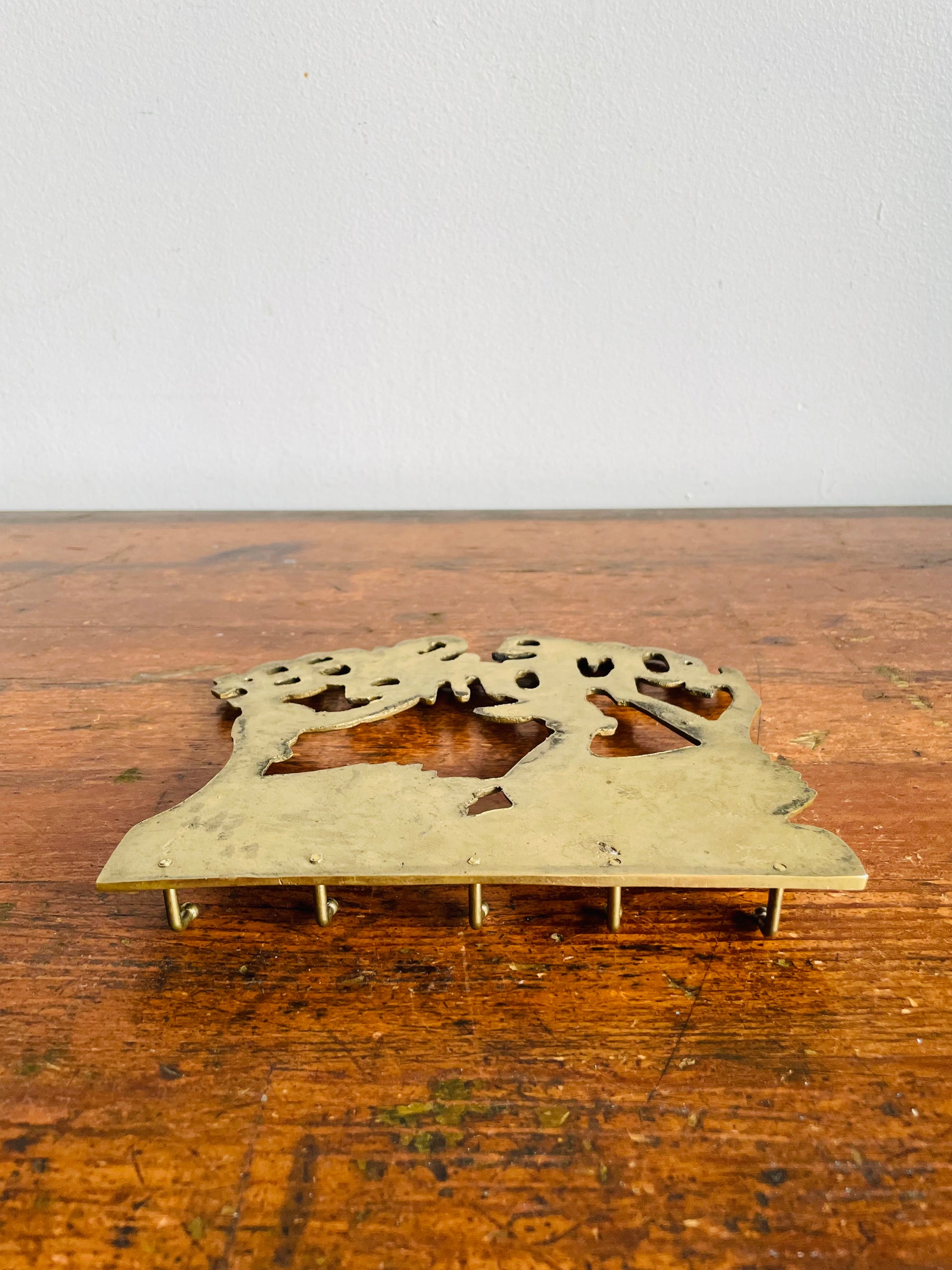 Vintage Solid Brass Home Sweet Home Key Holder Hanger Rack with Duck Family & 5 Hooks